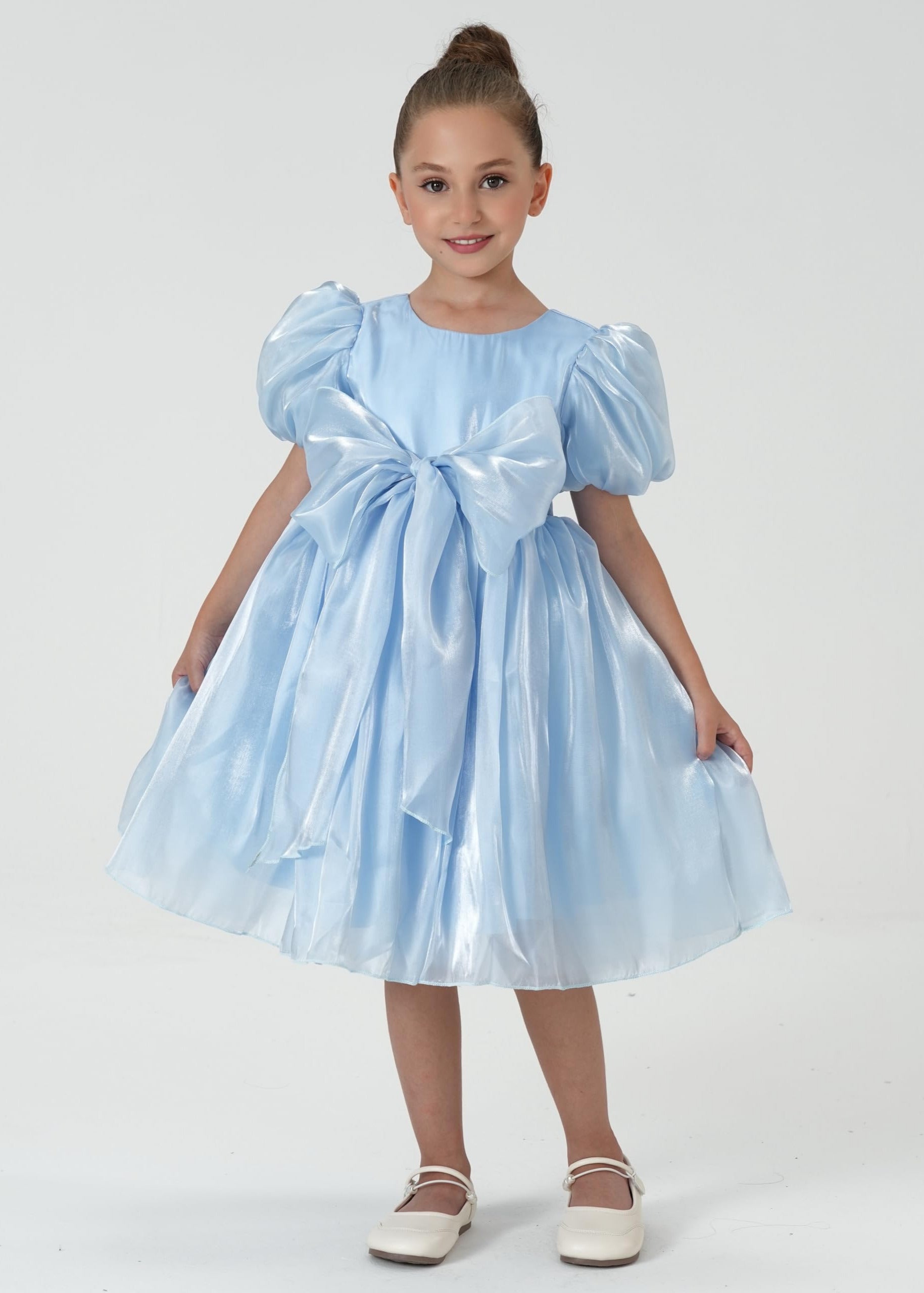 2Bunnies Girls' 2T-8yr Glossy Organza Babydoll Bow Dress