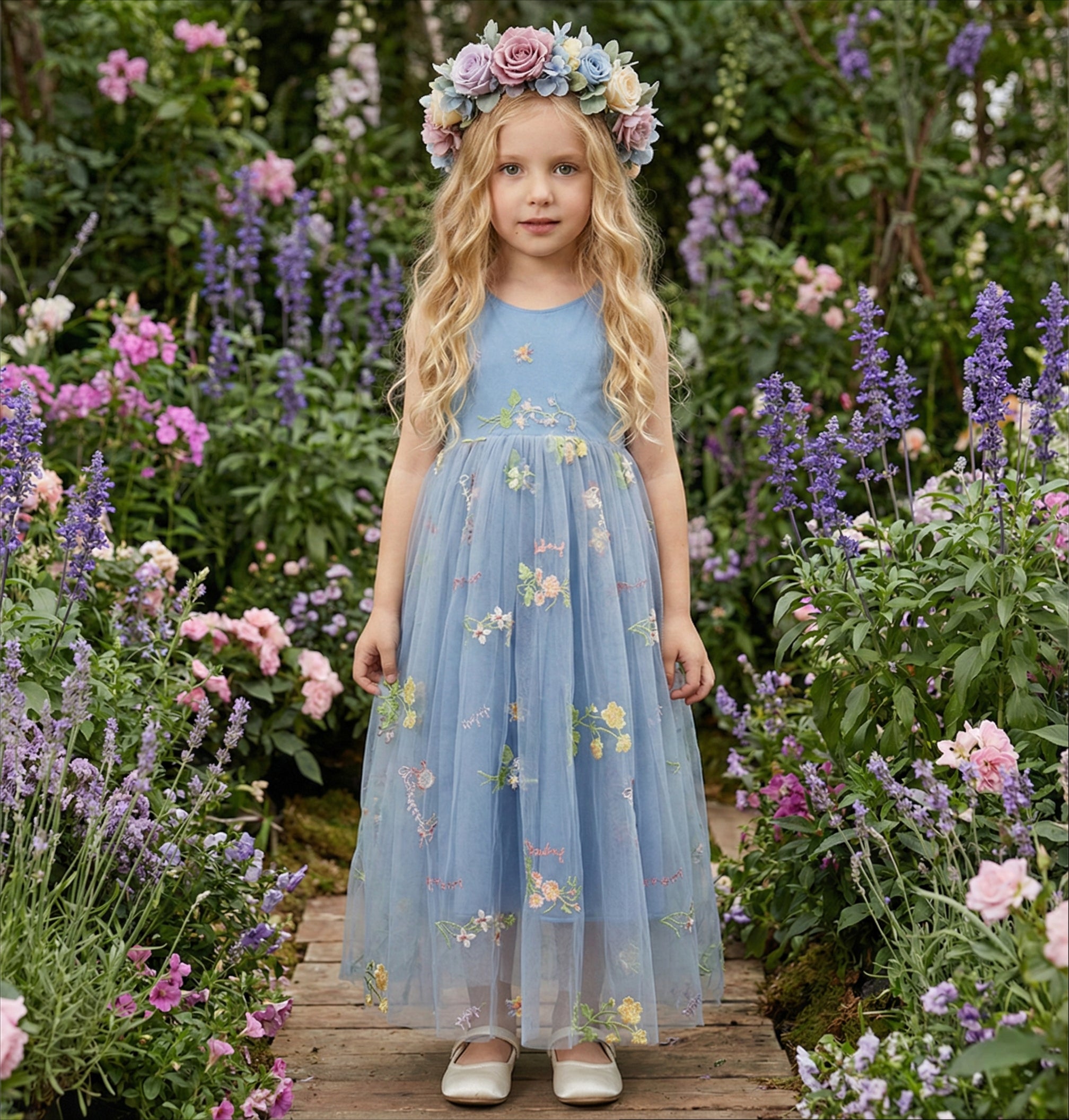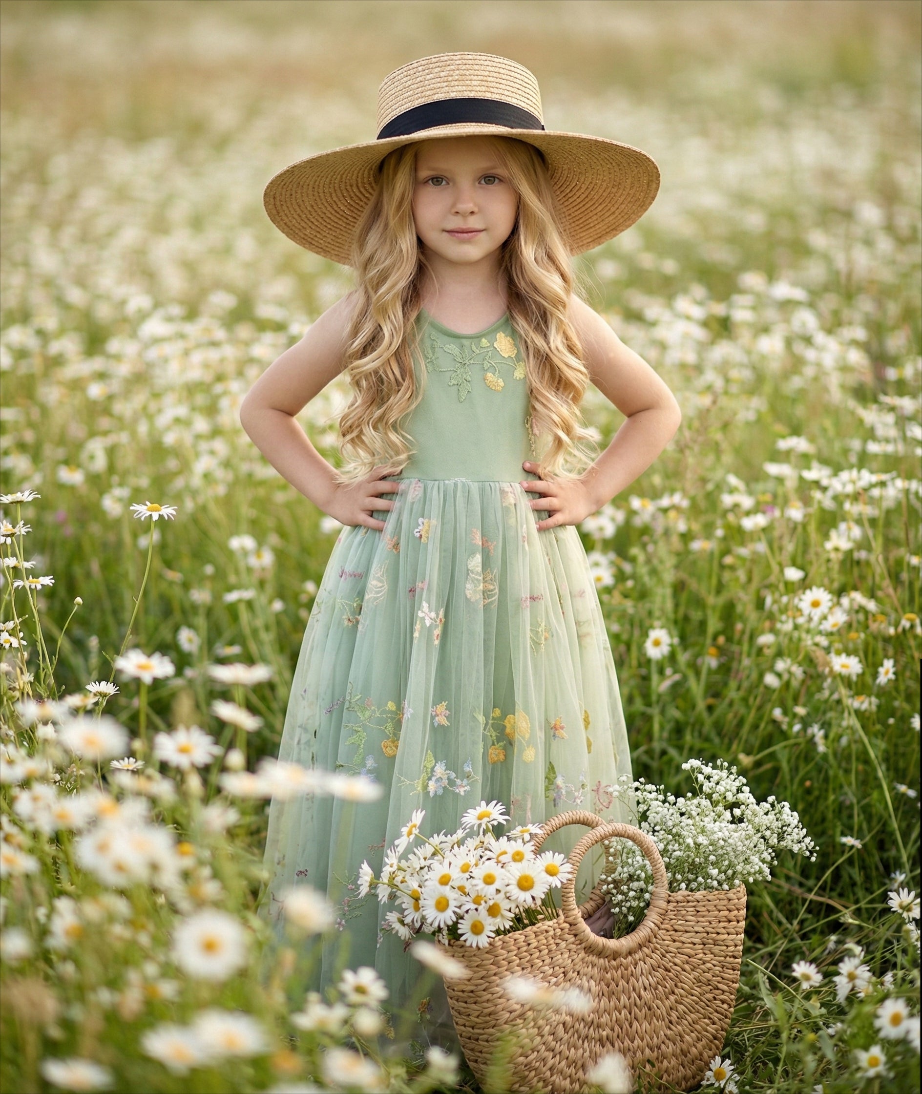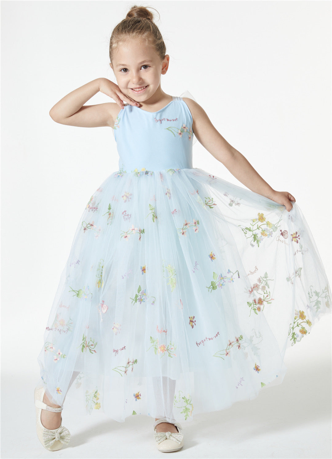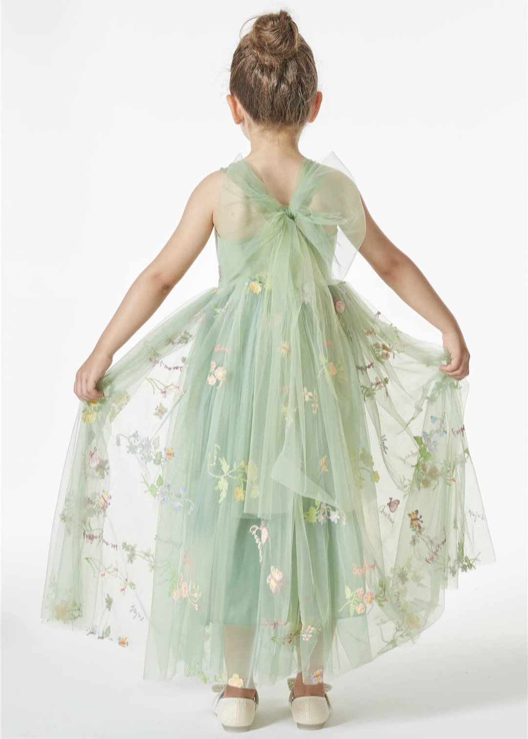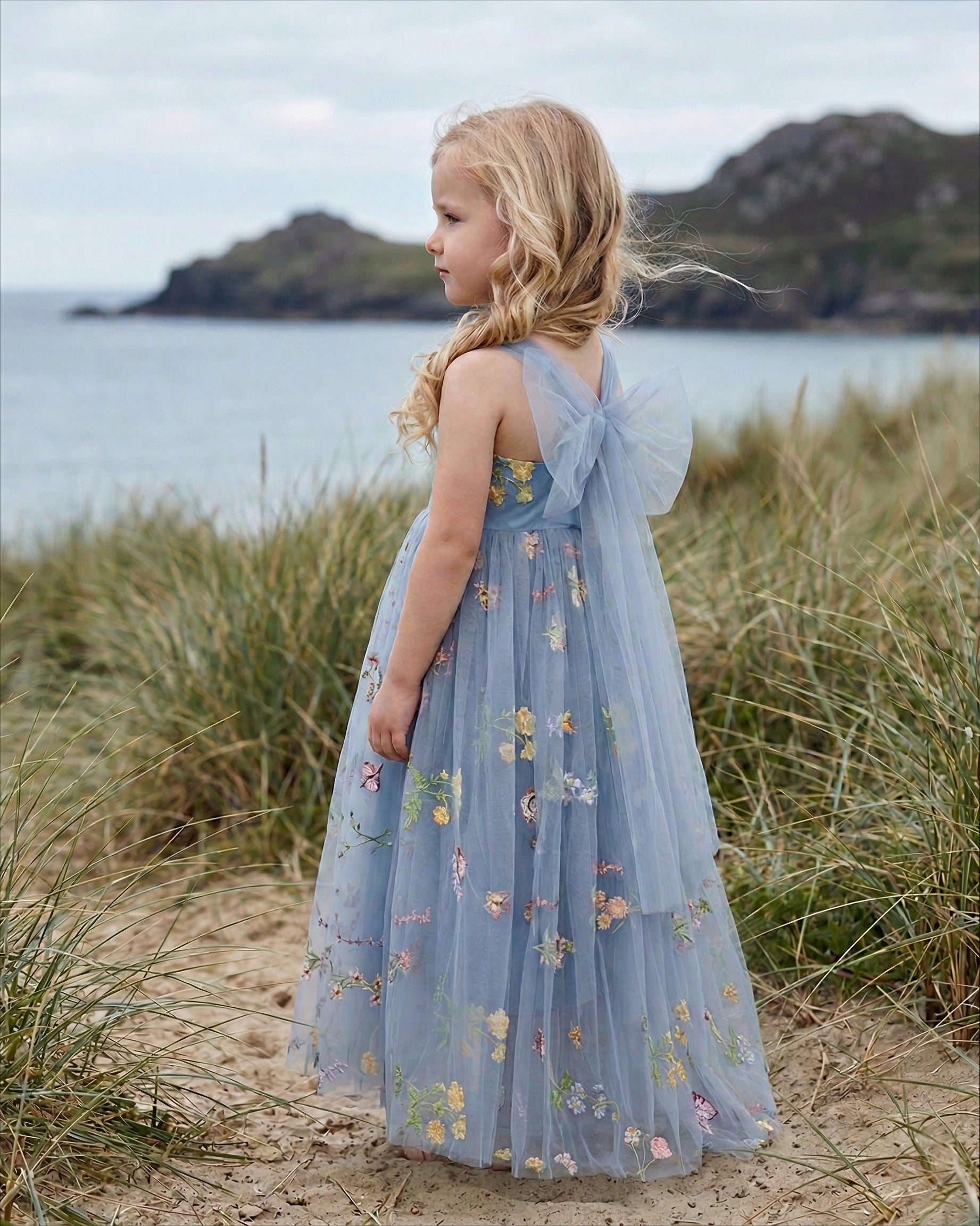 2Bunnies Girls' 12M-14yr Floral Garden Embroidered Tulle Strap Flower Girl Dress Maxi