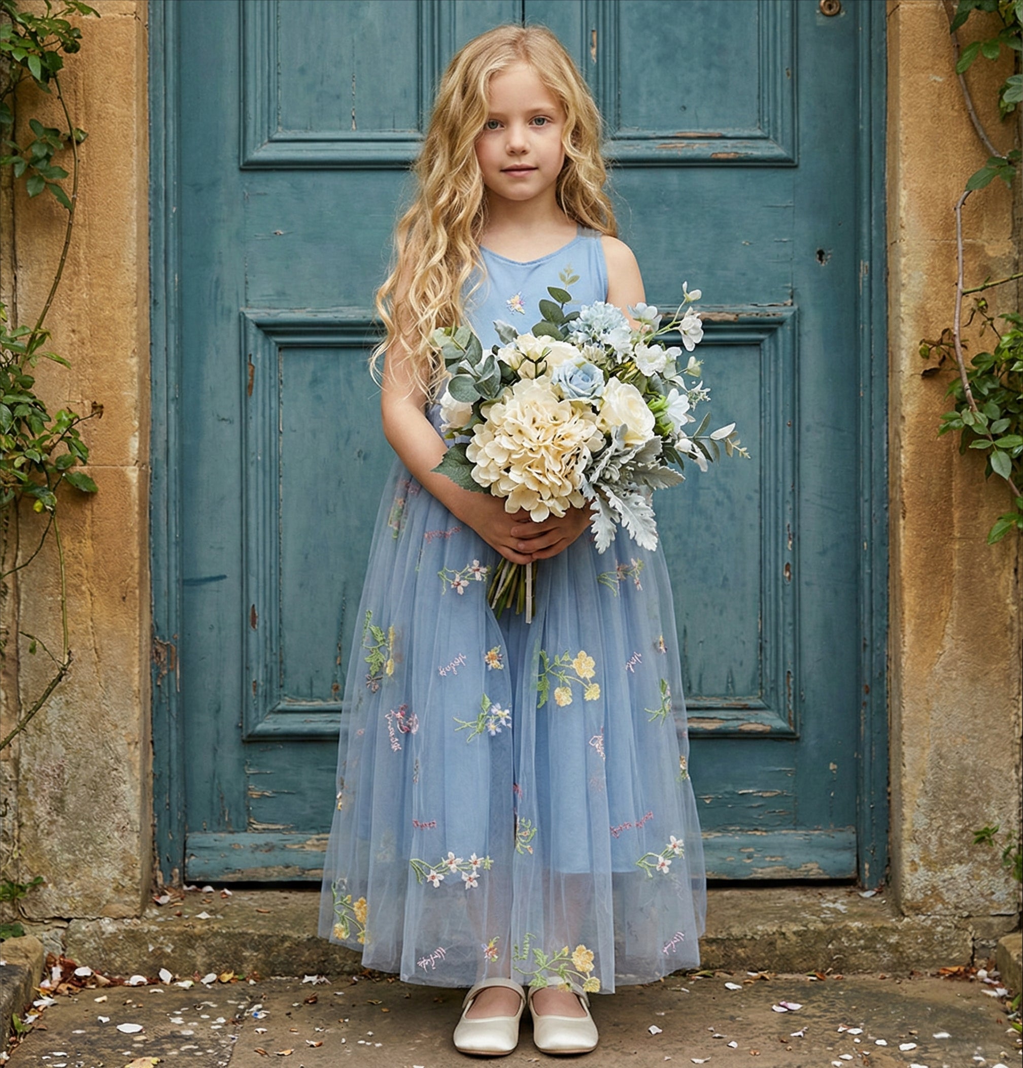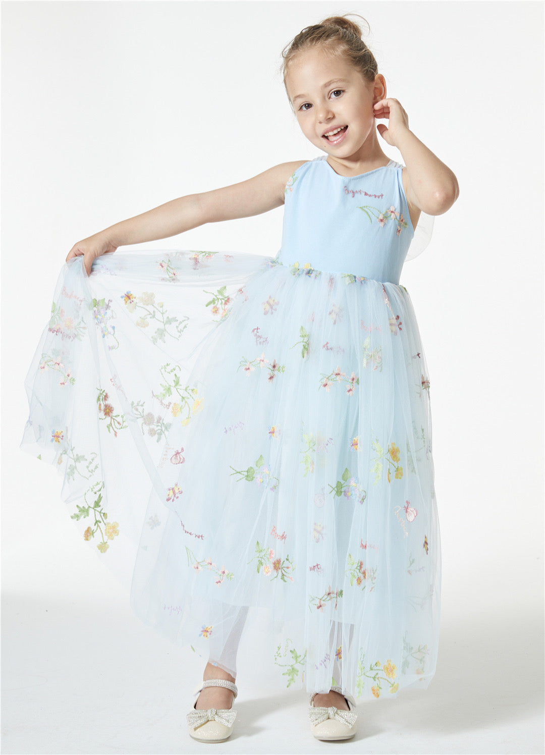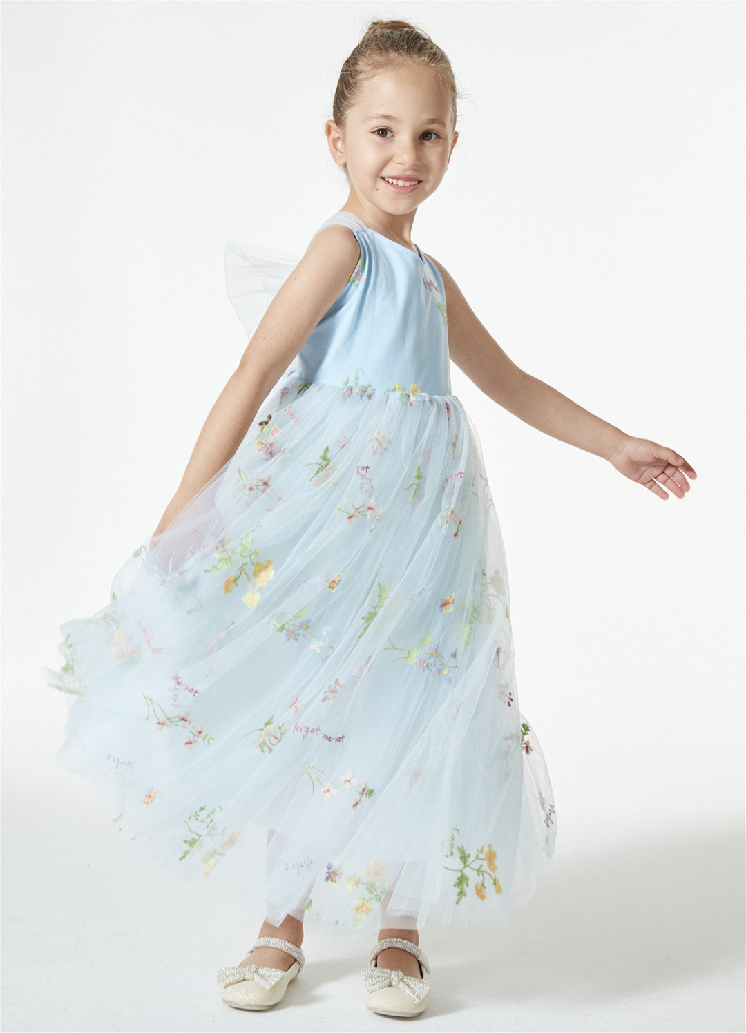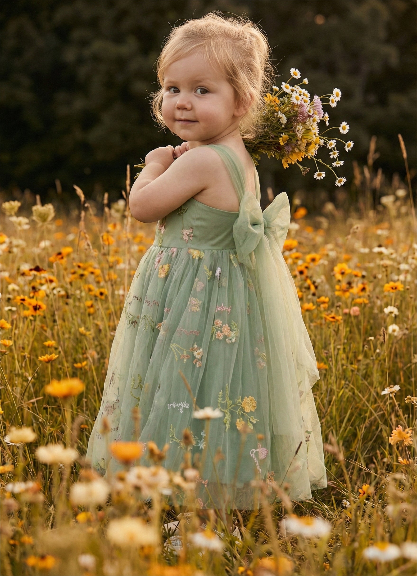 2Bunnies Girls' 12M-14yr Floral Garden Embroidered Tulle Strap Flower Girl Dress Maxi