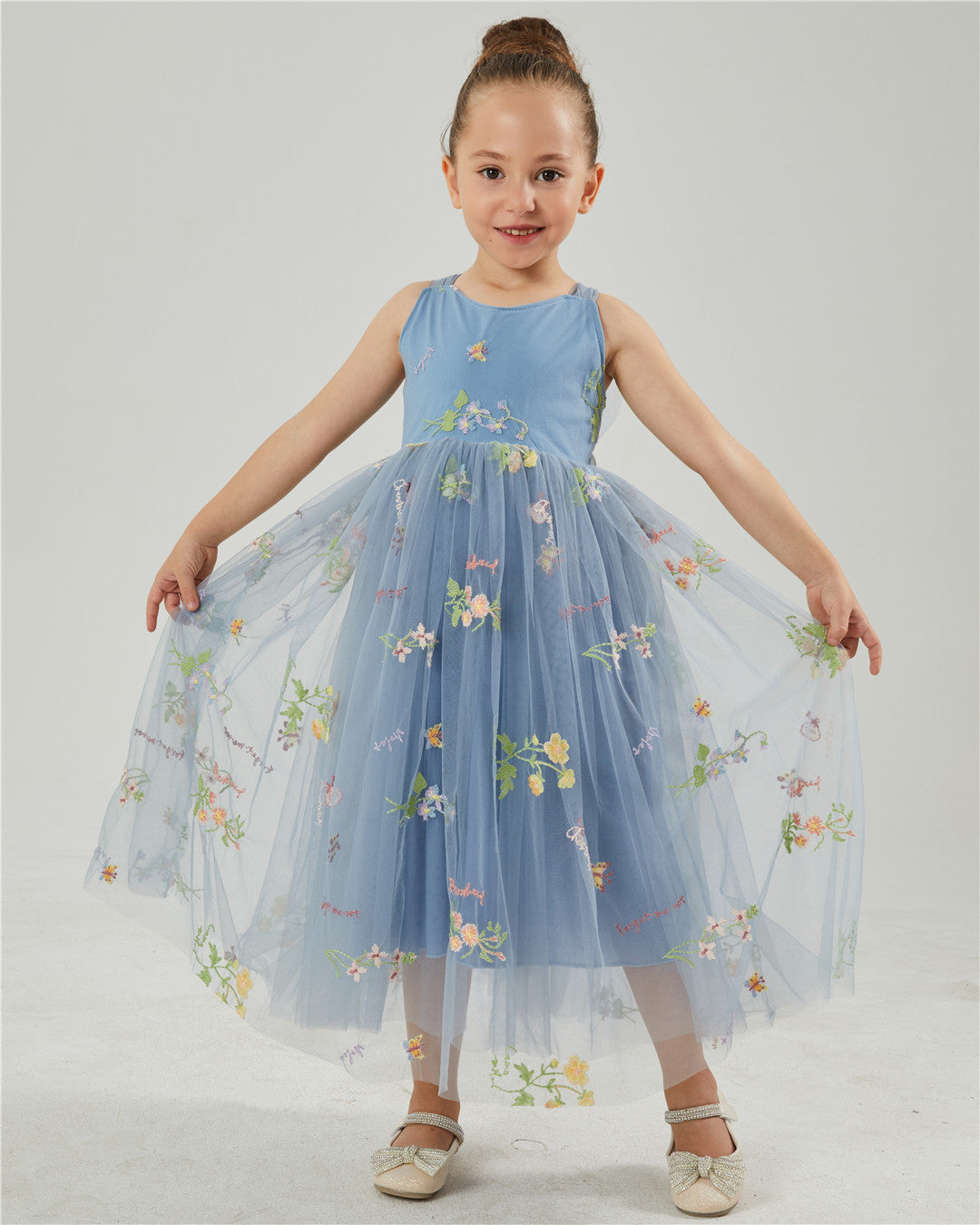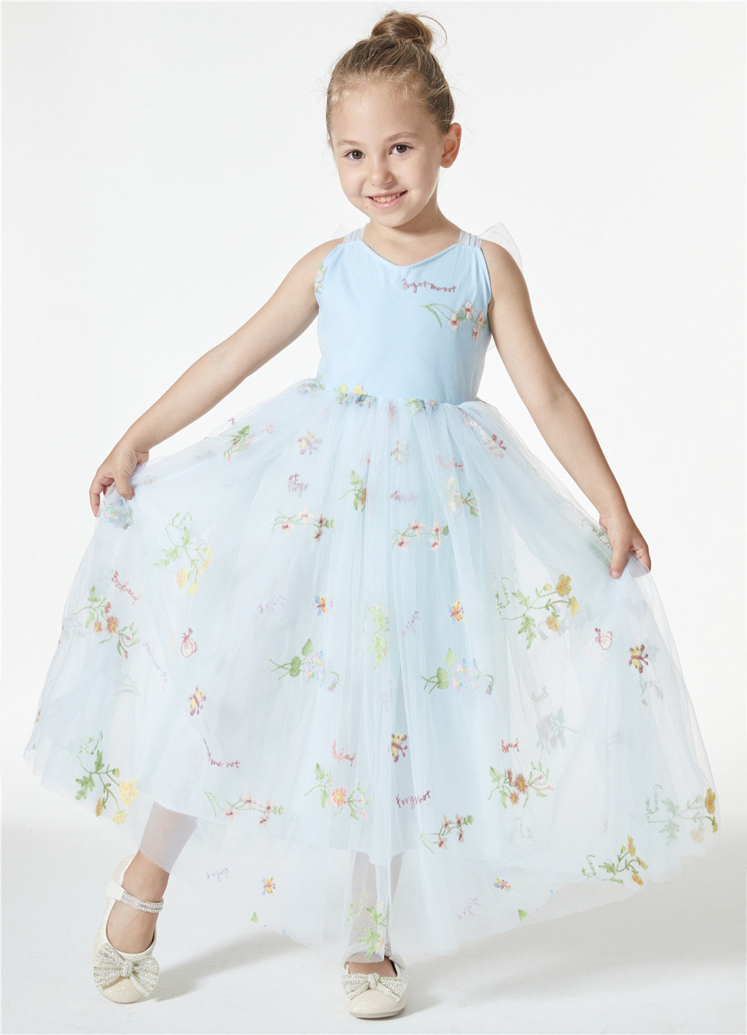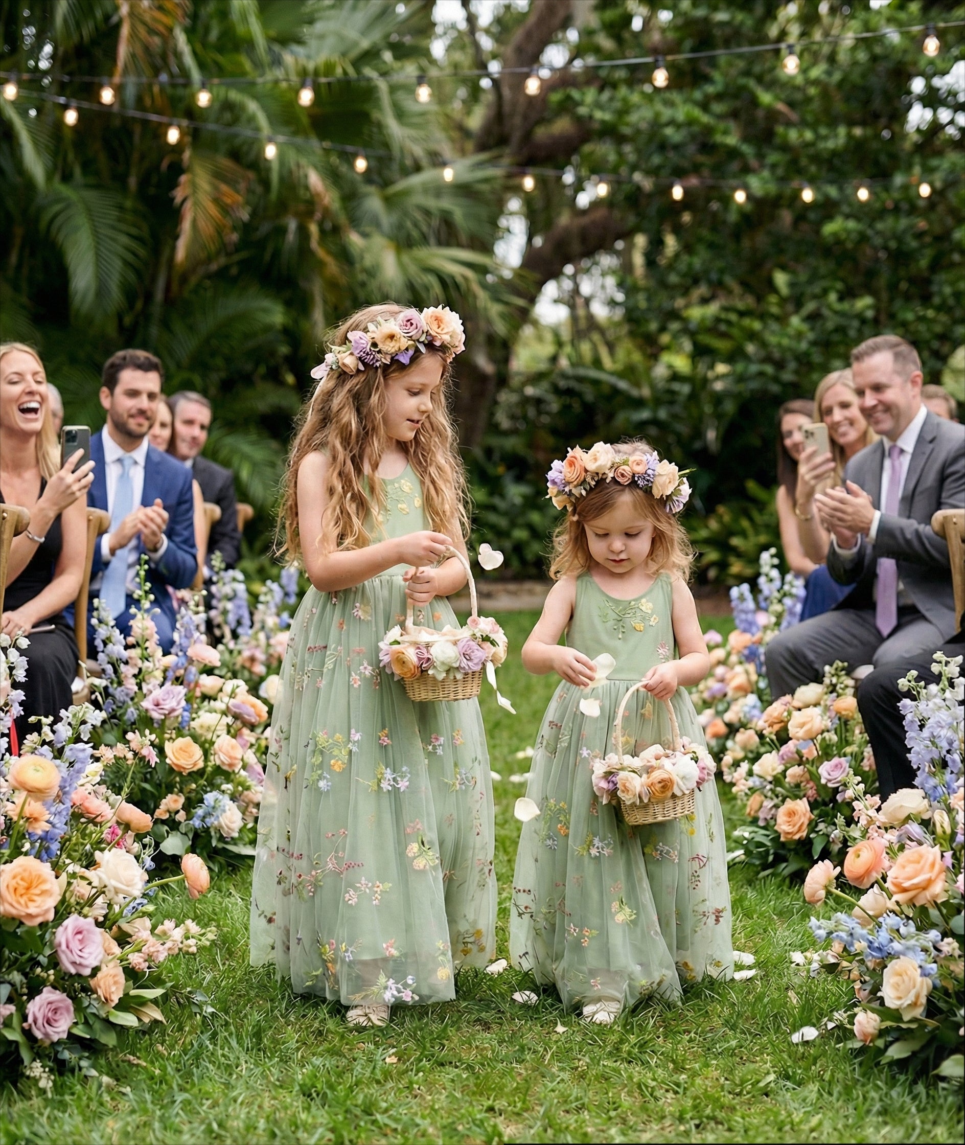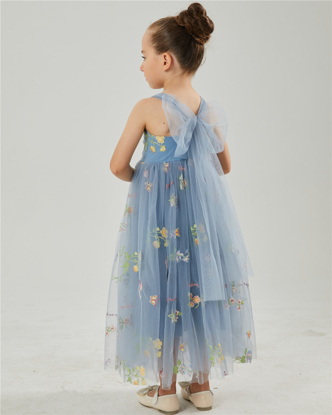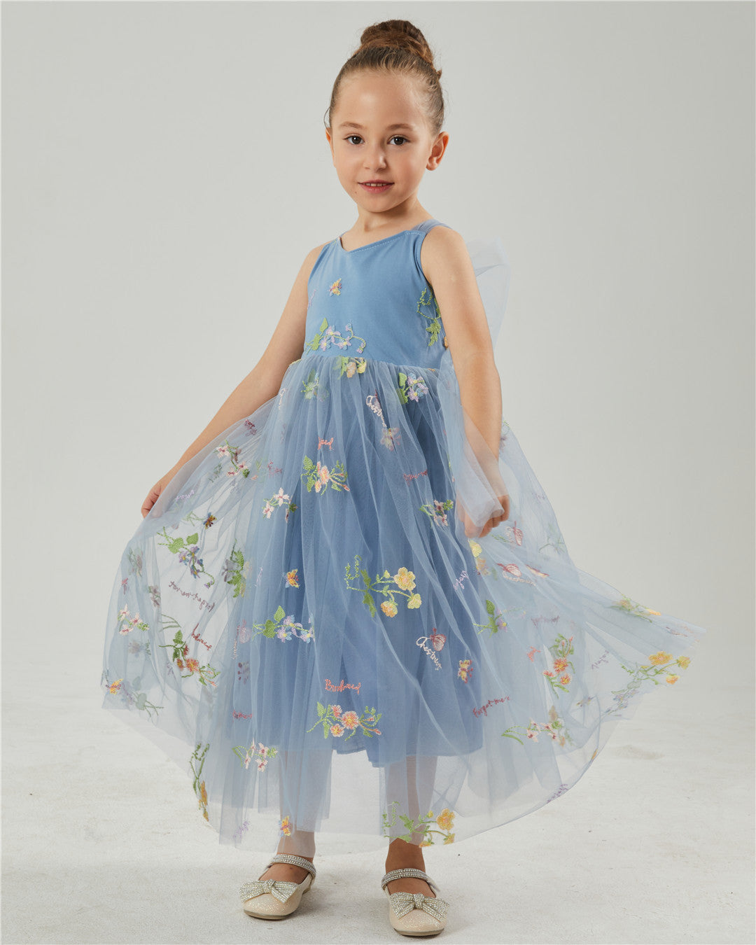 2Bunnies Girls' 12M-14yr Floral Garden Embroidered Tulle Strap Flower Girl Dress Maxi
