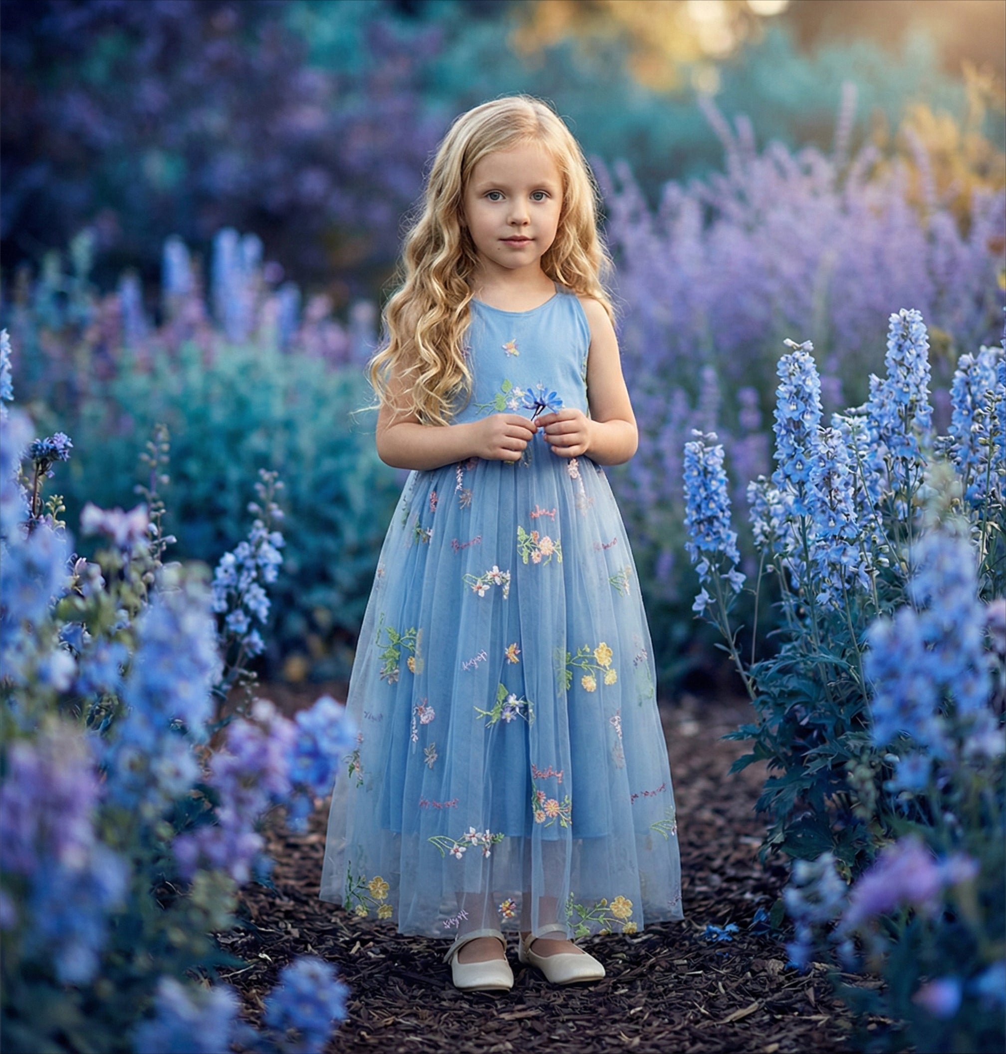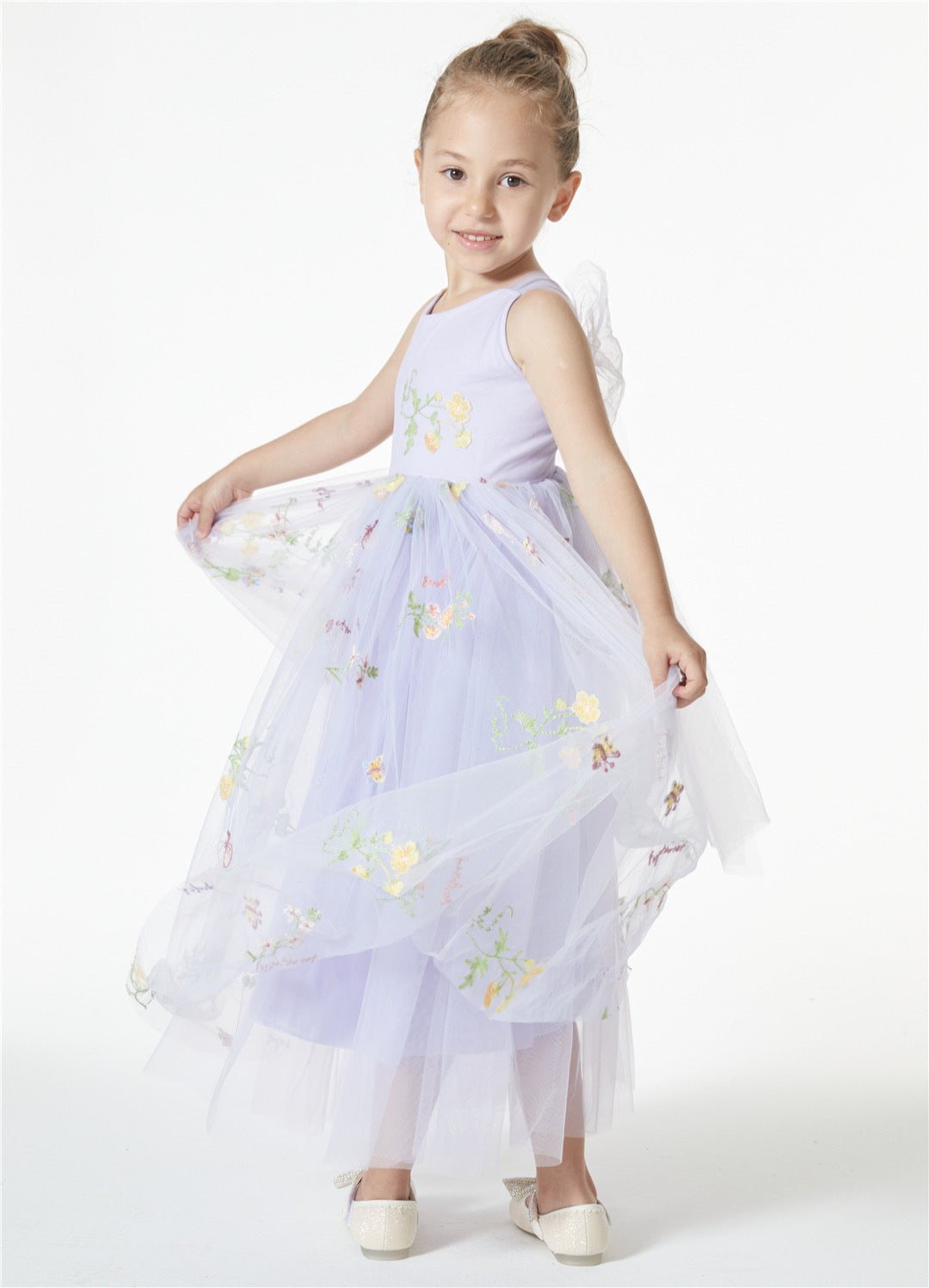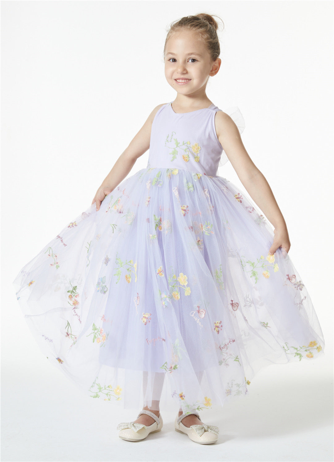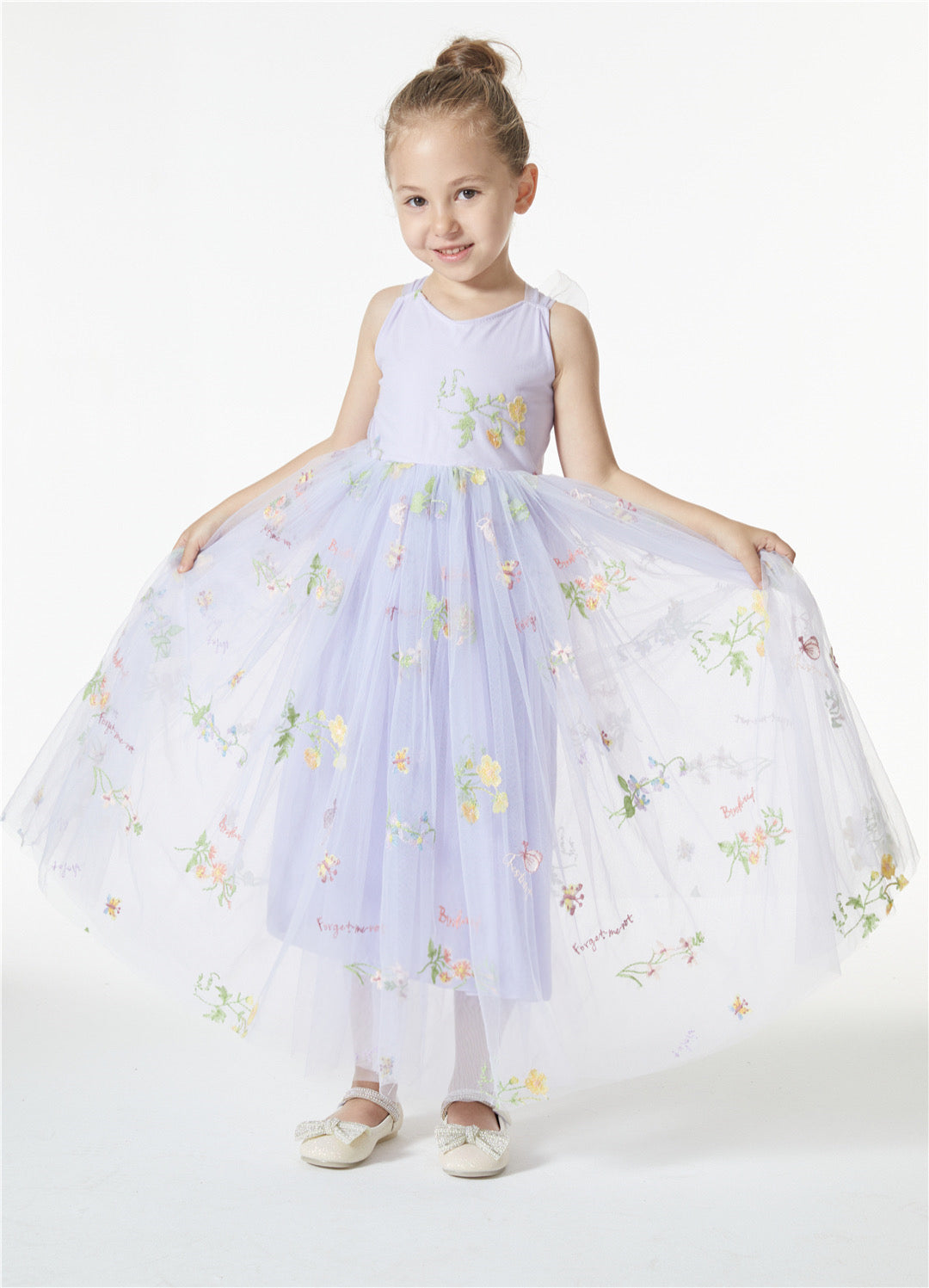 2Bunnies Girls' 12M-14yr Floral Garden Embroidered Tulle Strap Flower Girl Dress Maxi