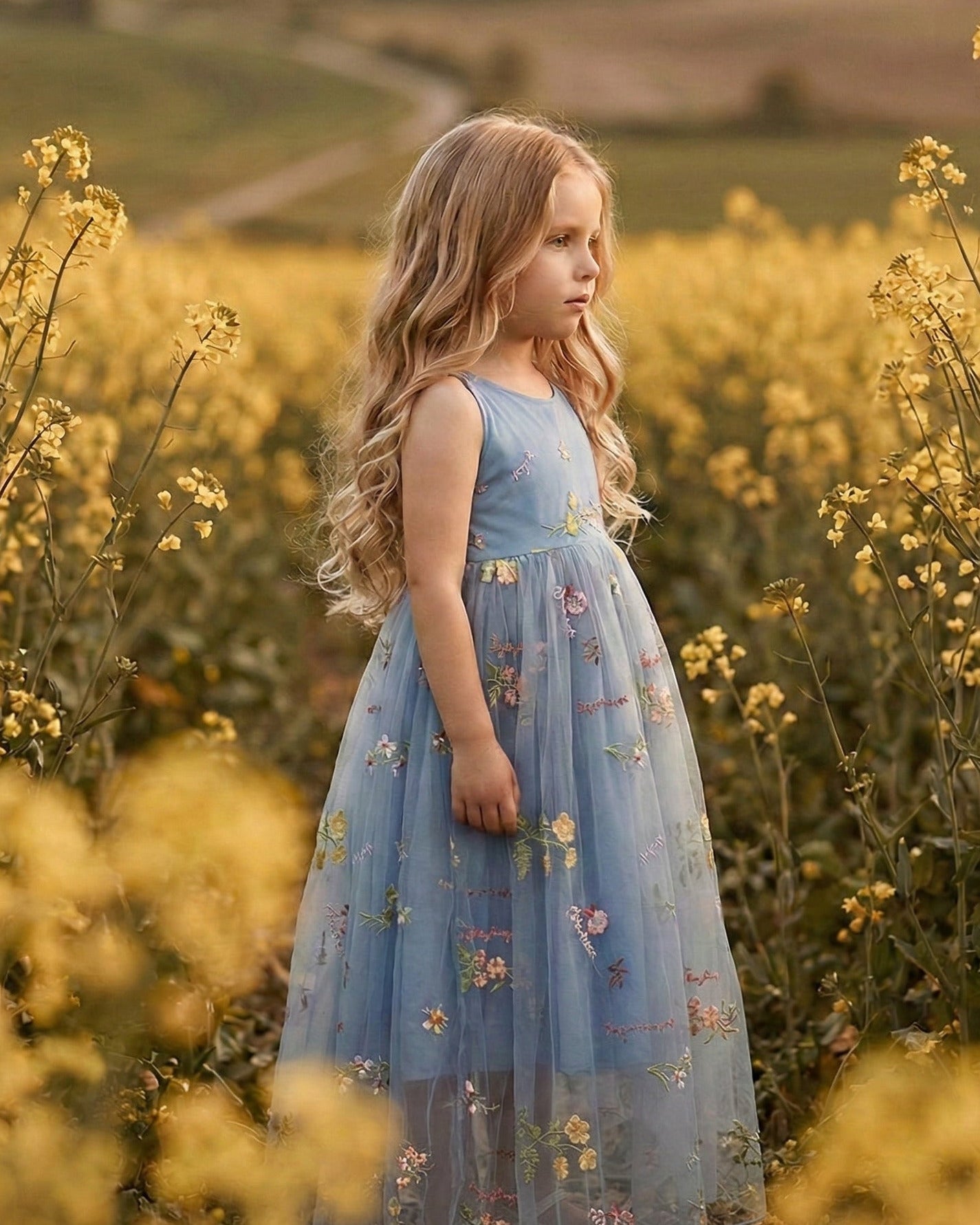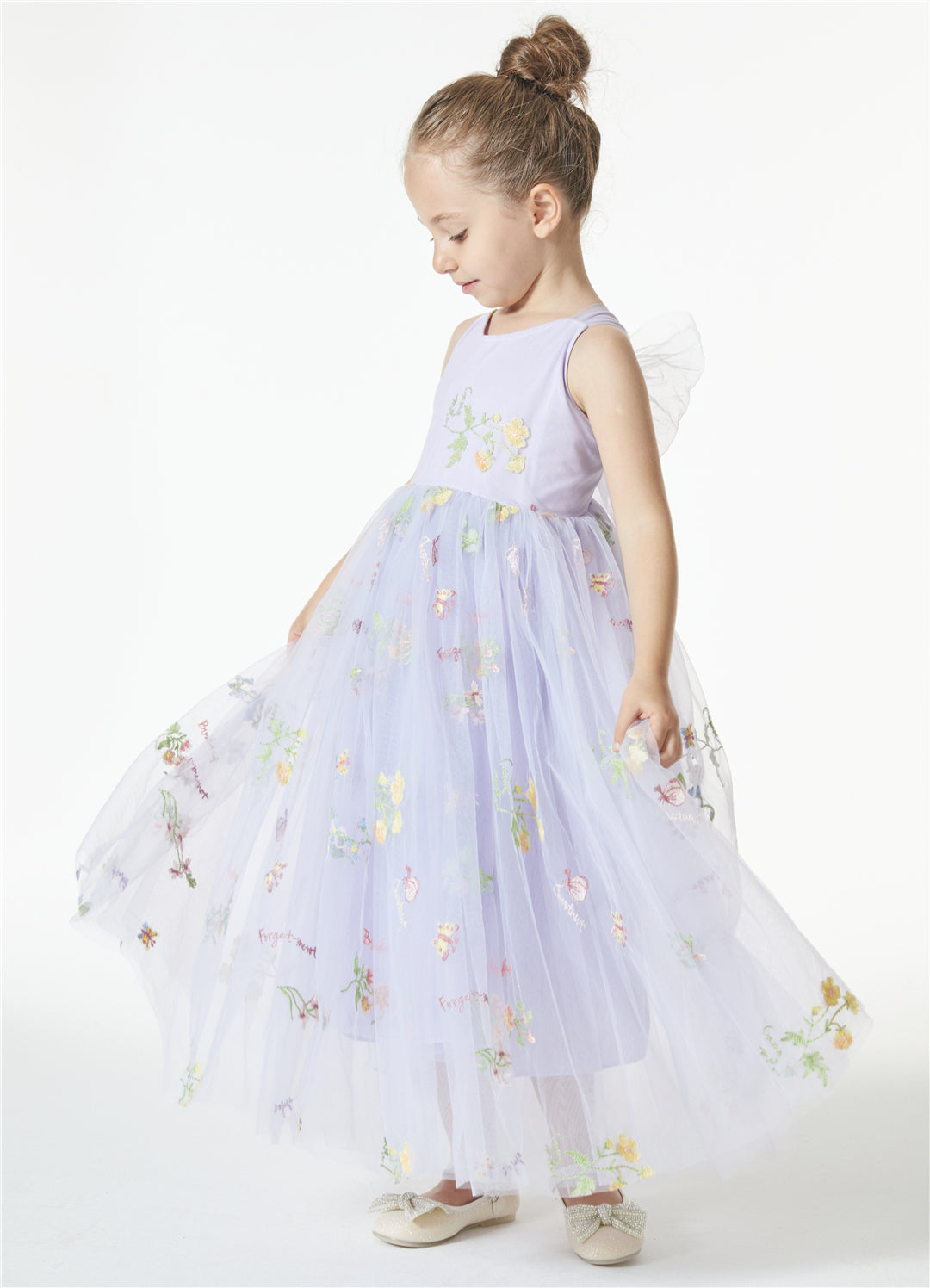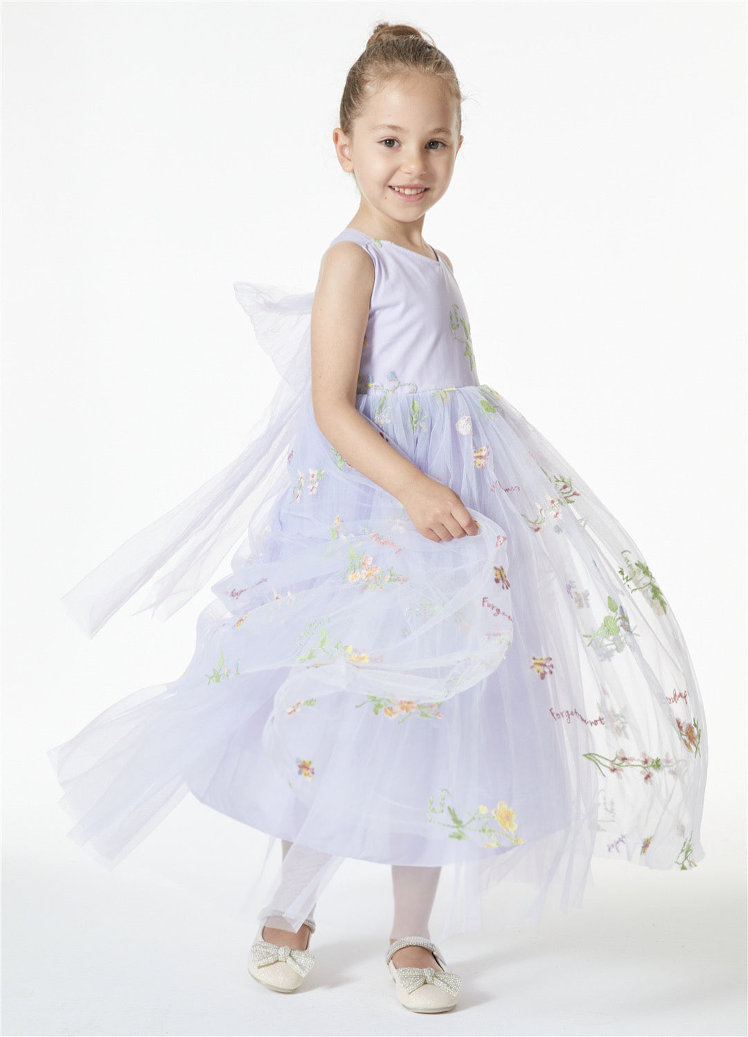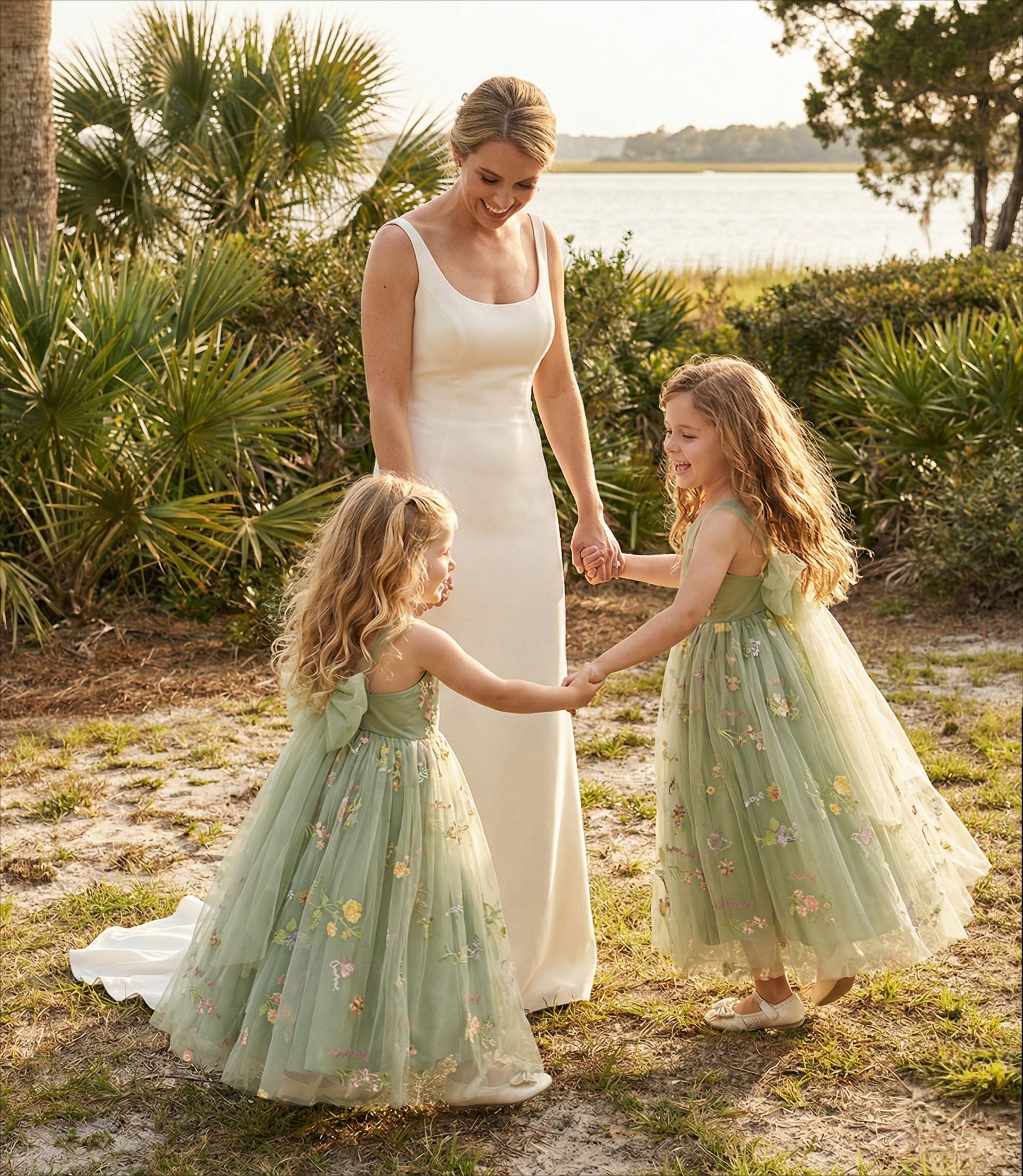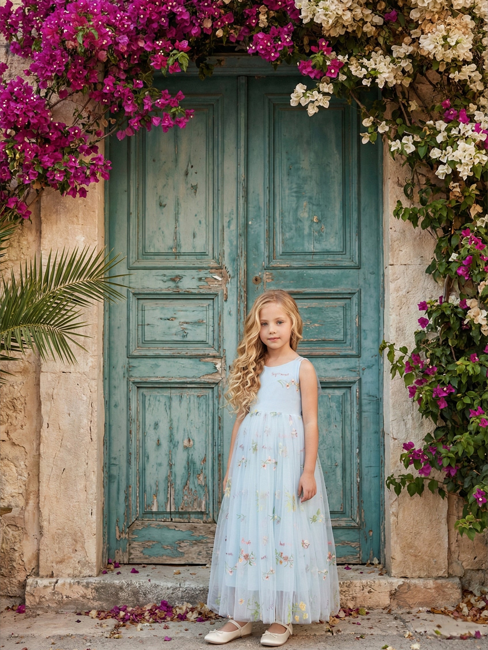 2Bunnies Girls' 12M-14yr Floral Garden Embroidered Tulle Strap Flower Girl Dress Maxi