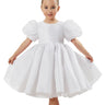 2Bunnies Girls' Organza Puff Sleeve Babydoll Fit & Flare Princess Flower Girl Dress