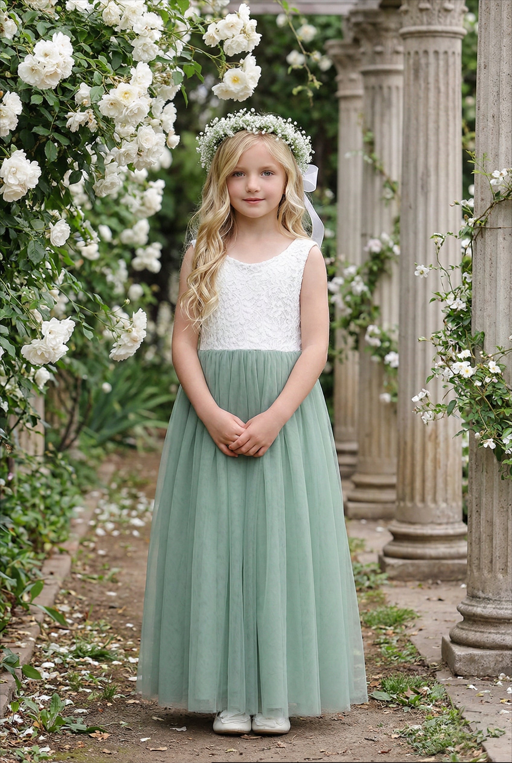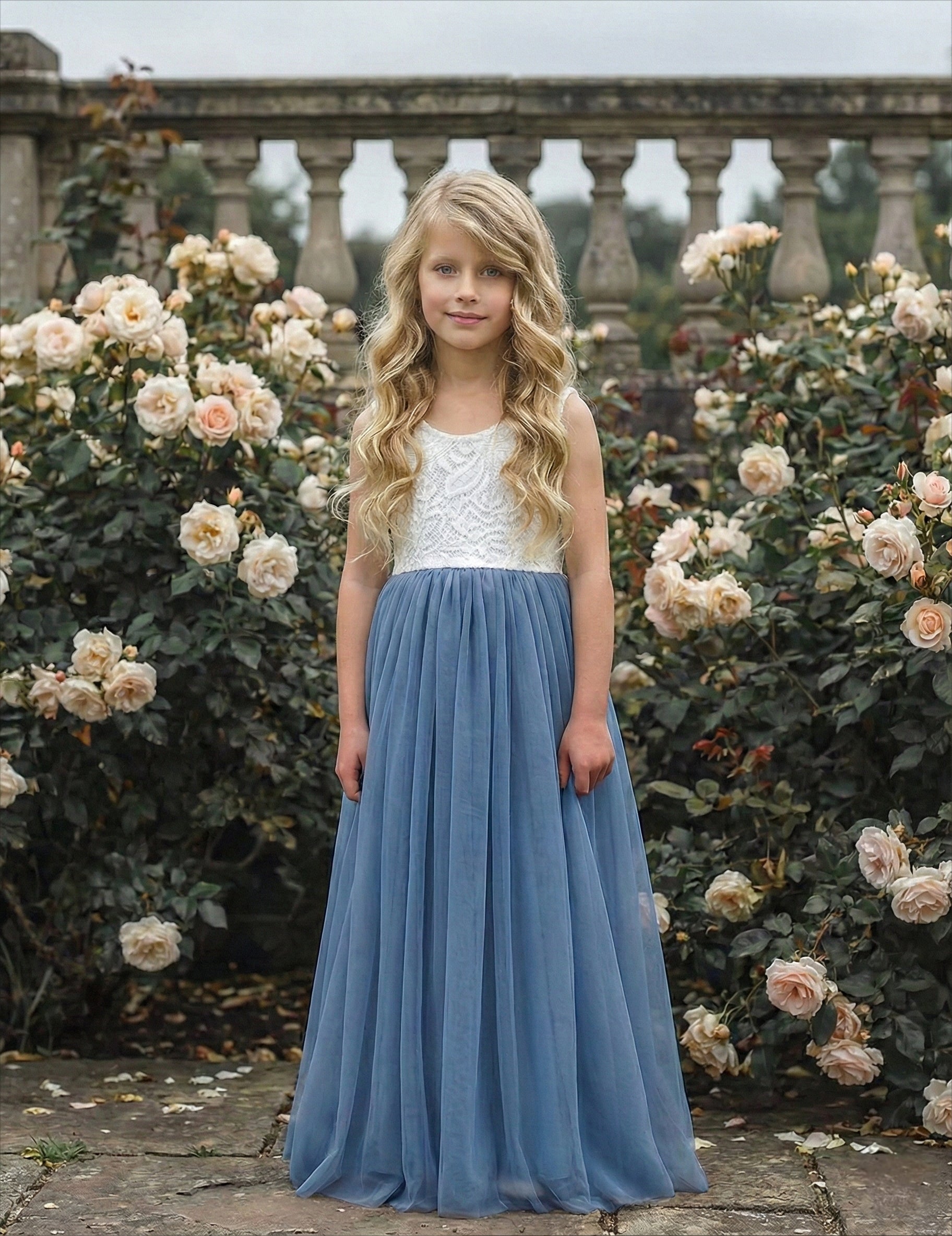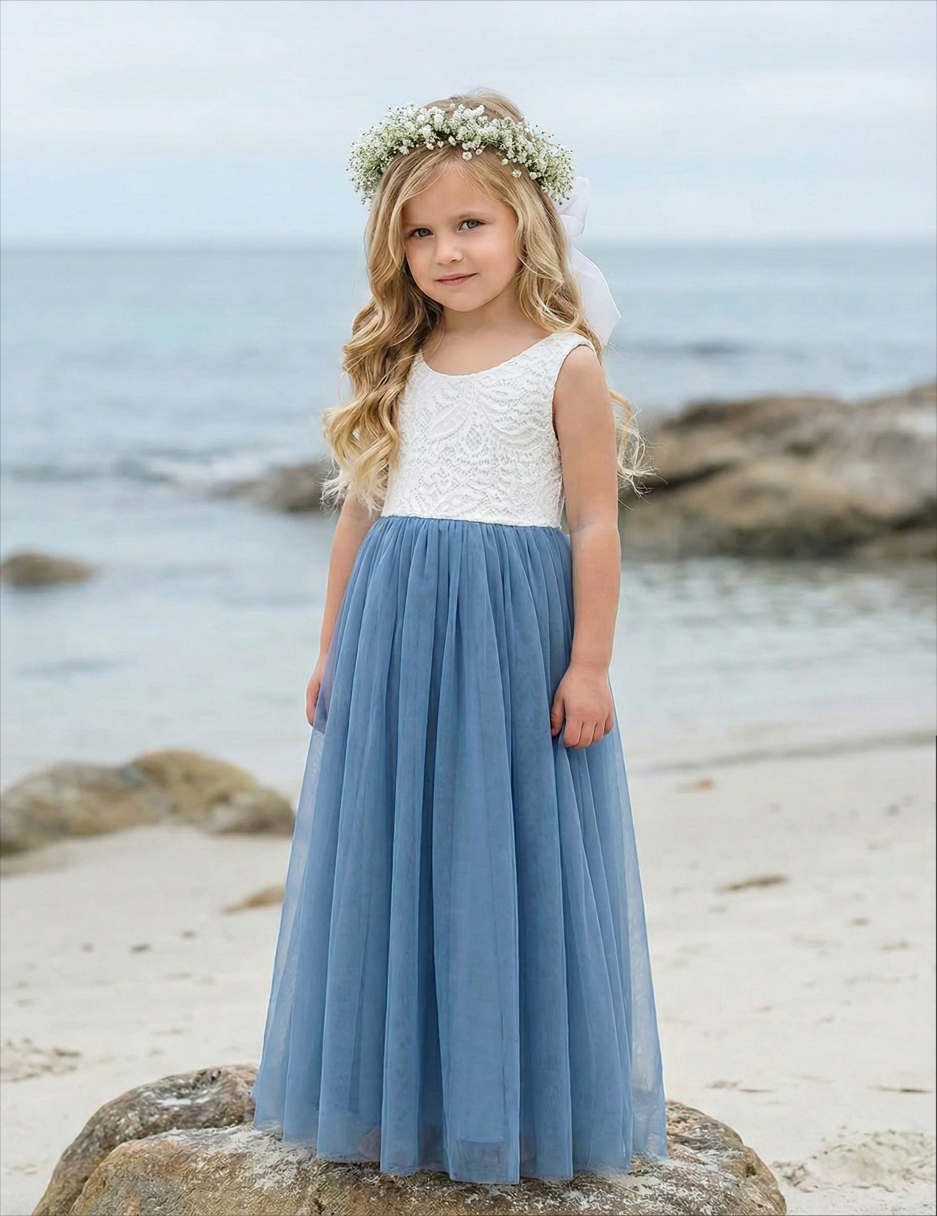 2Bunnies Girls' 12M-12yr Peony Lace Sleeveless Maxi Flower Girl Dress