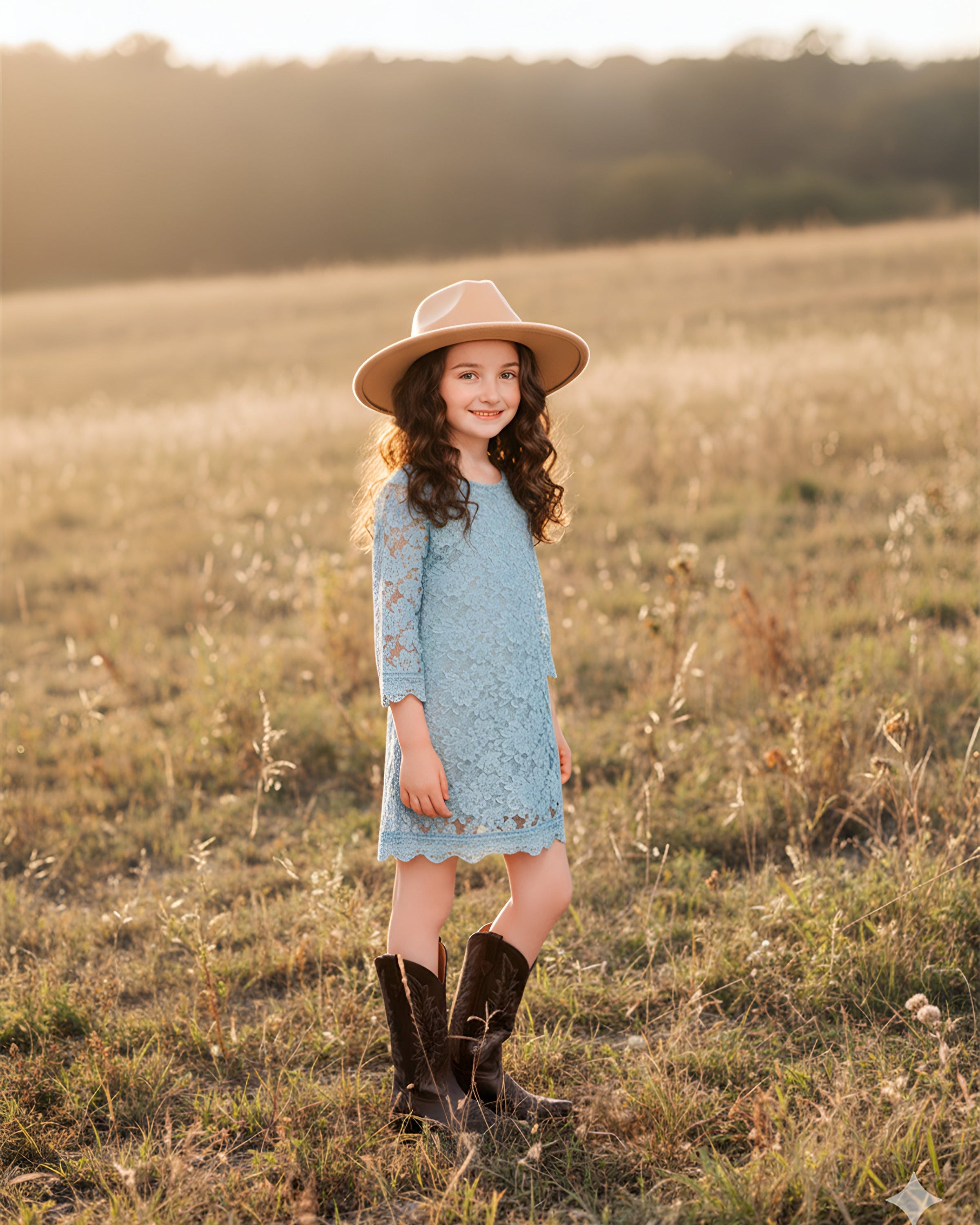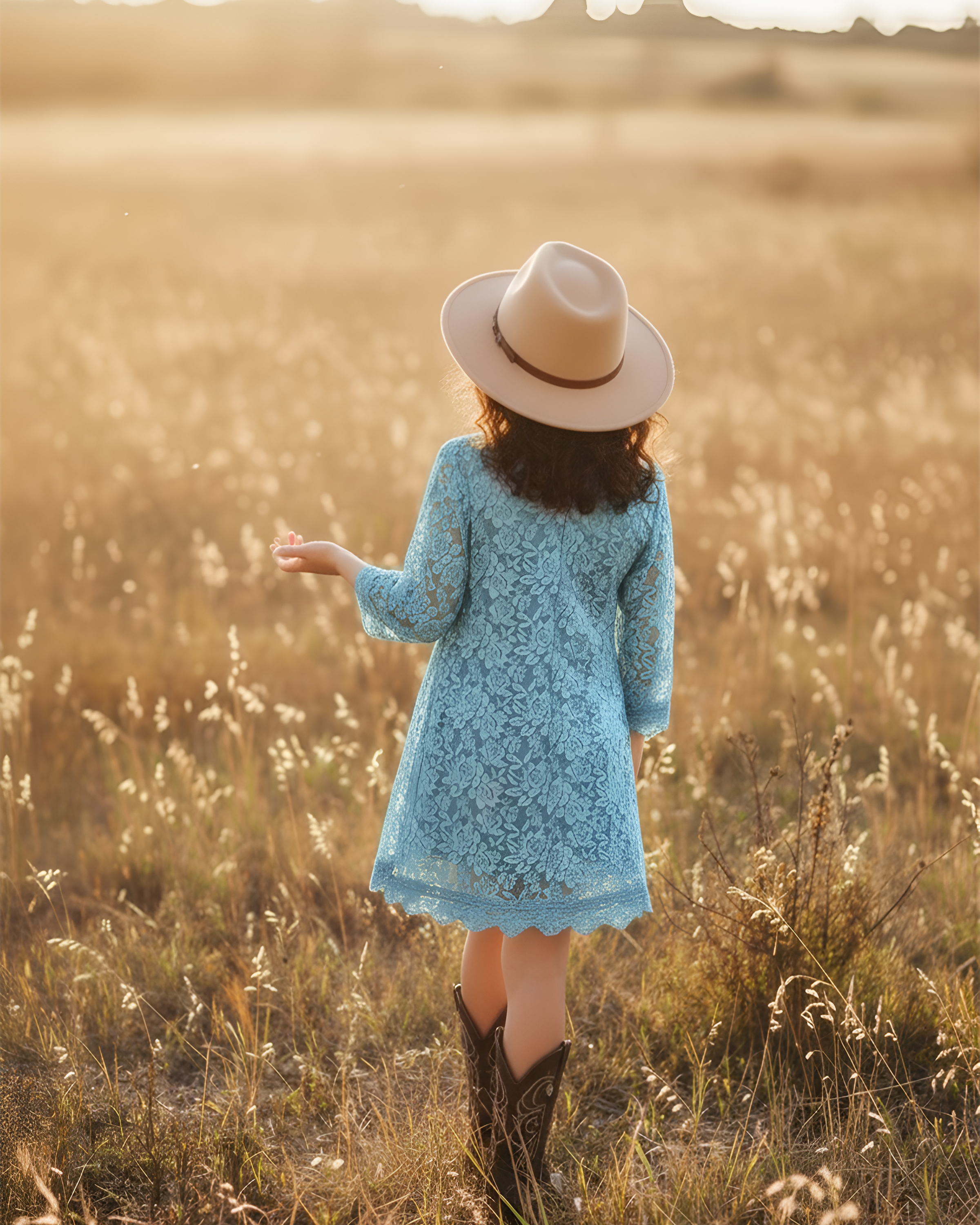 2Bunnies Girls' Boho Rustic Garden Lace Flower Girl Dress