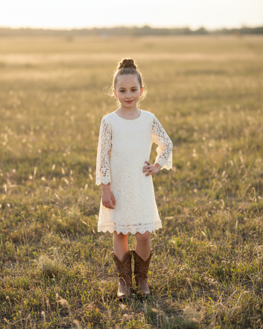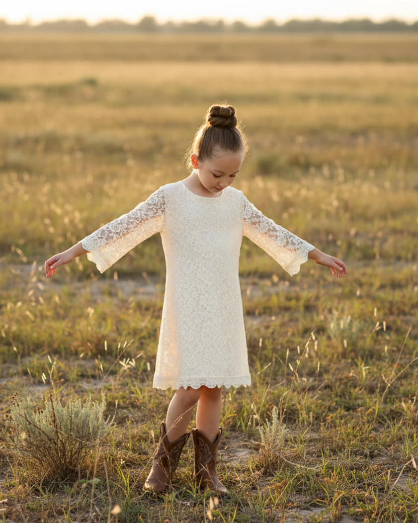 2Bunnies Girls' Boho Rustic Garden Lace Flower Girl Dress