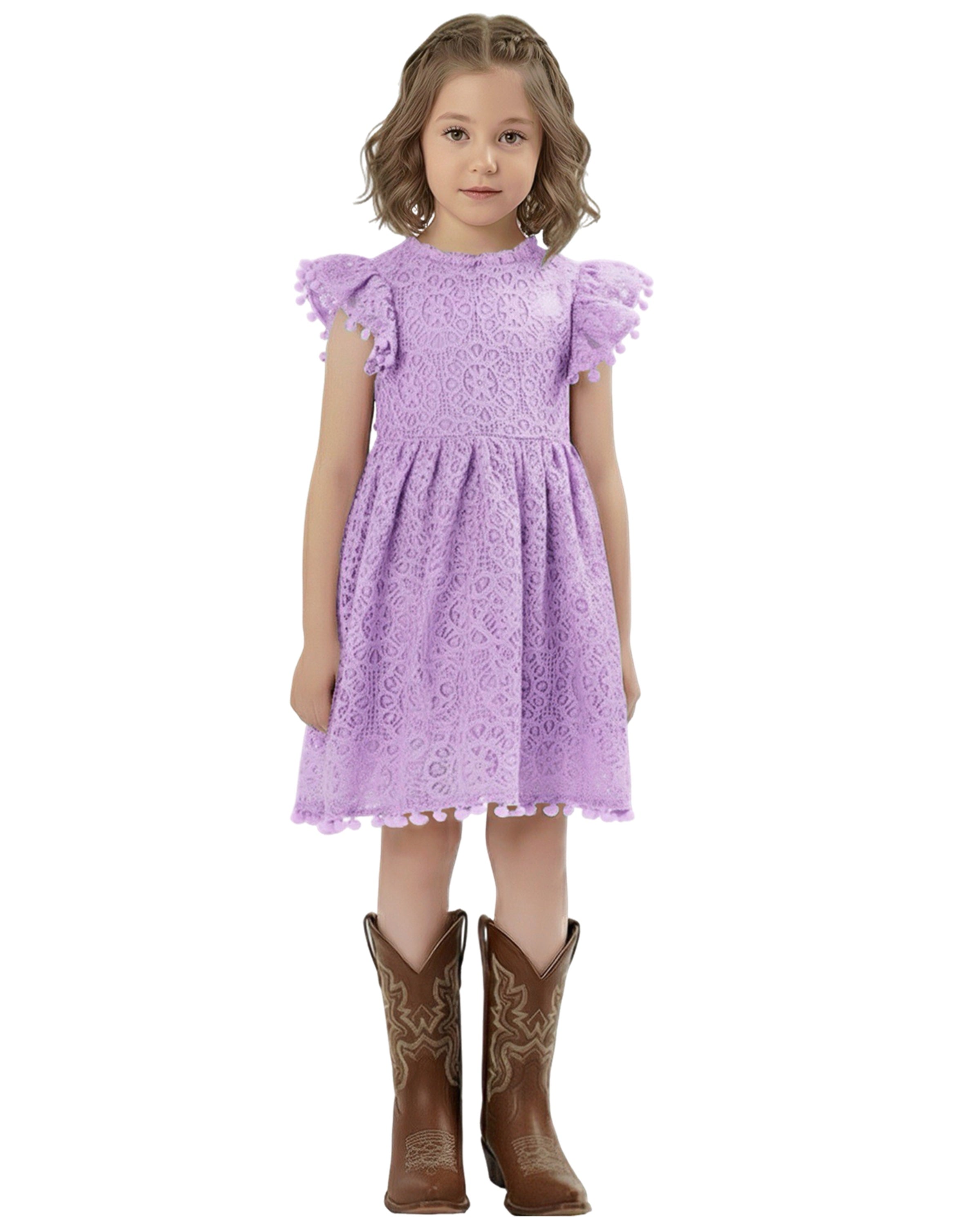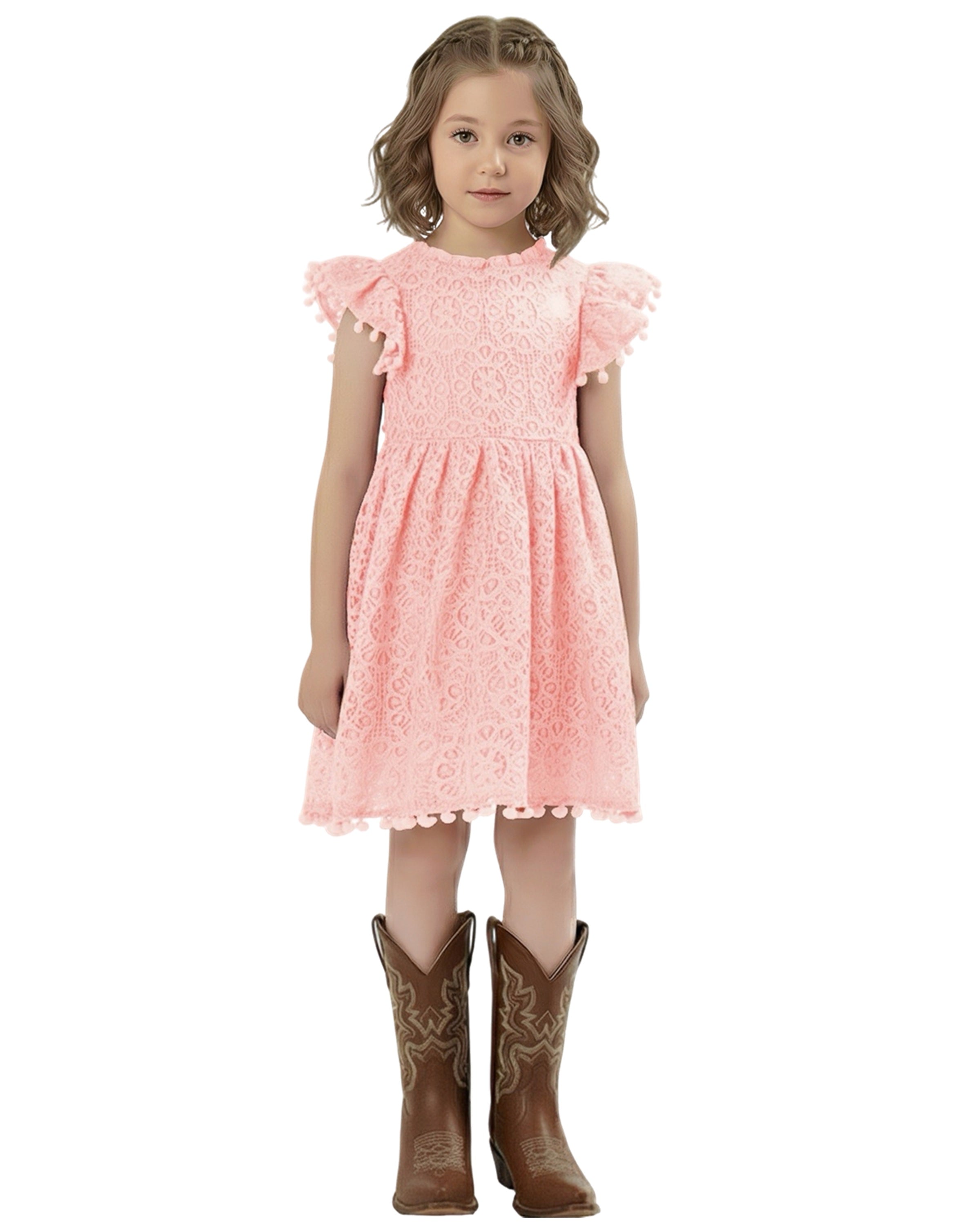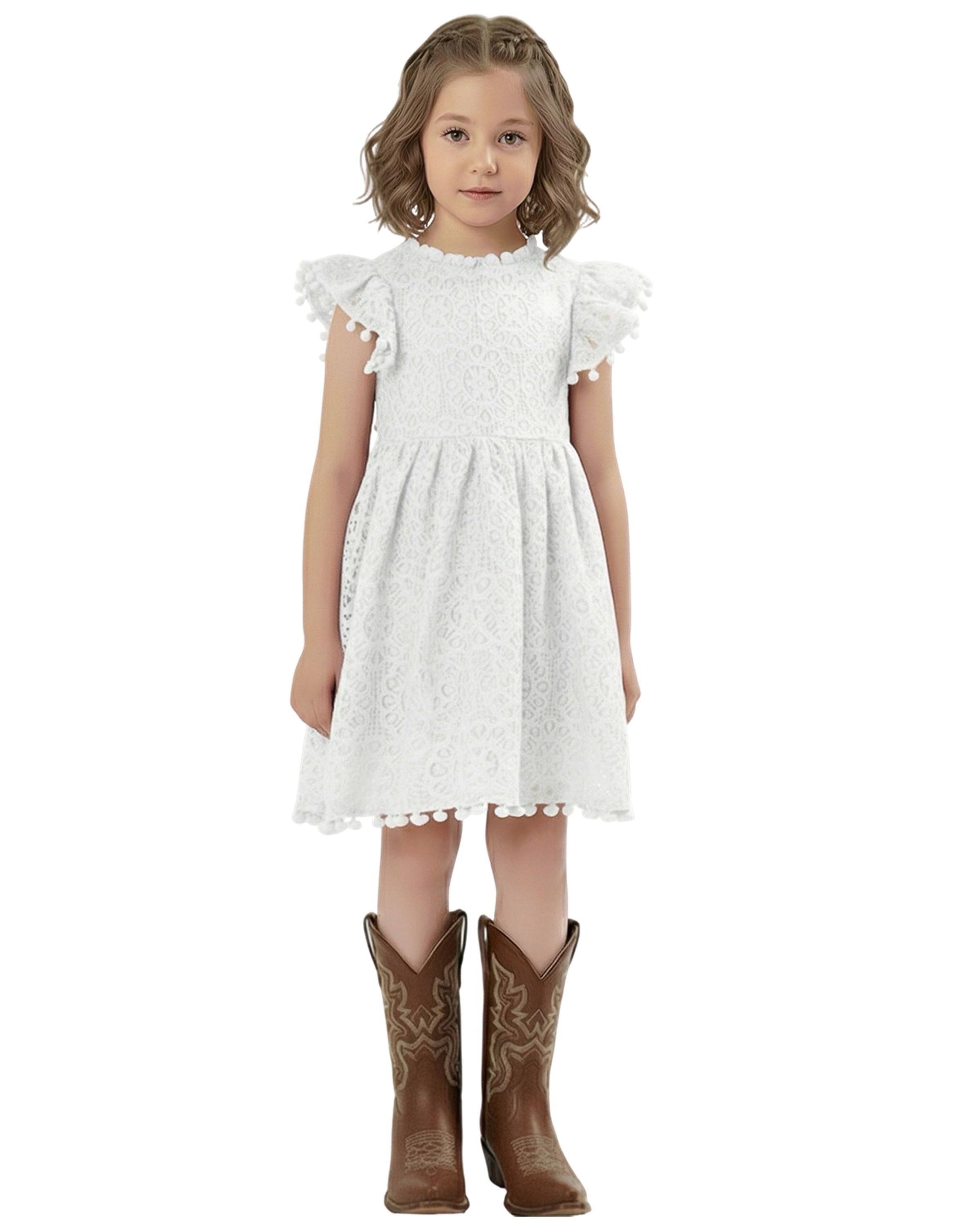 2Bunnies Lace Pom Pom Trim Girl Dress