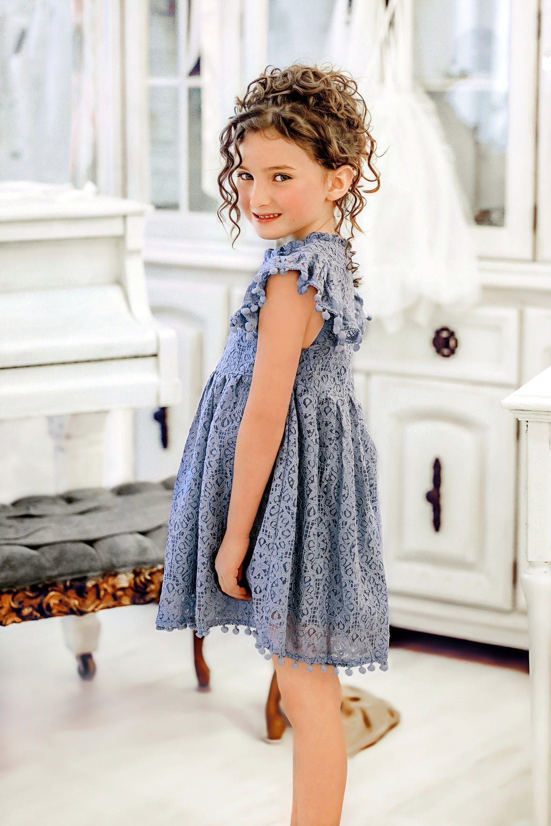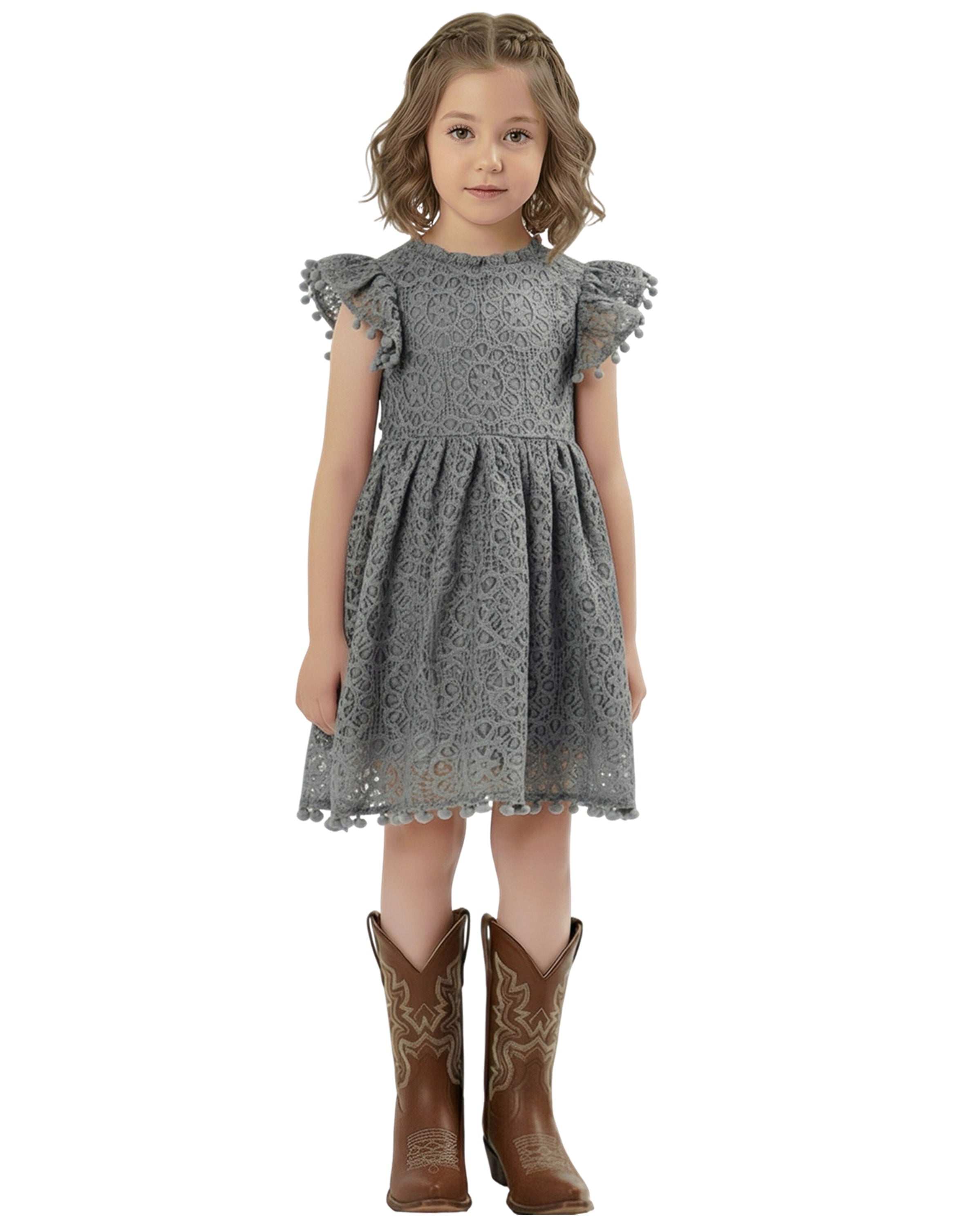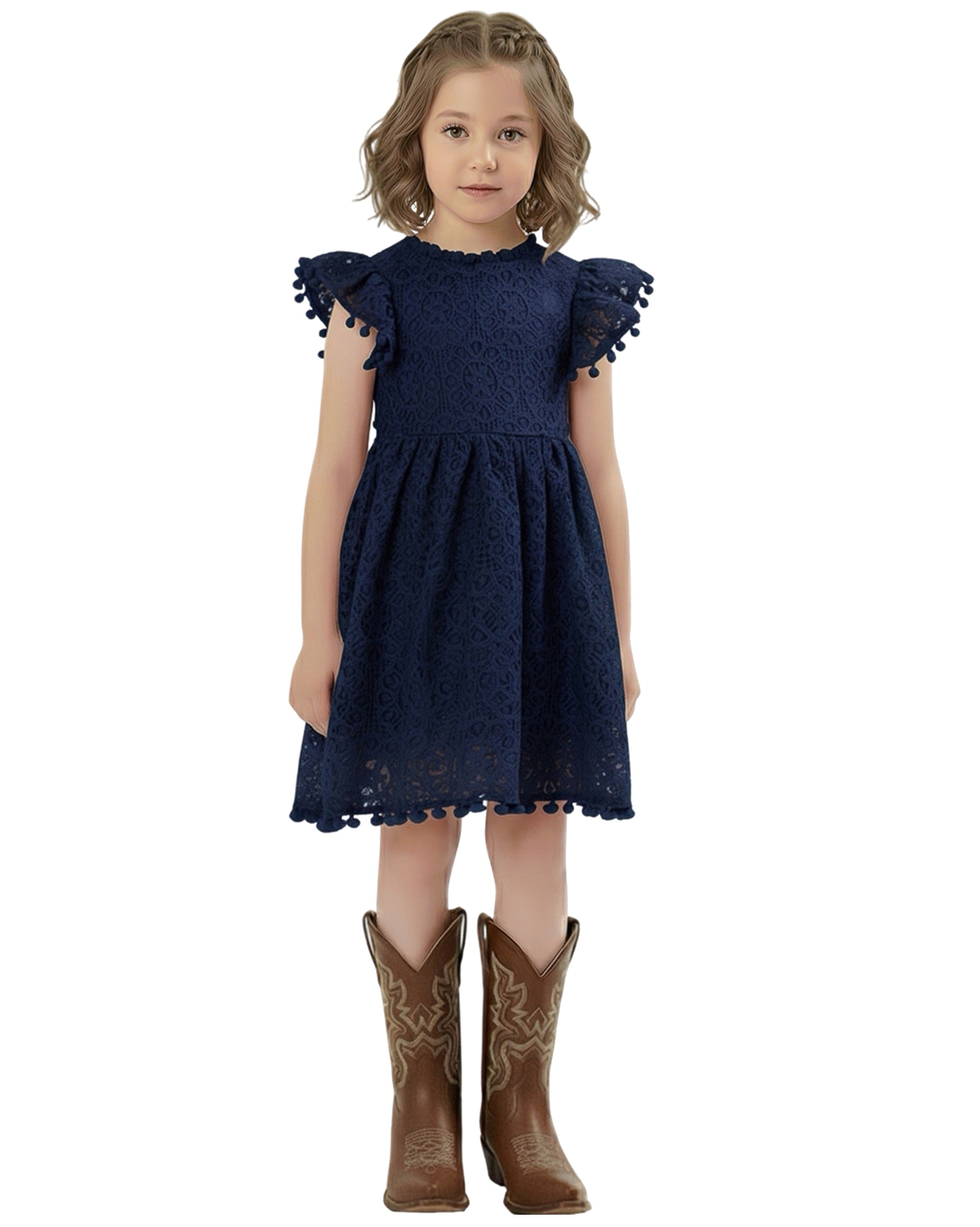 2Bunnies Lace Pom Pom Trim Girl Dress