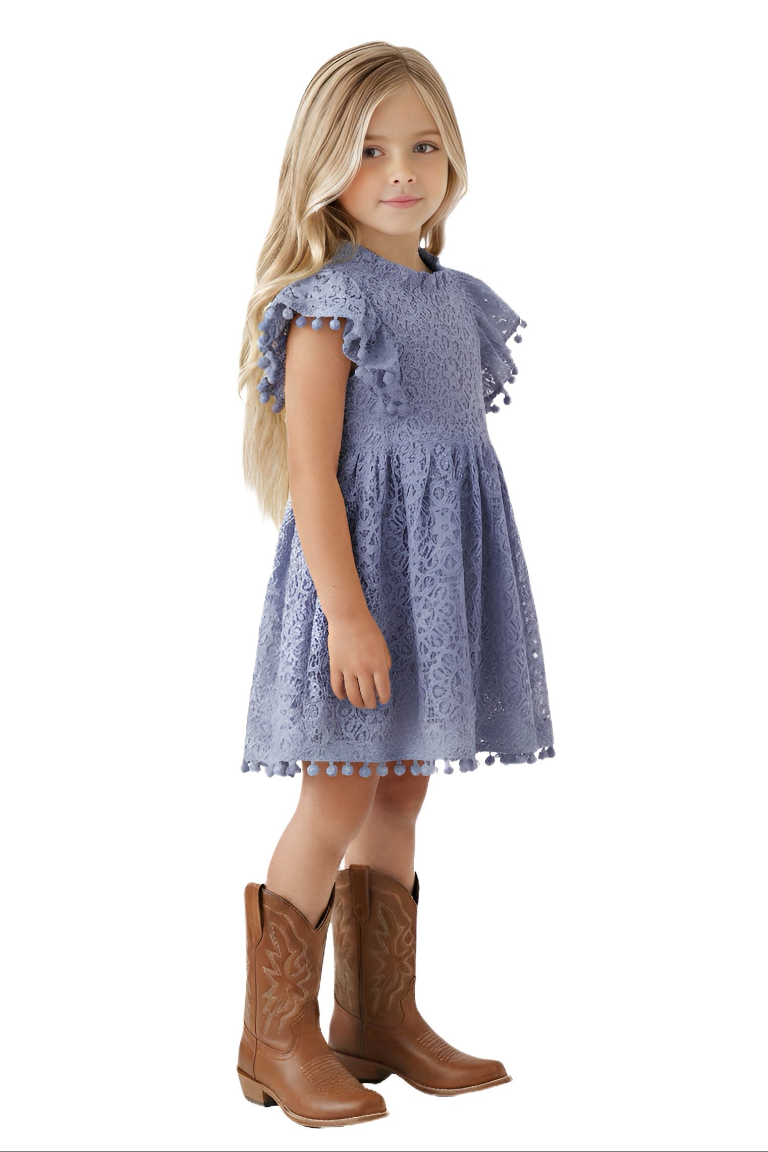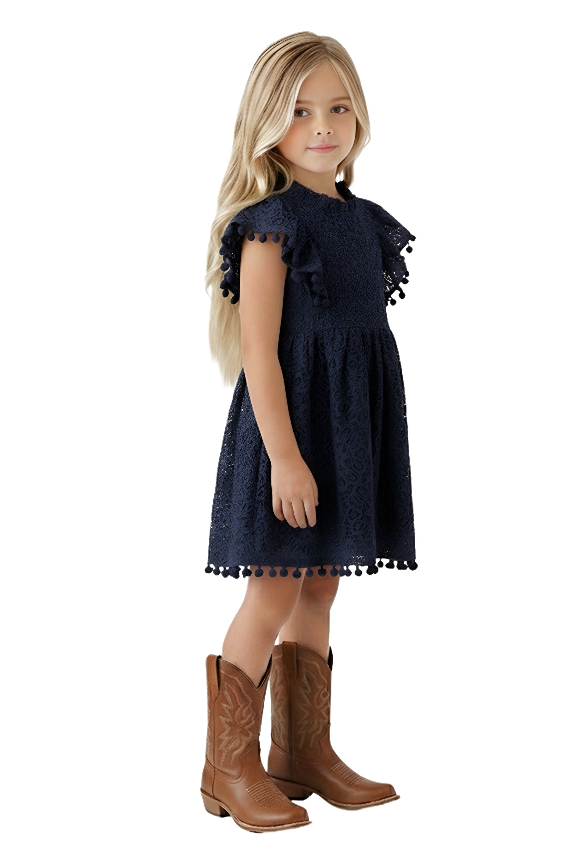 2Bunnies Girls 3T-9yr Lace Pom Pom Trim Girl Dress