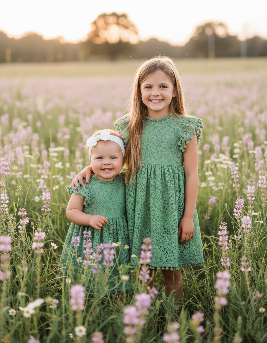 2Bunnies Lace Pom Pom Trim Baby Girl Dress