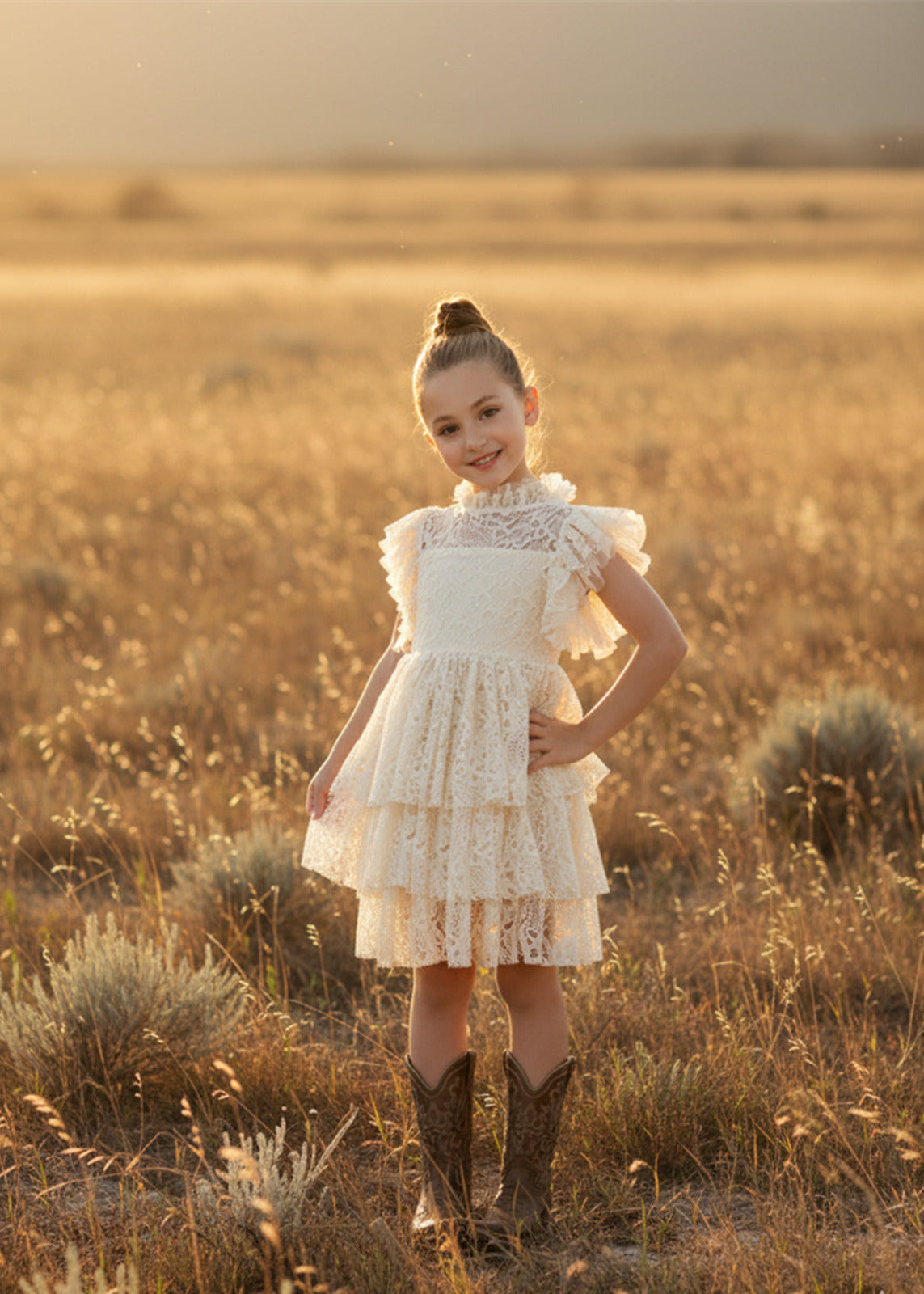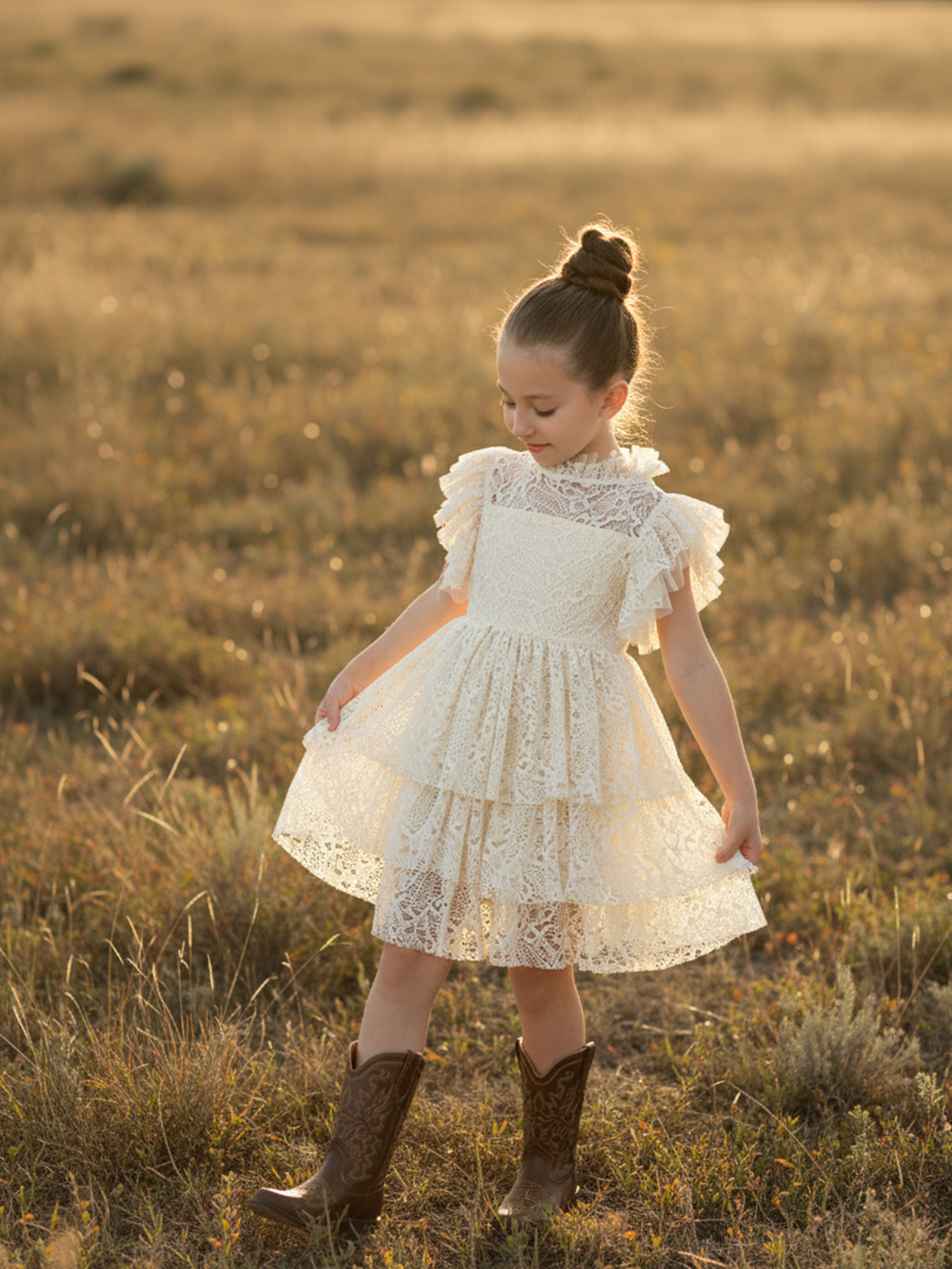2Bunnies Girl Baby Girl Iris Floral All Lace Boho Flower Girl Dress