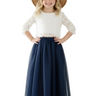 Scalloped Lace 2 Piece Girl Dress Set in Navy