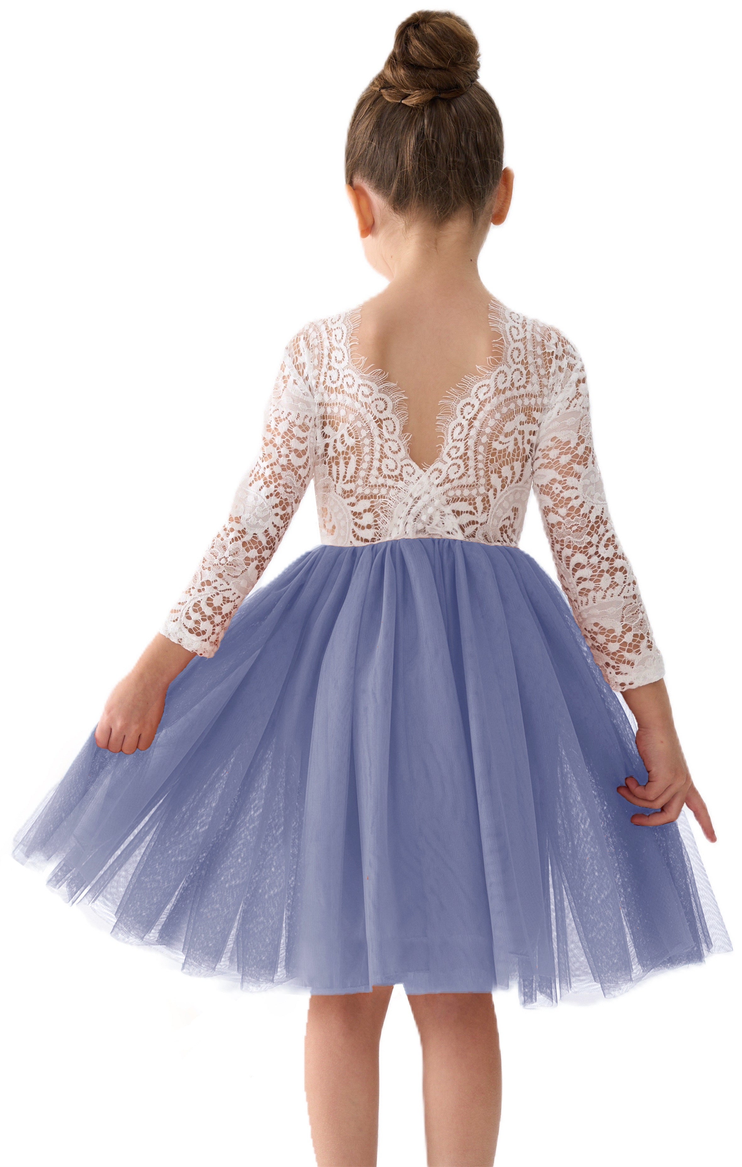 Peony Lace Flower Girl Dress in Bluish Gray
