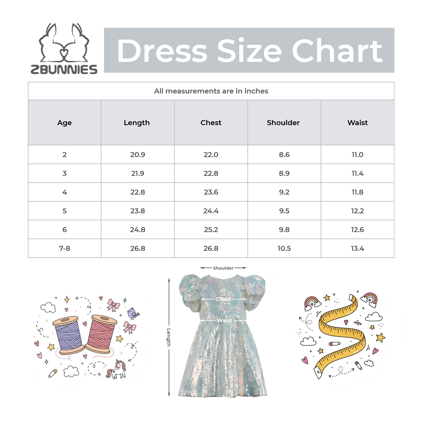 2BUNNIES KIDS CLOTHING SIZE CHART