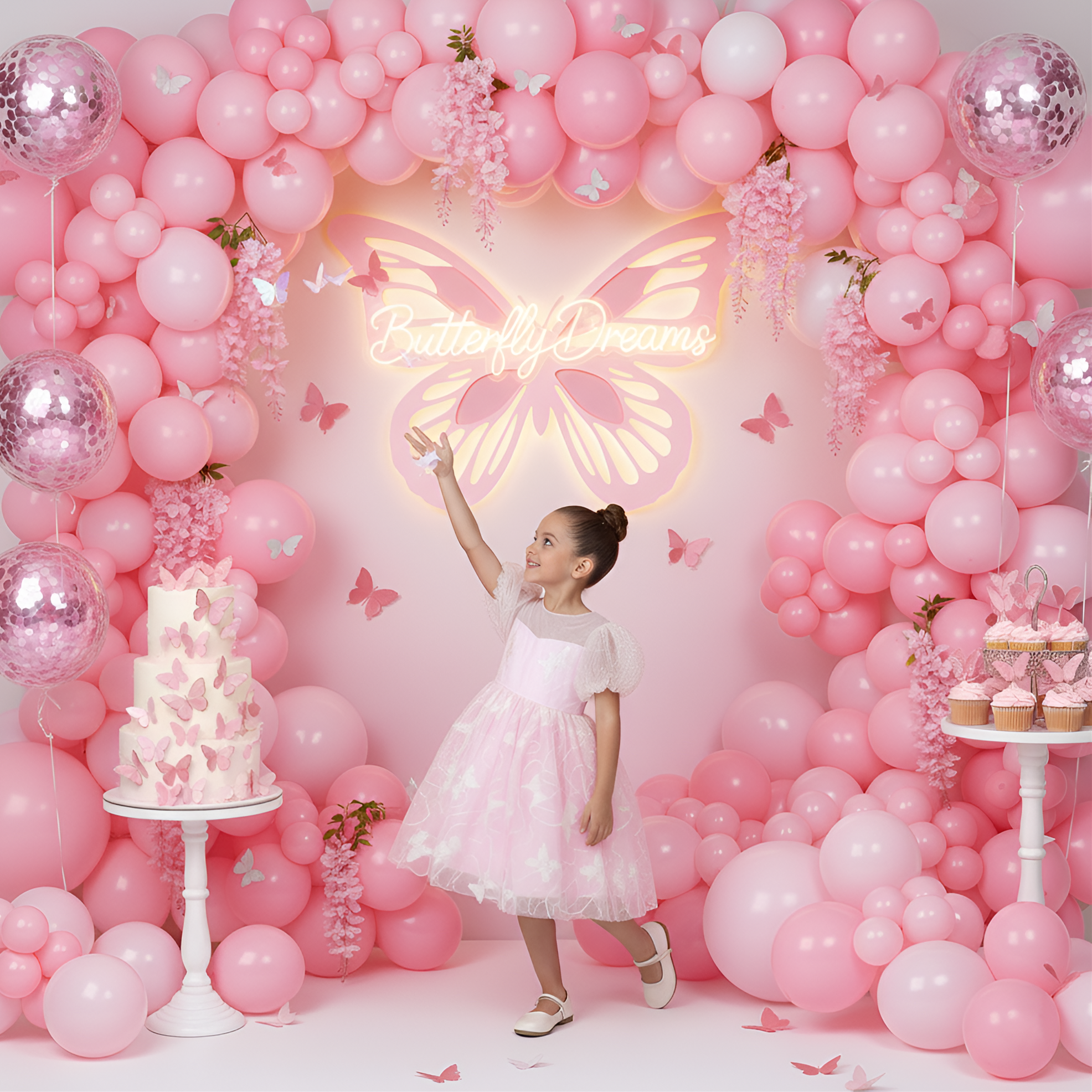 2Bunnies Girls Sparkly Sequin Butterfly Embellishment Tulle Birthday Party Dress