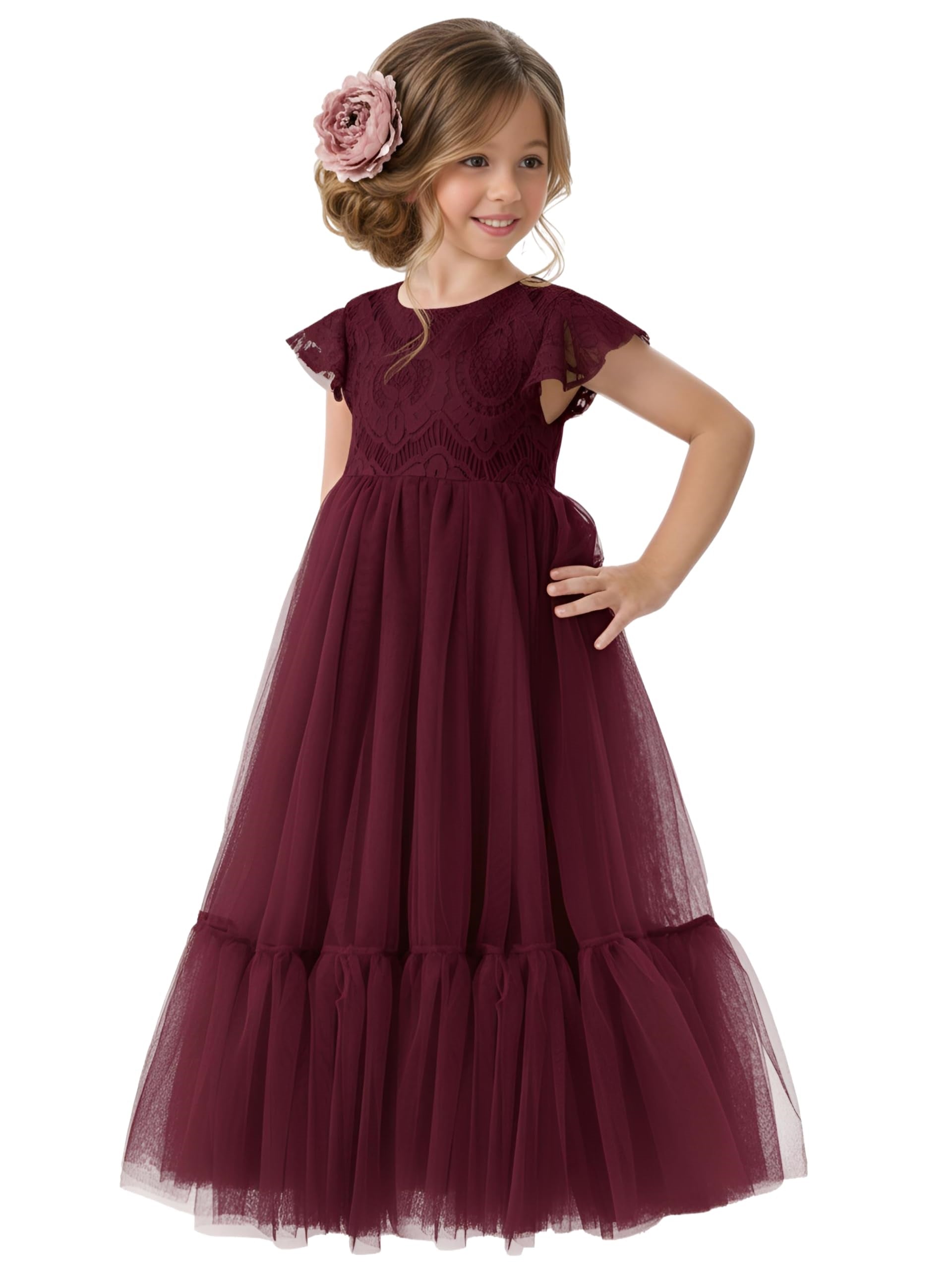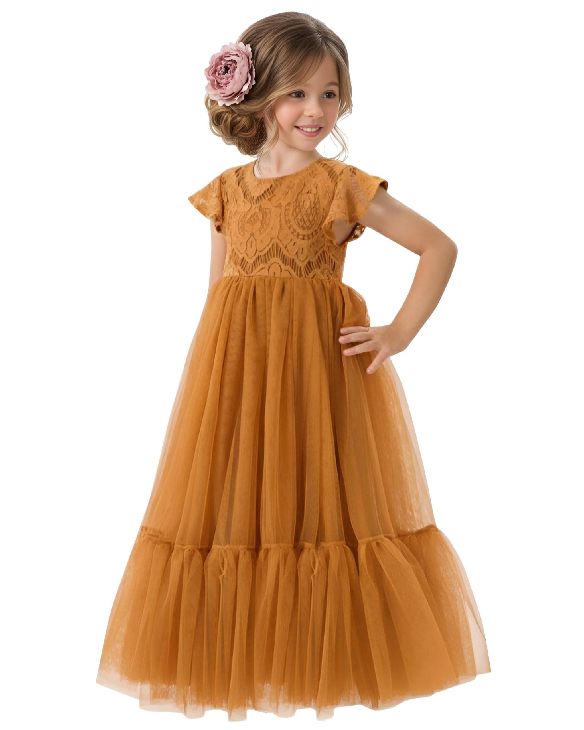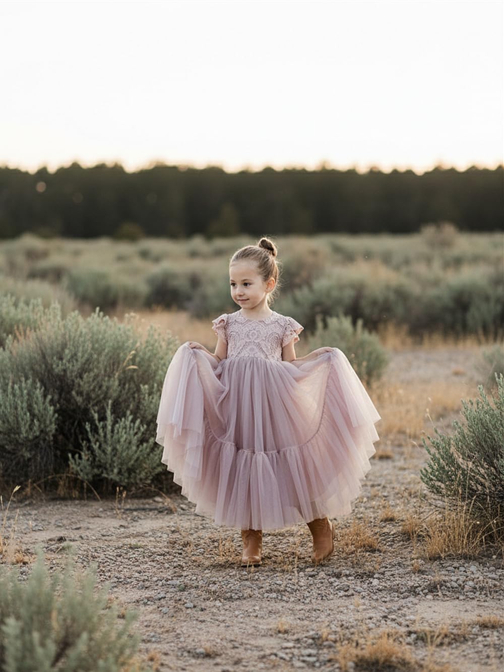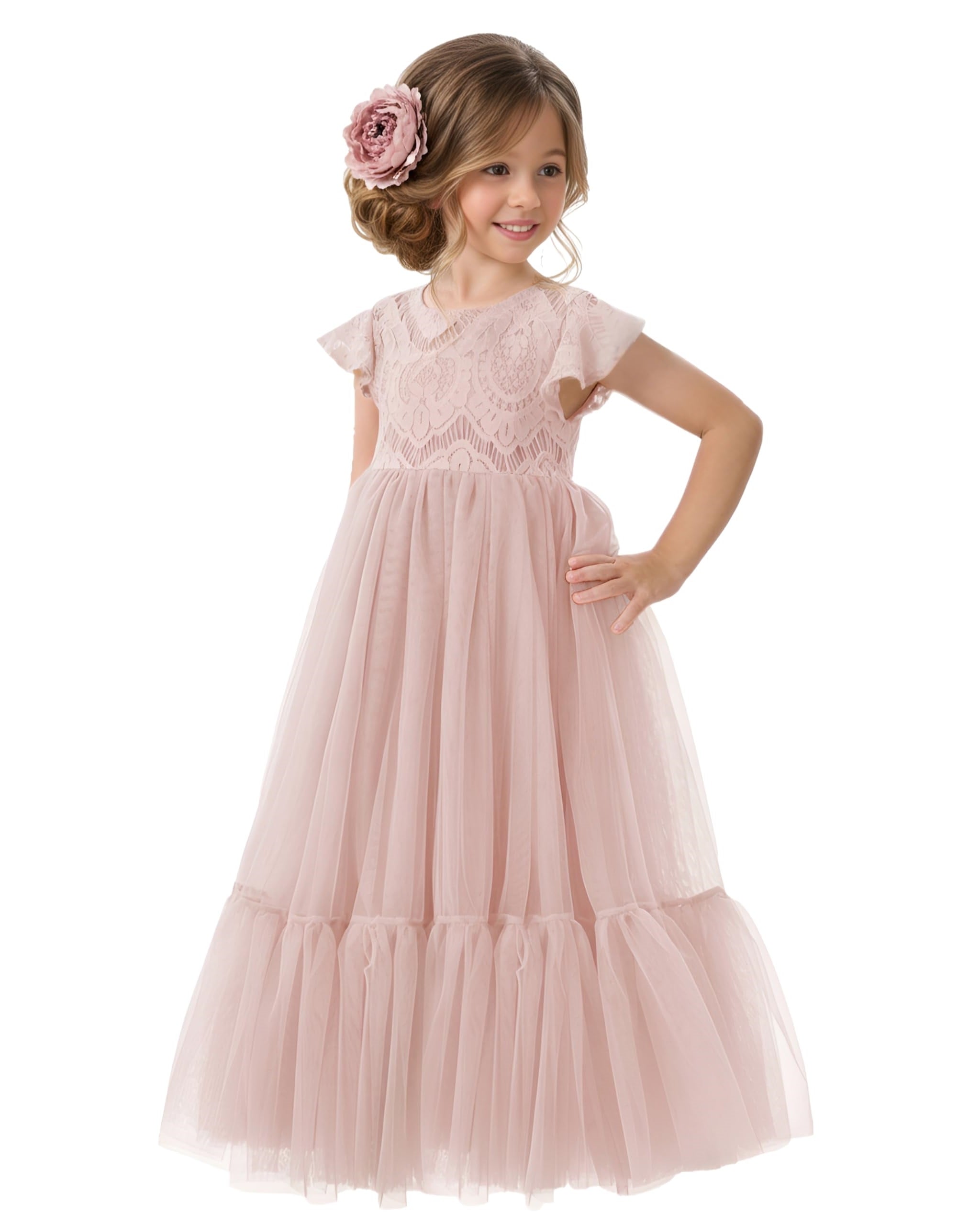 2Bunnies Girls 2T-12yr Orchid Lace Vintage Bohemian Girl Dress in Dusty Pink