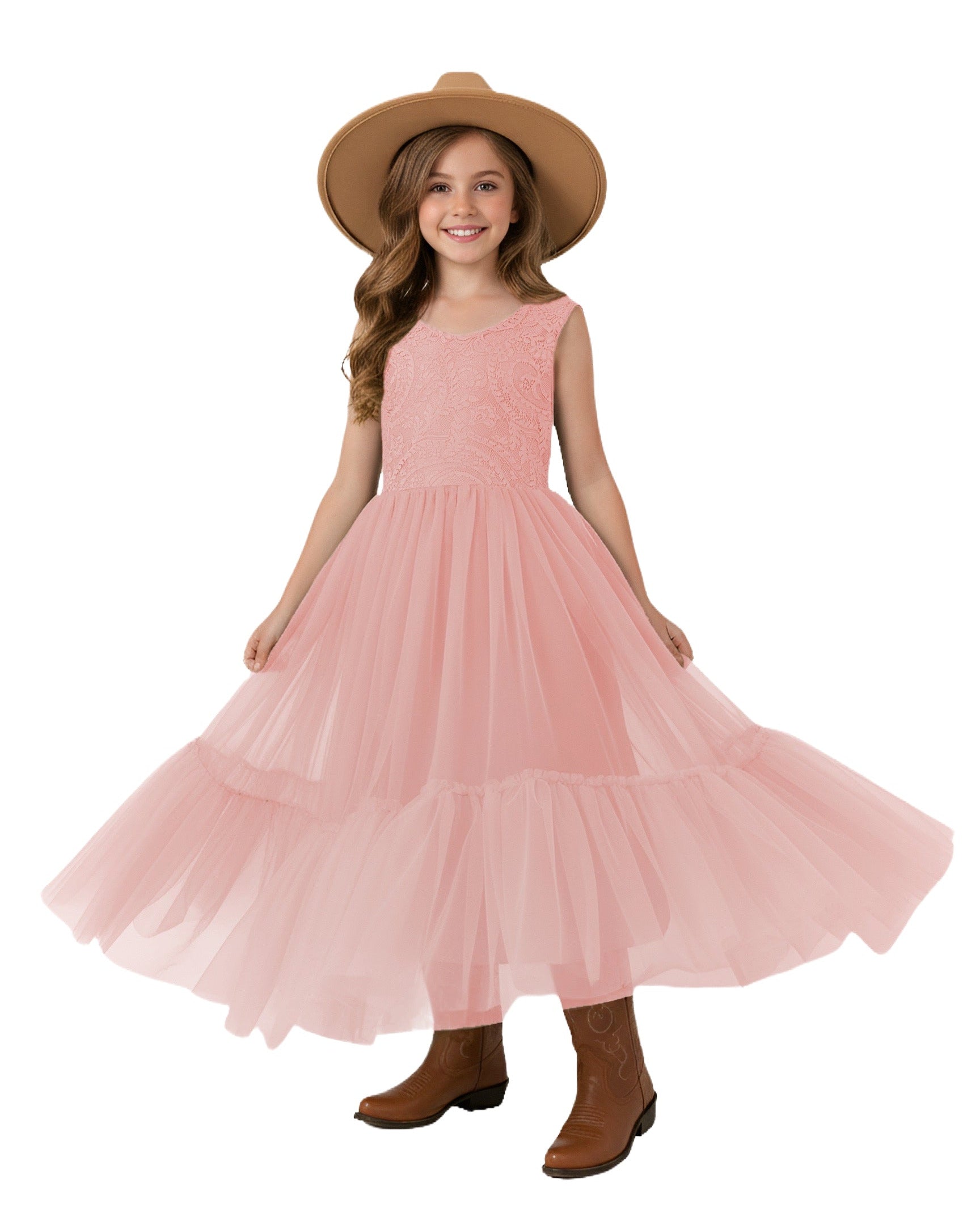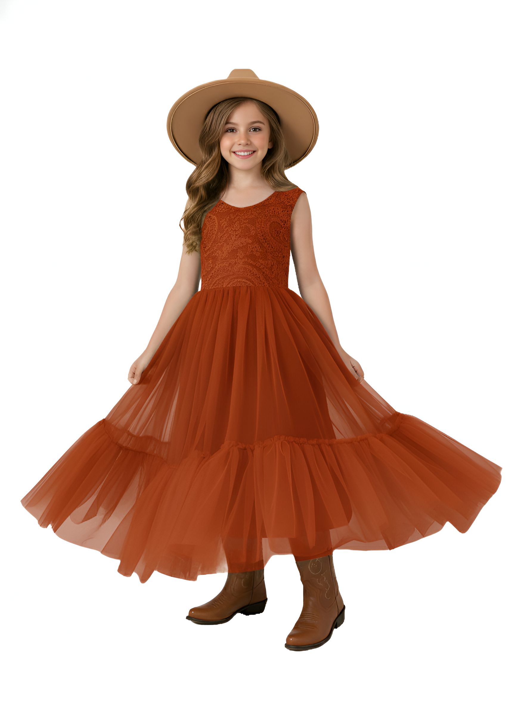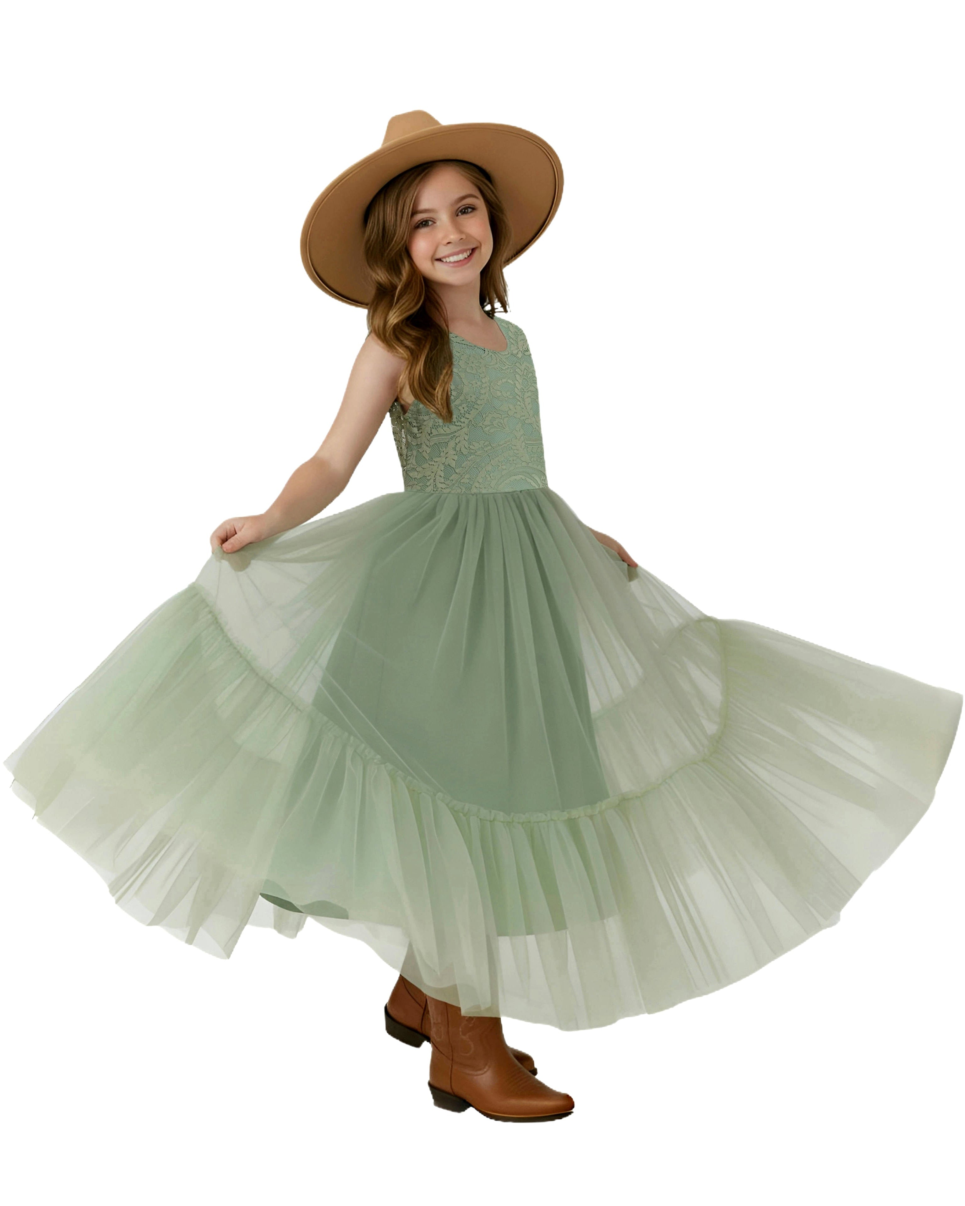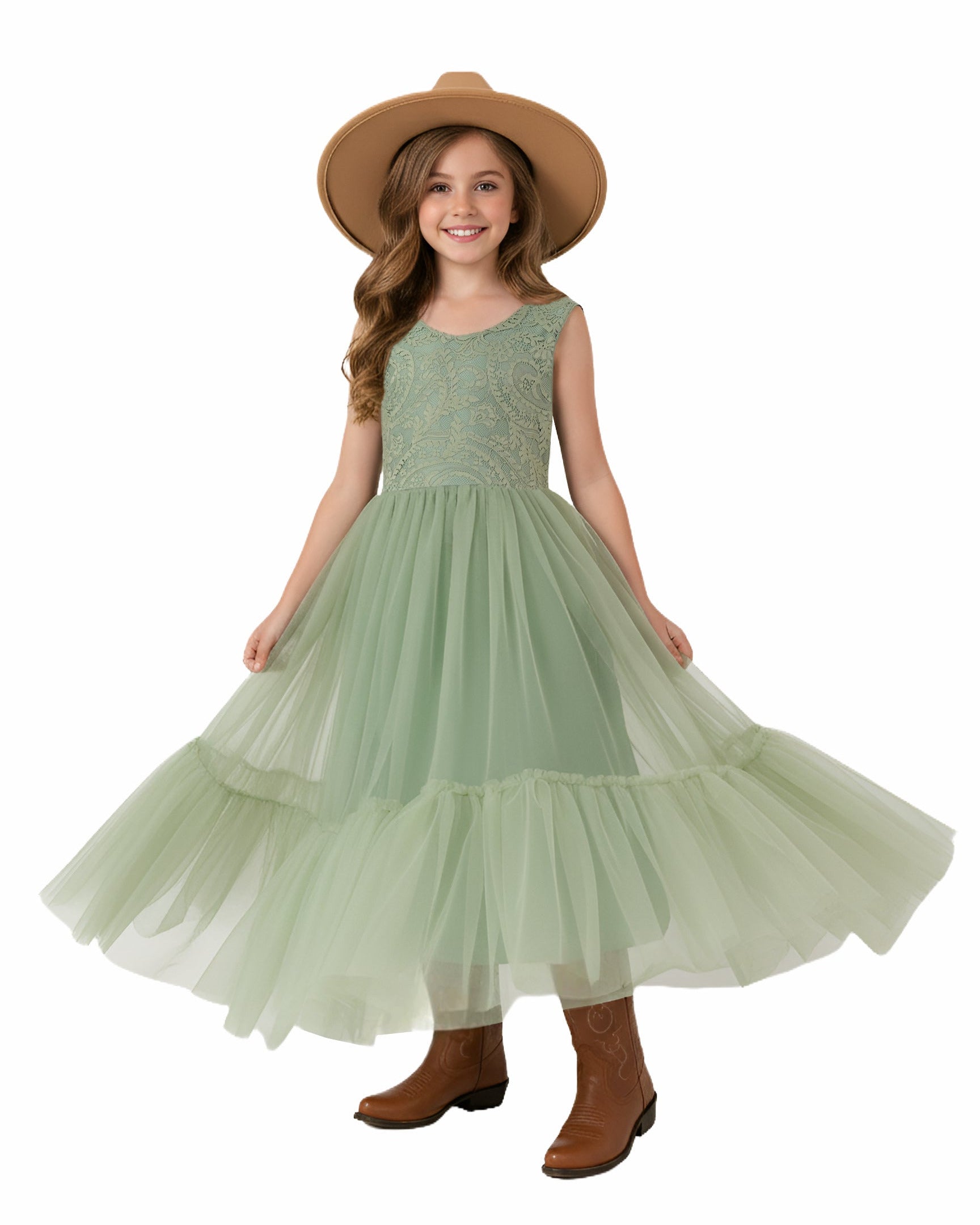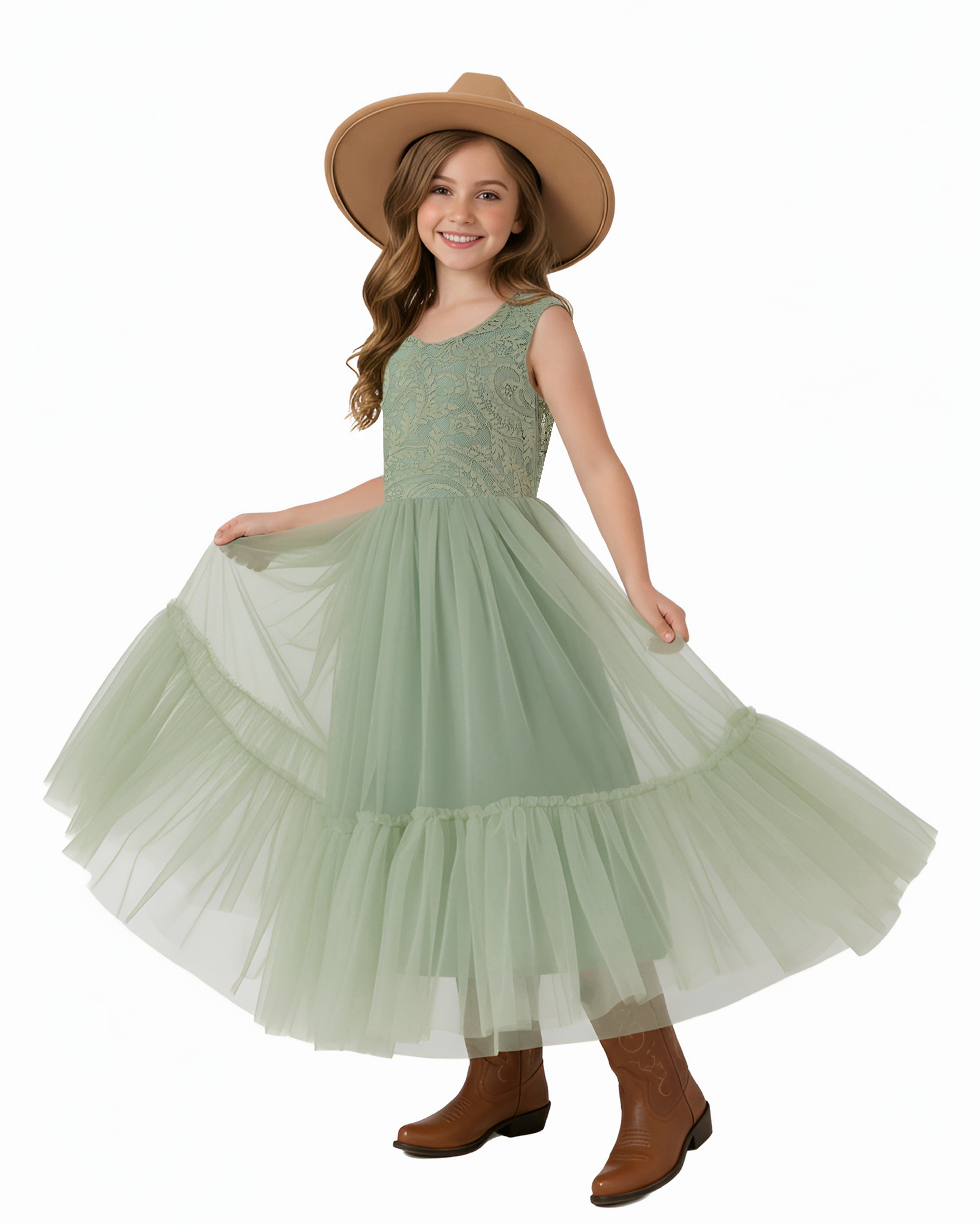 2Bunnies Girls' 1-12Y Paisley Lace Tulle Sleeveless Ruffled Maxi Dress