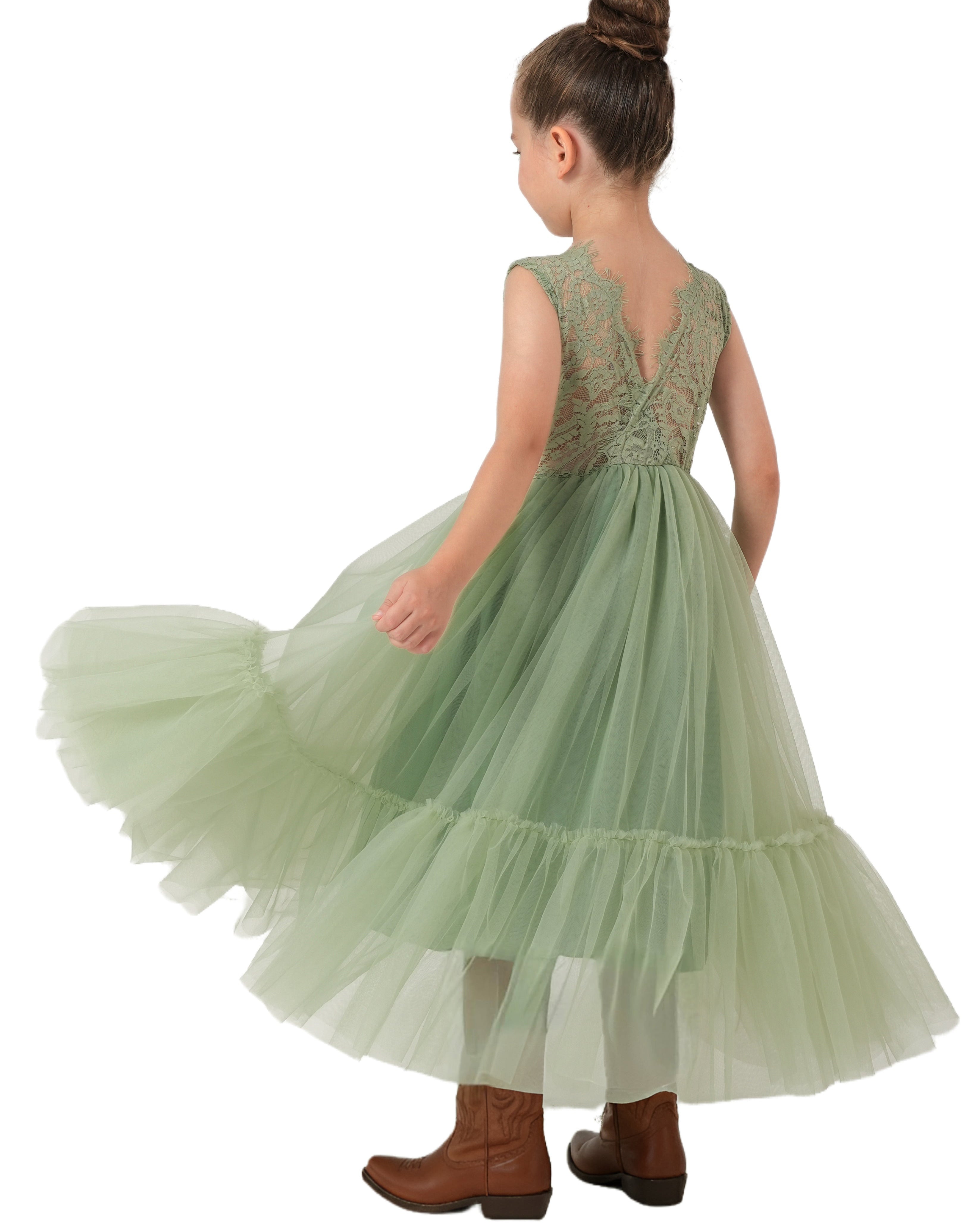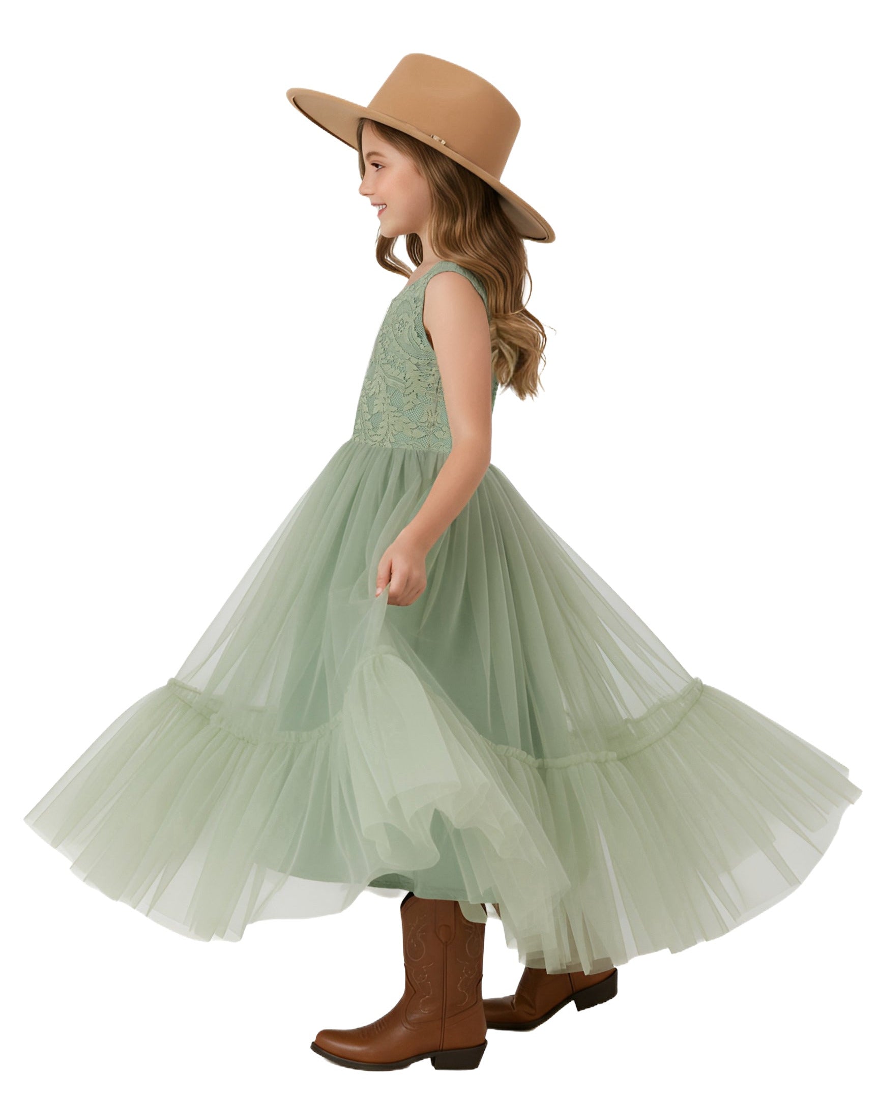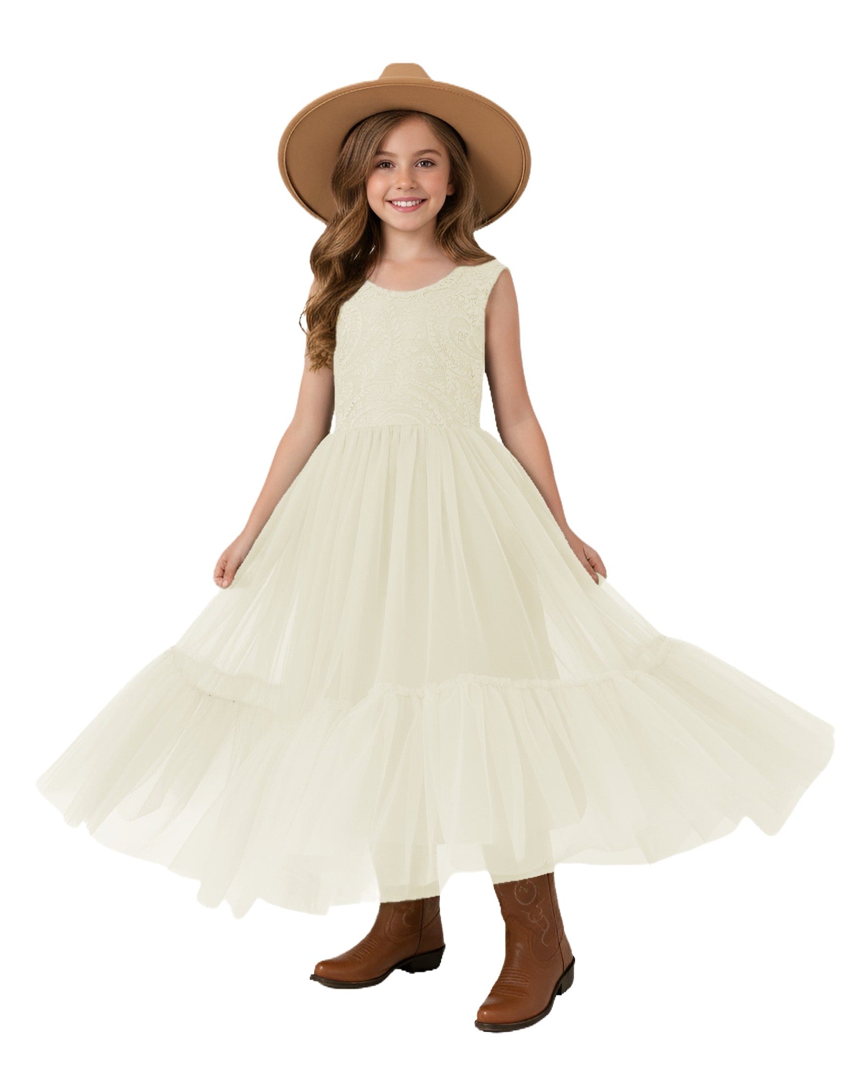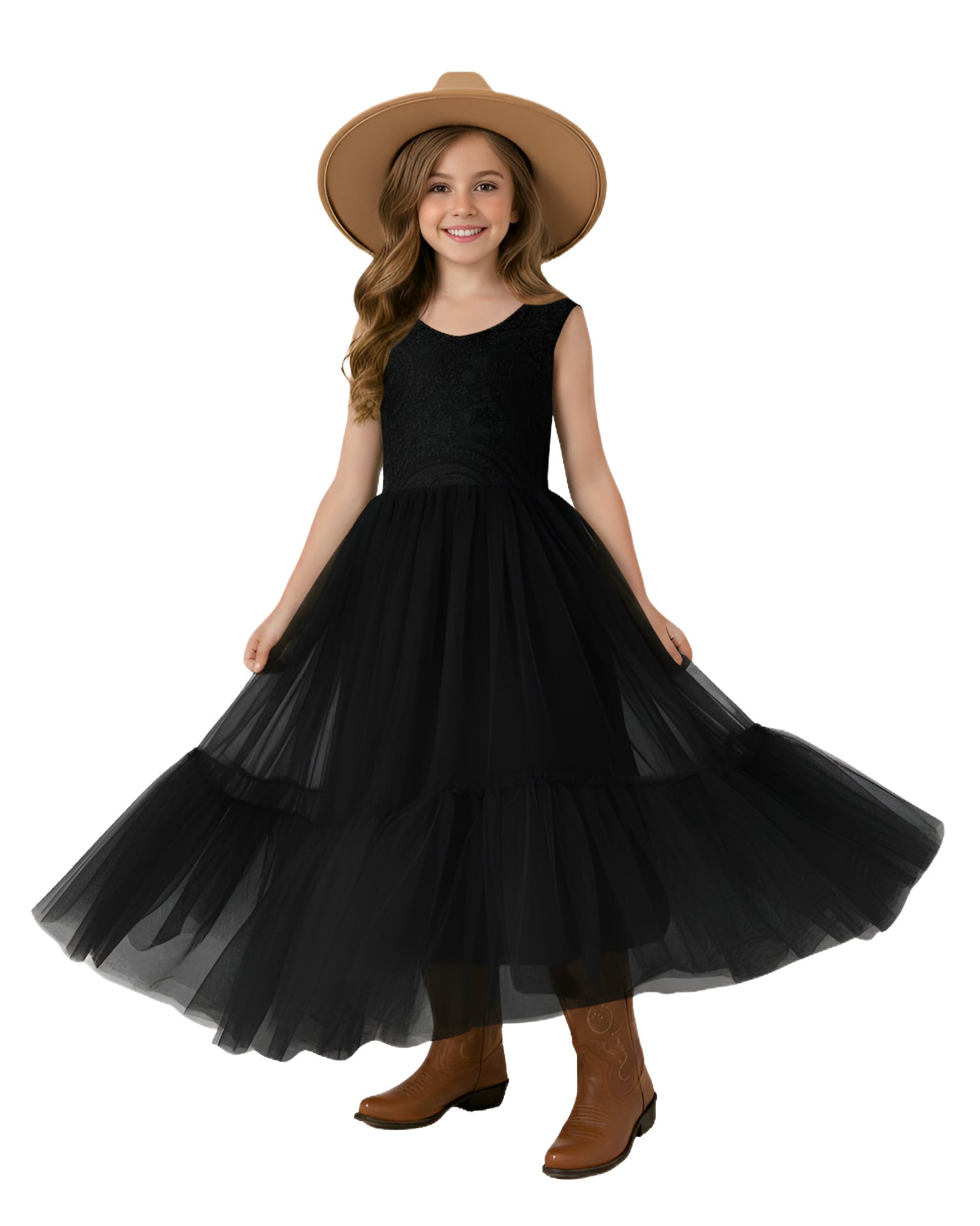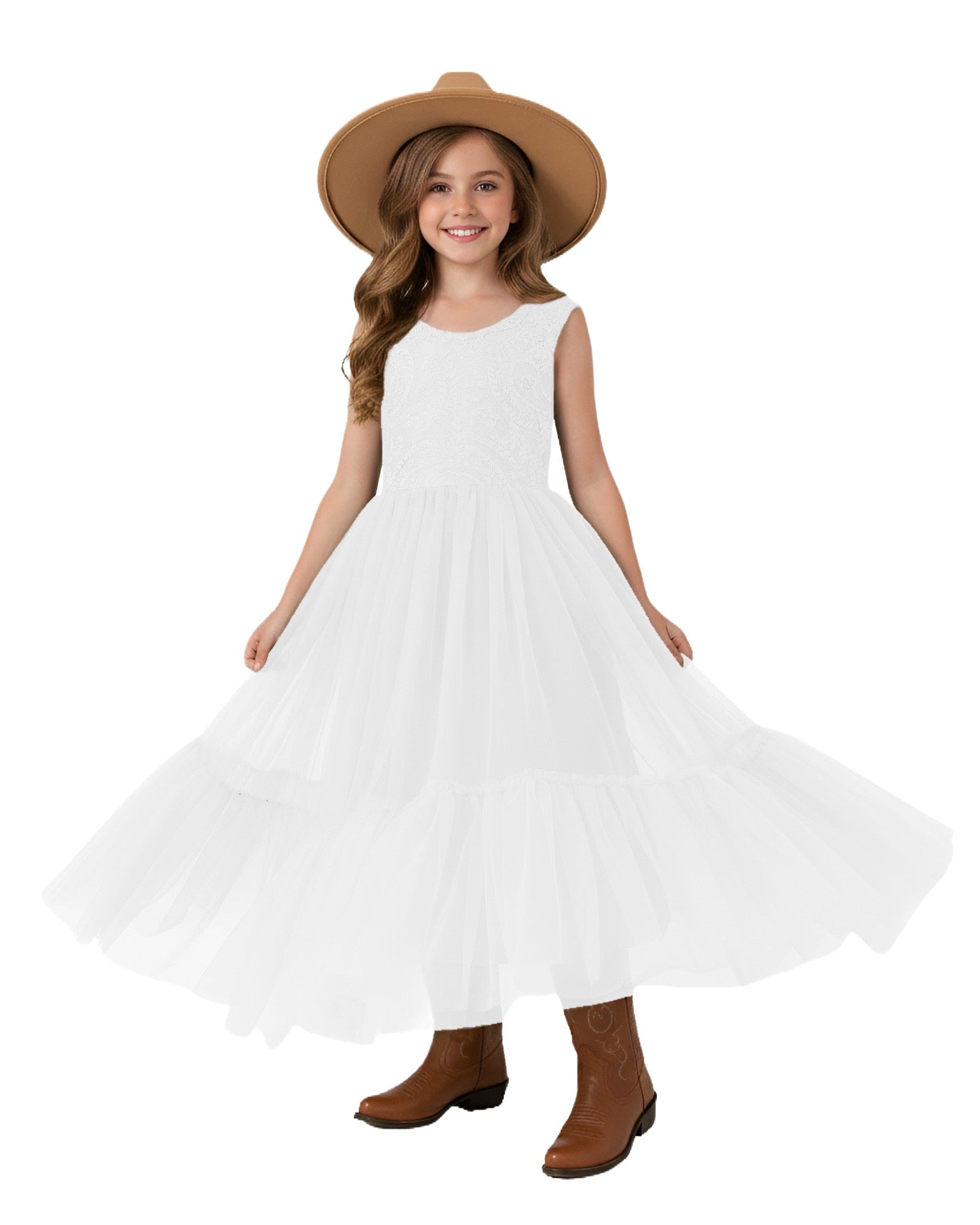 2Bunnies Girls' 1-12Y Paisley Lace Tulle Sleeveless Ruffled Maxi Dress