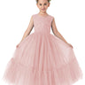 Girls' Paisley Lace Tulle Sleeveless Ruffled Maxi Dress in Dusty Pink