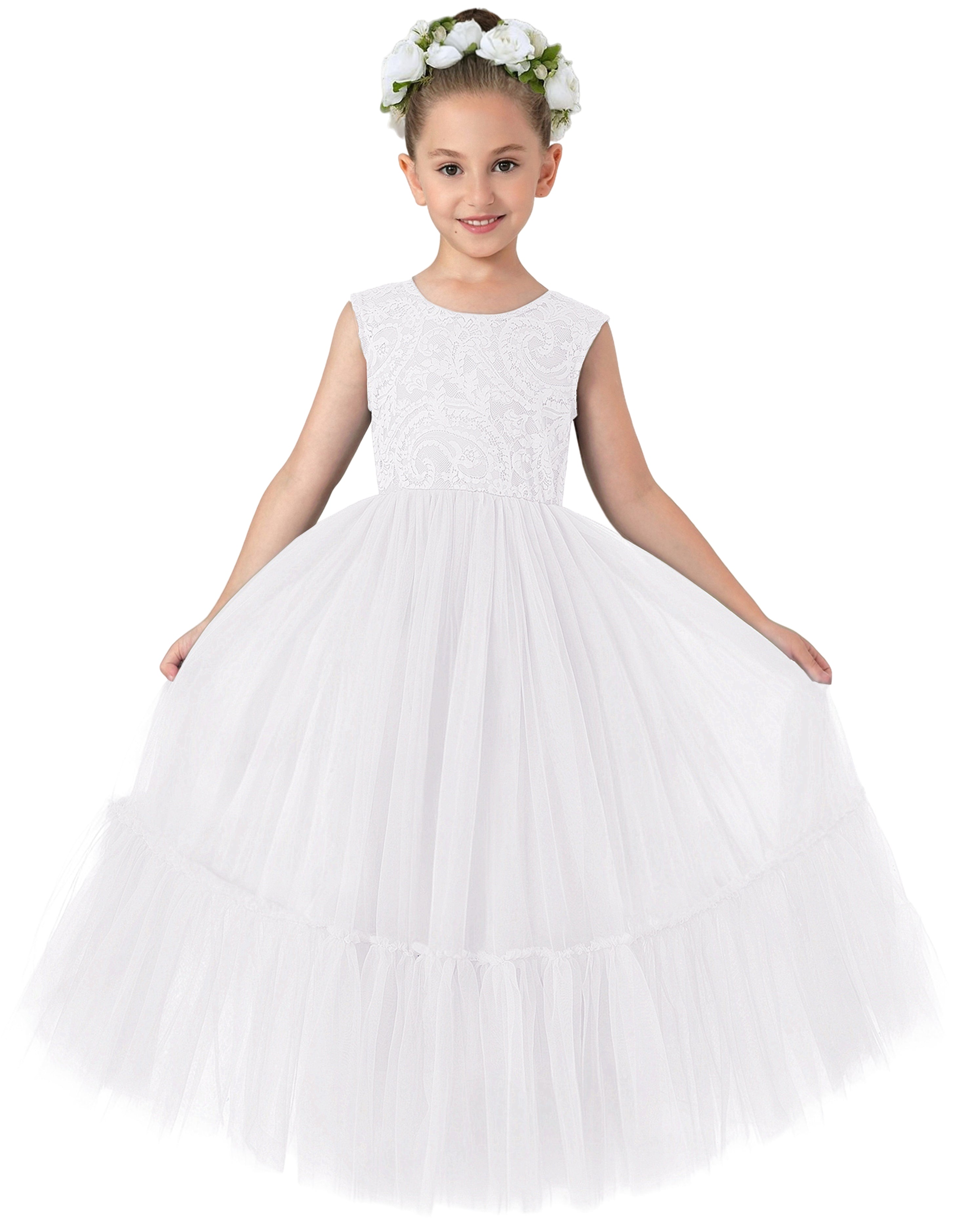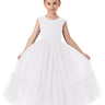 Girls' Paisley Lace Sleeveless Tulle Ruffled Maxi Dress in White