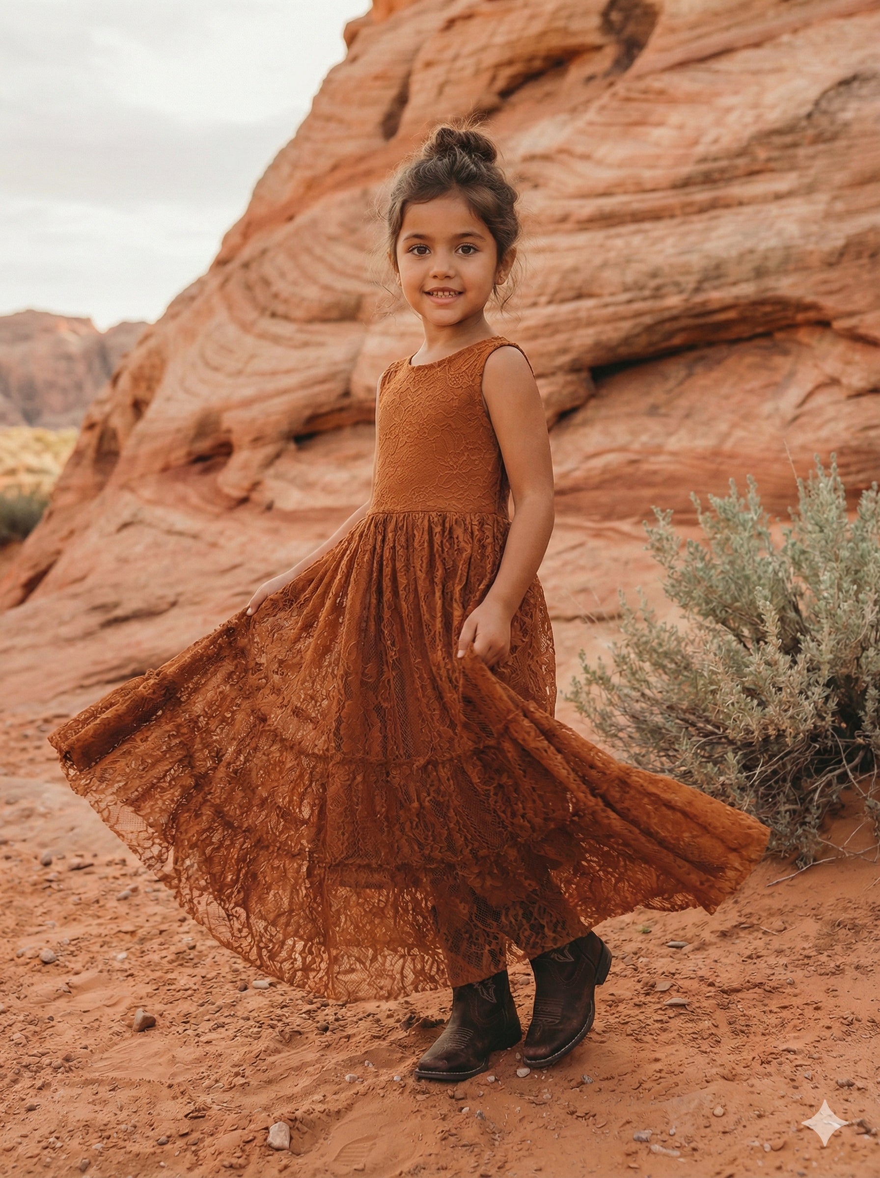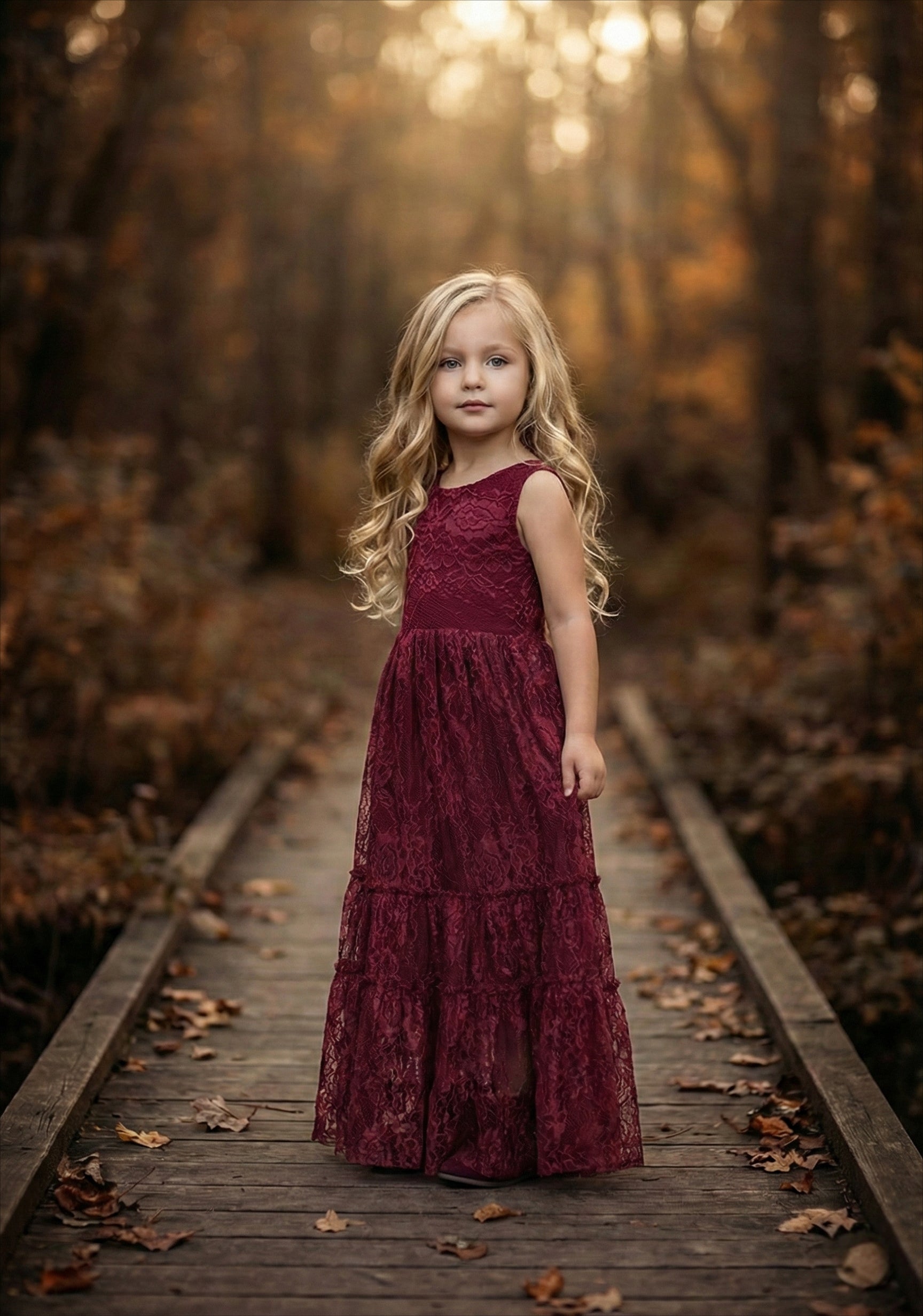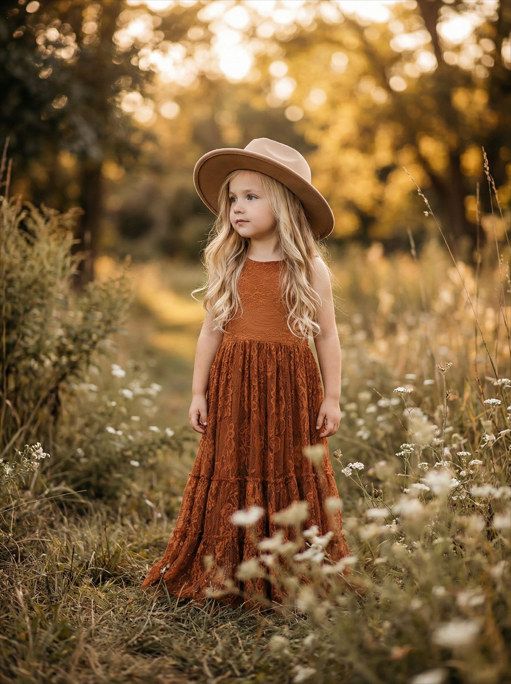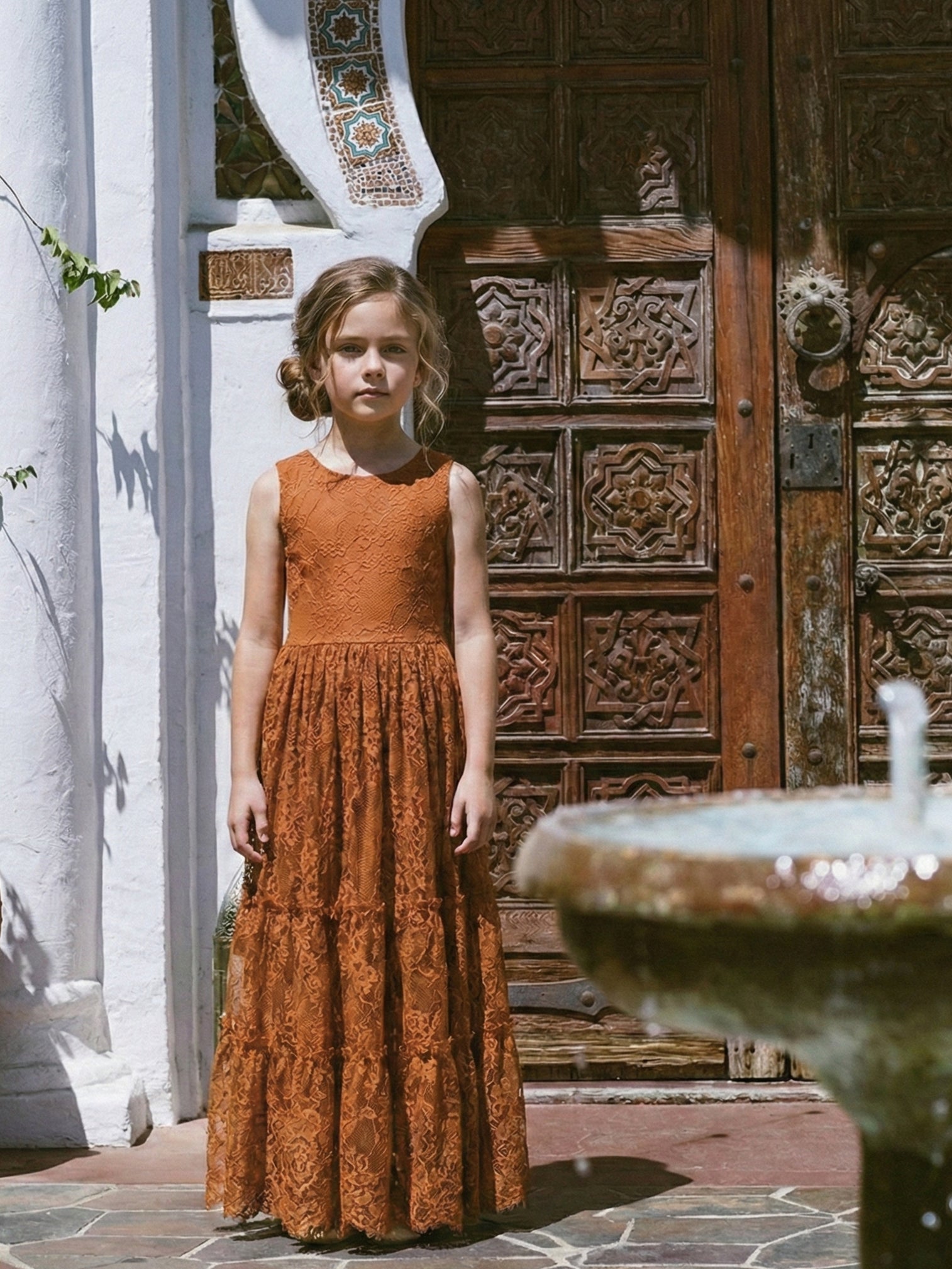 2Bunnies Girls' 3T-10yr Rose Lace All-Over Lace Zip Back Boho Garden Rustic Flower Girl Dress