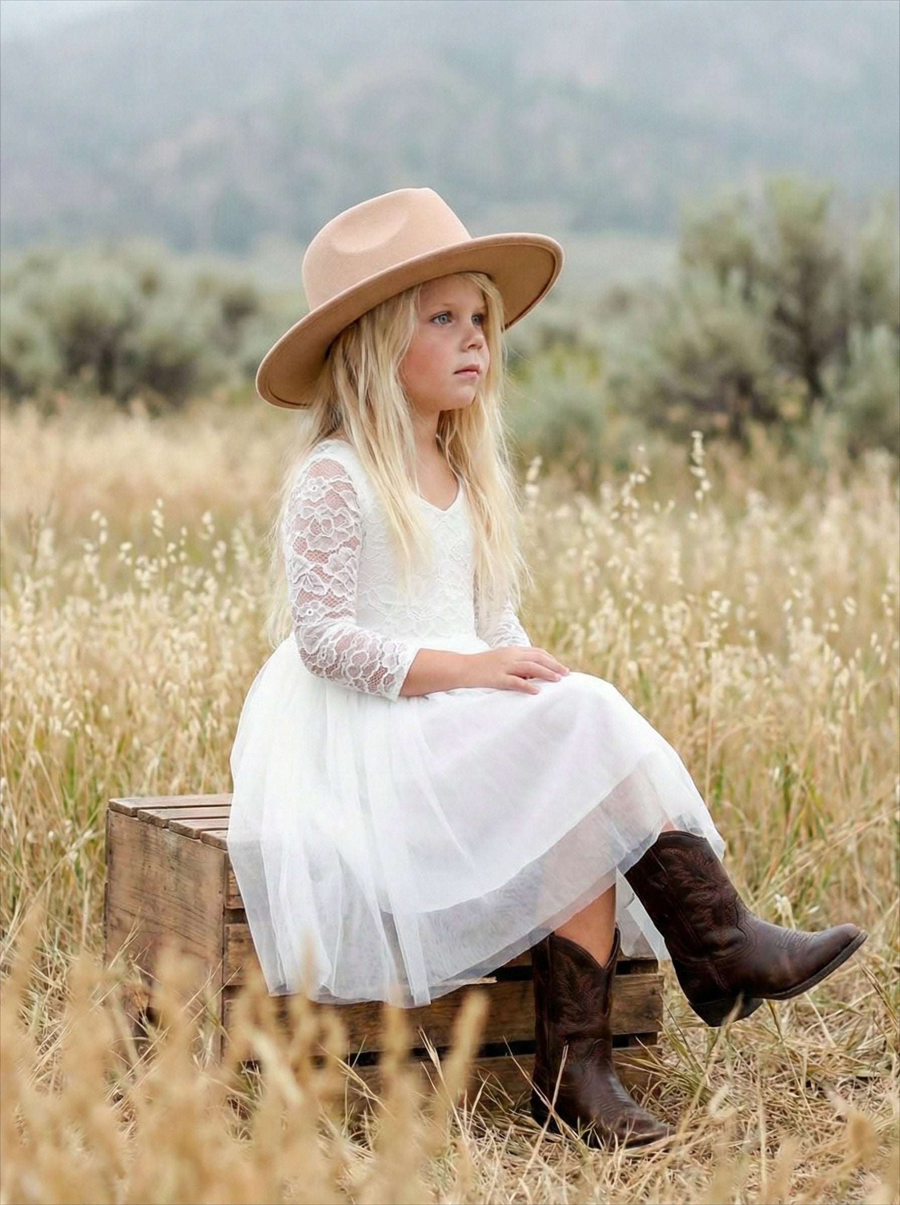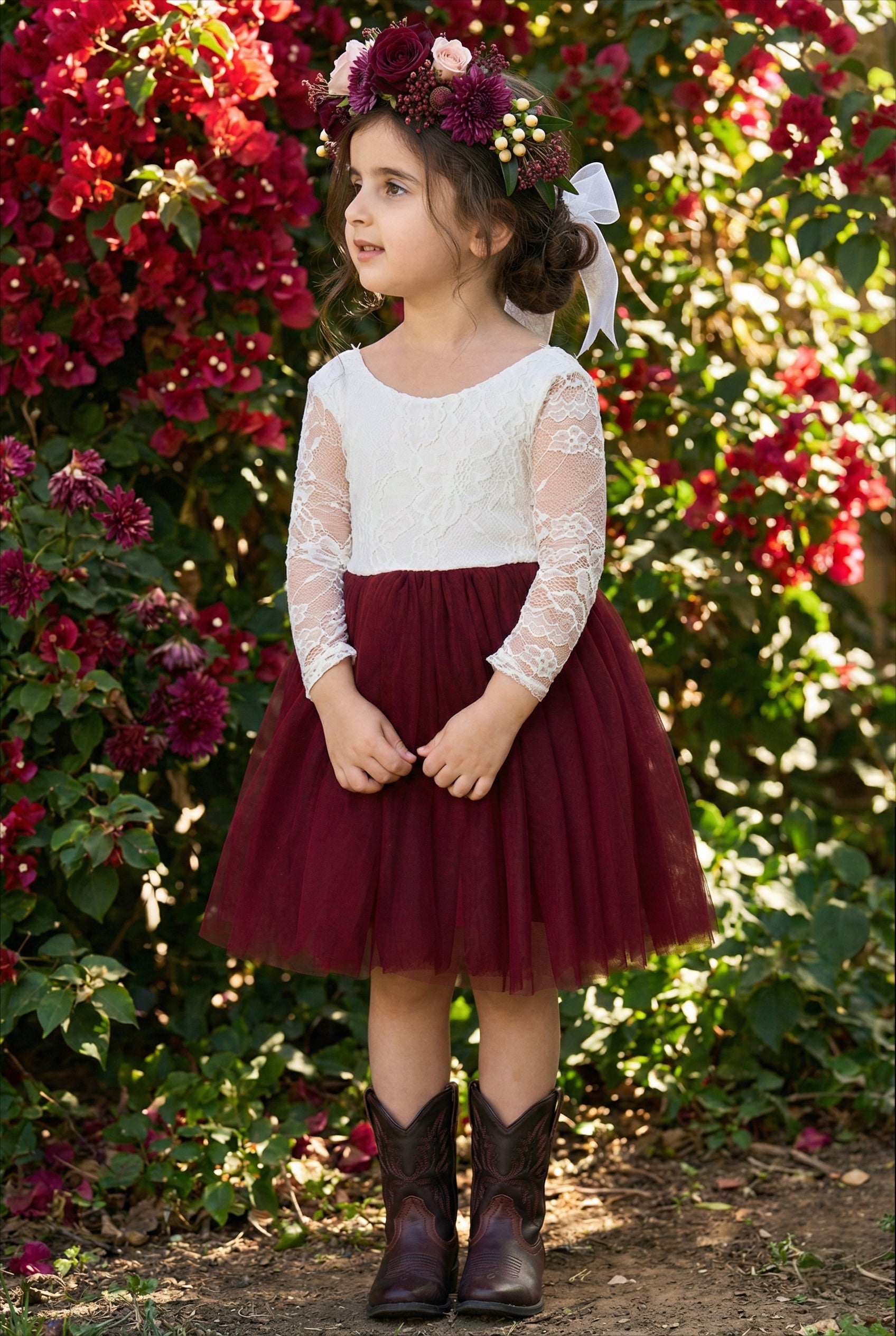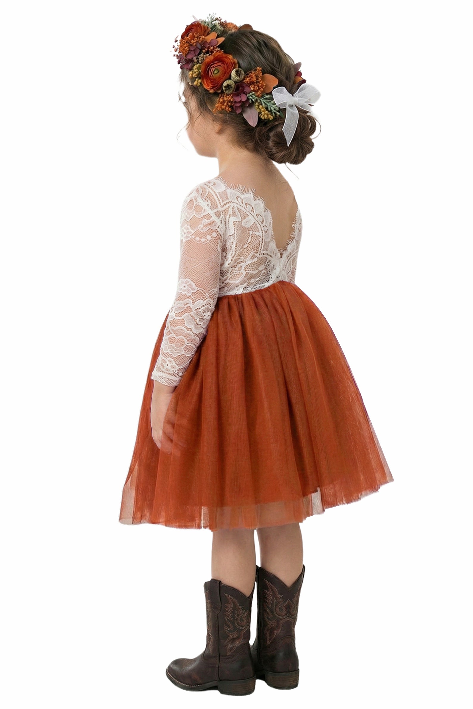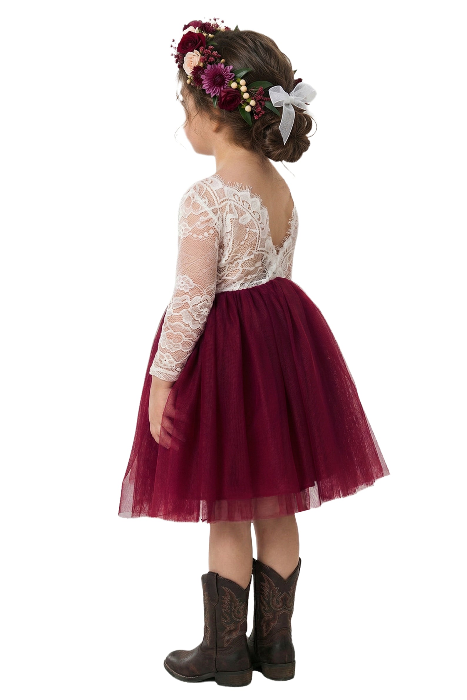 2Bunnies Girls' 12M-12yr Rose Lace Tulle Sleeve Flower Girl Dress Knee