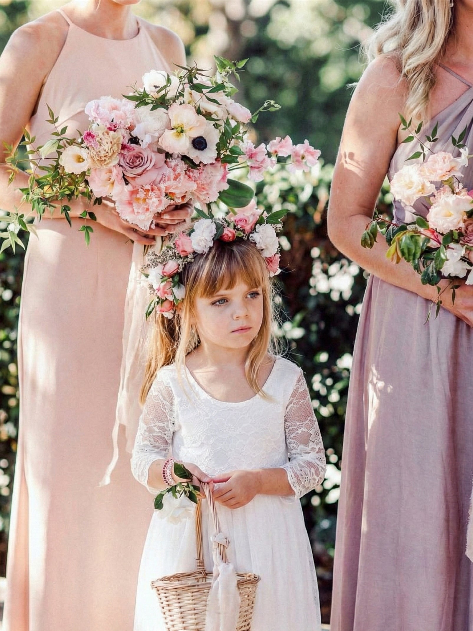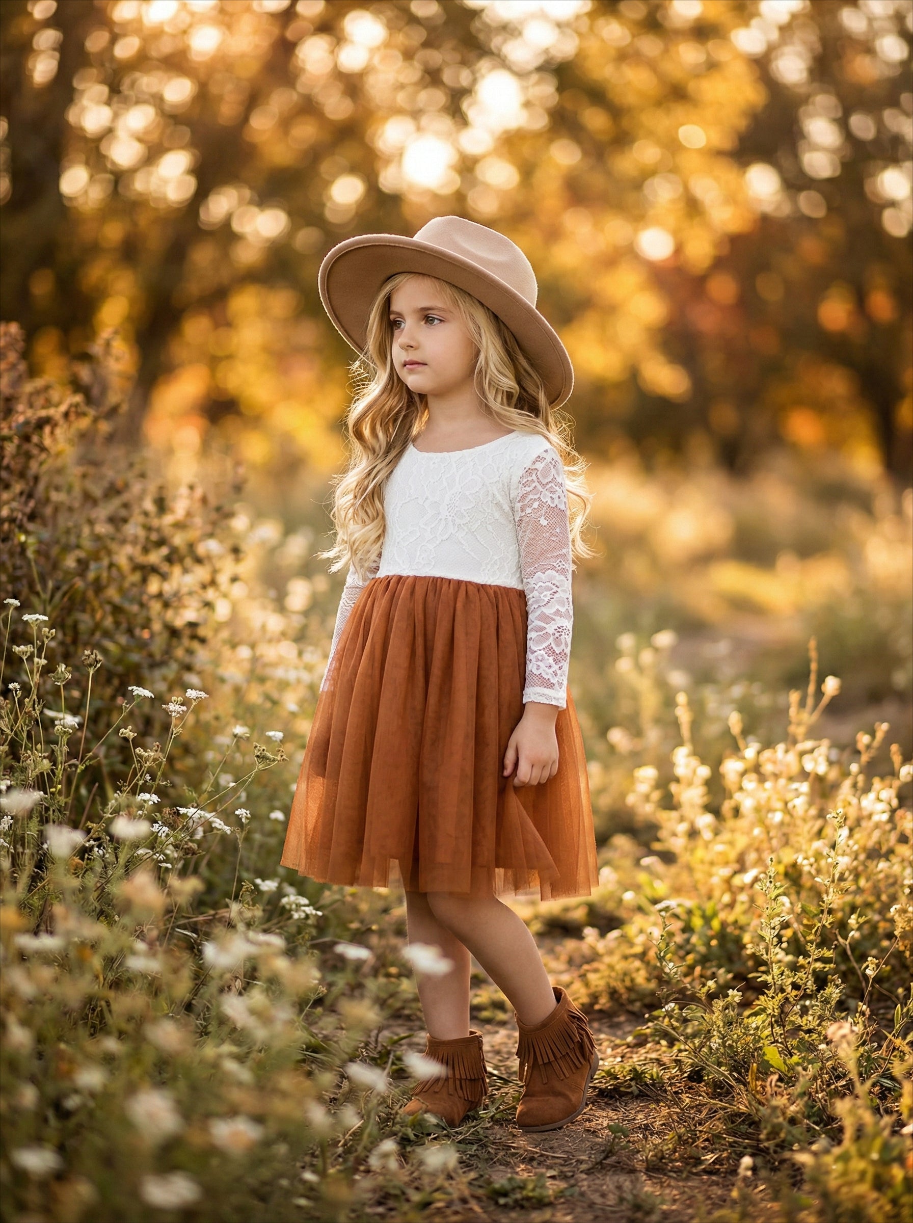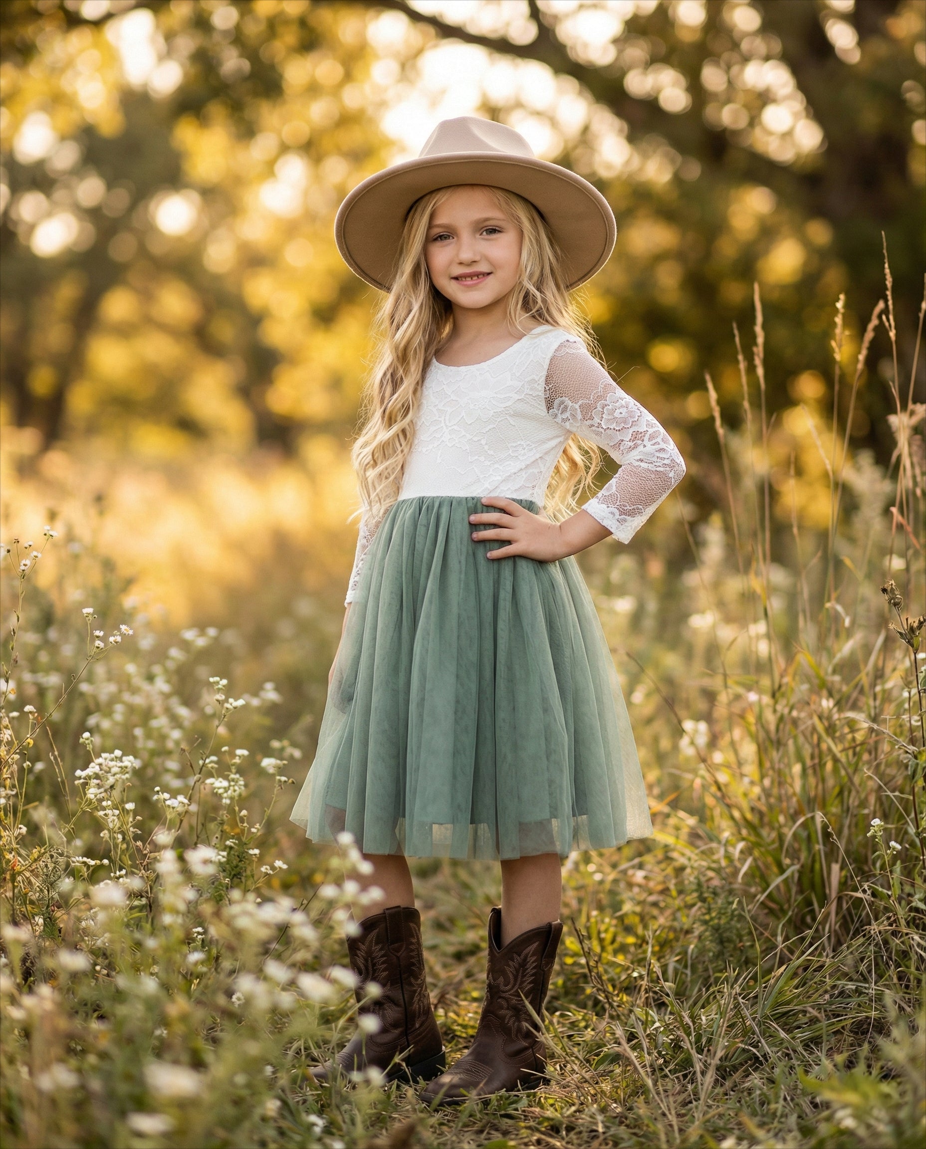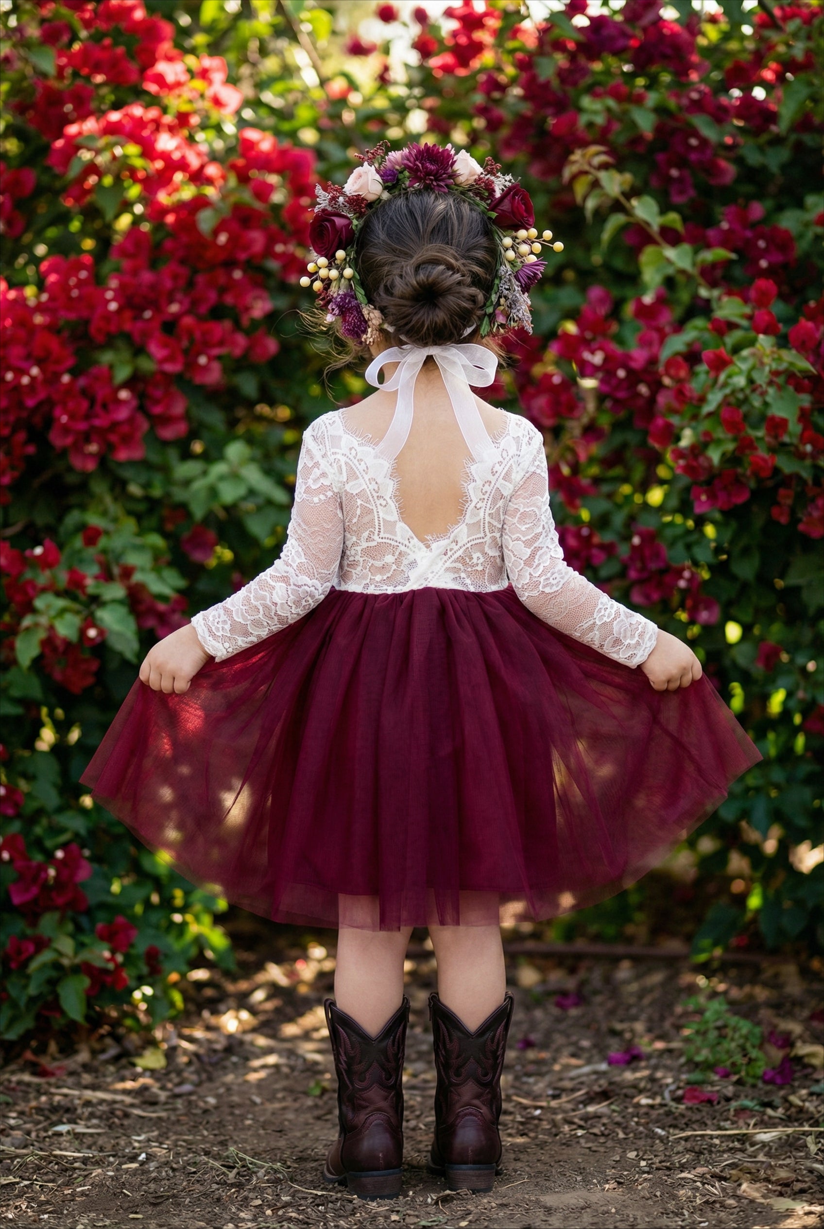2Bunnies Girls' 12M-12yr Rose Lace Tulle Sleeve Flower Girl Dress Knee