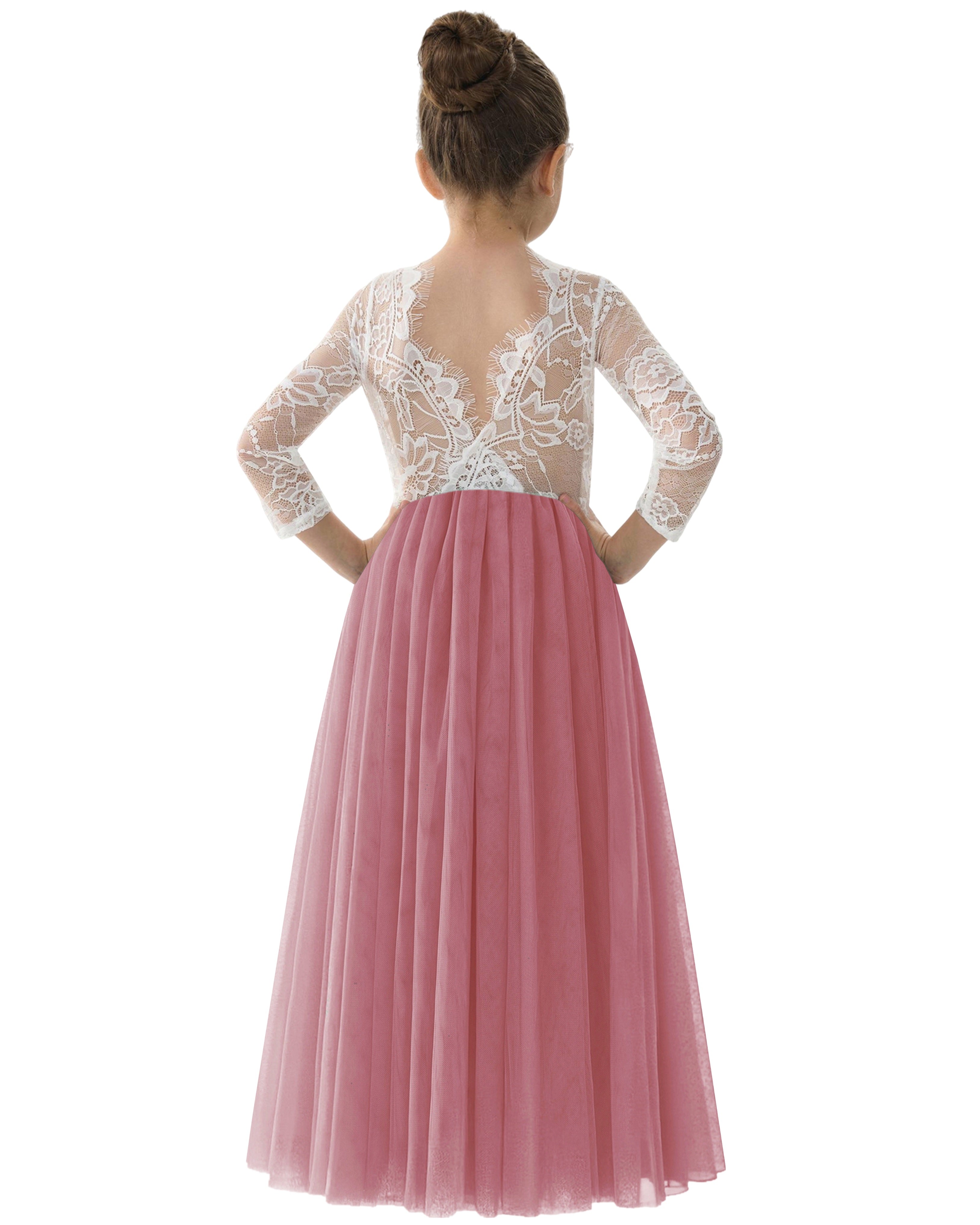 Rose Lace Flower Girl Dress in Dusty Pink