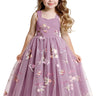 Girls' Floral Embroidered Tulle Strap Sleeveless Maxi Dress in Mauve