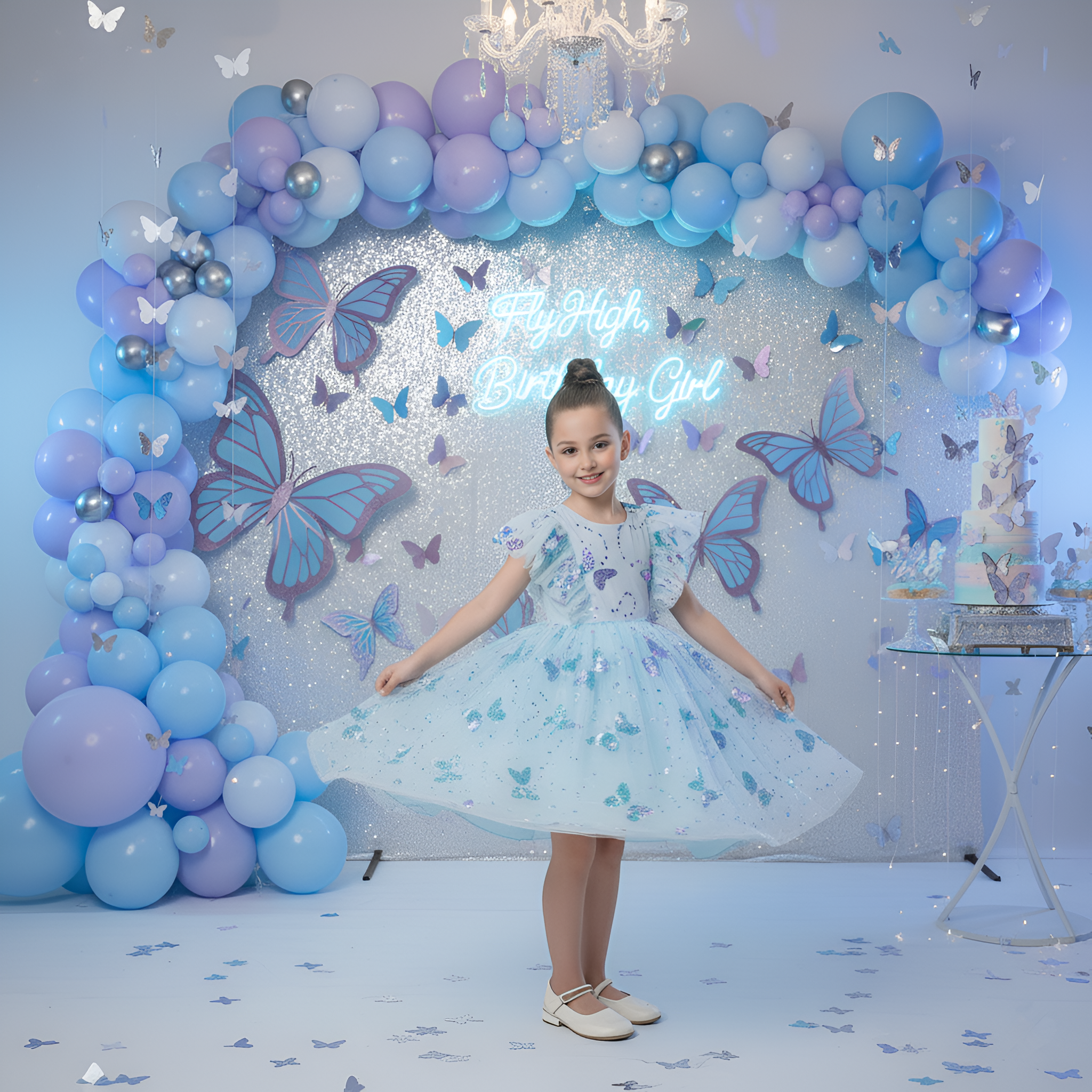 2Bunnies Girls Sparkly Sequin Butterfly Embellishment Tulle Birthday Party Dress