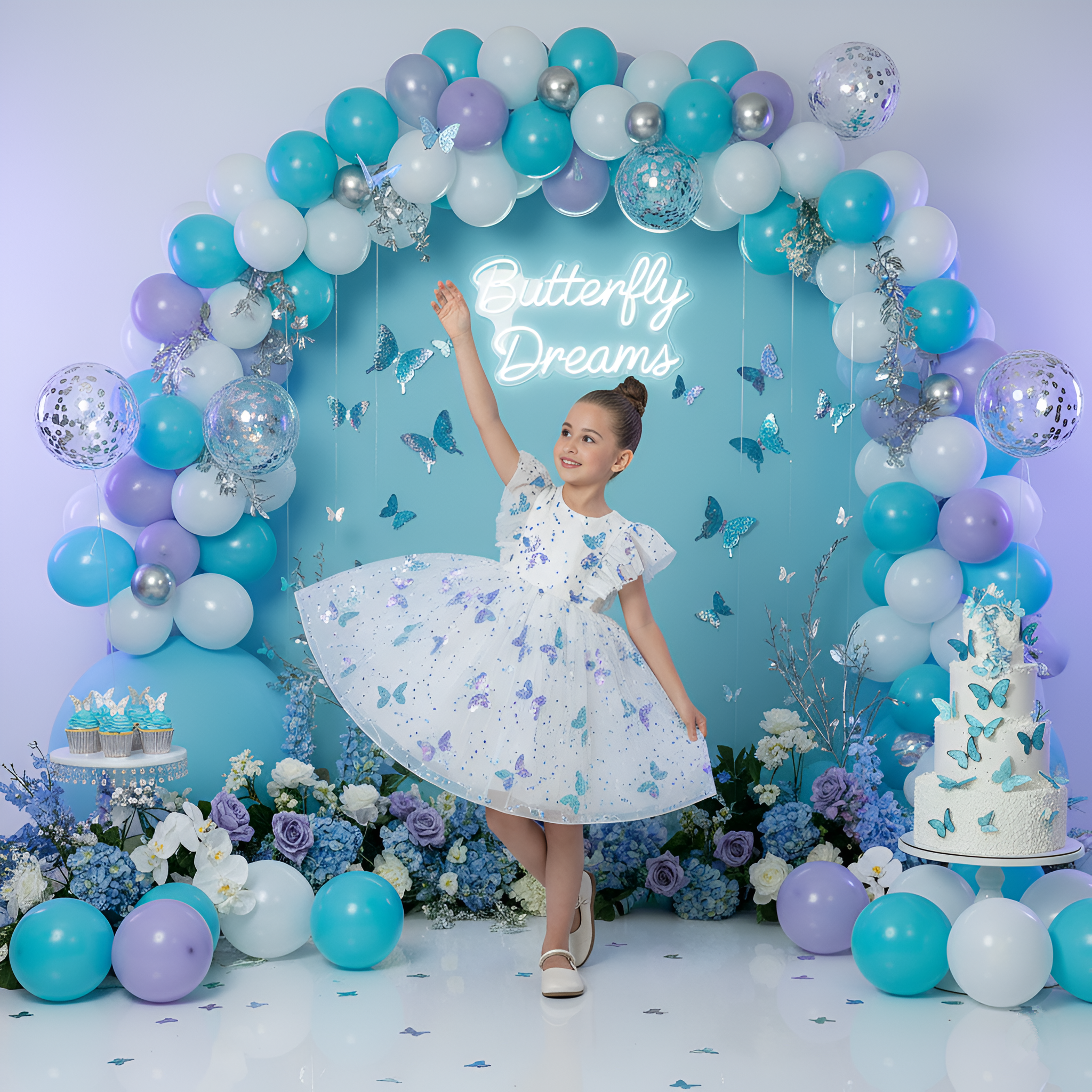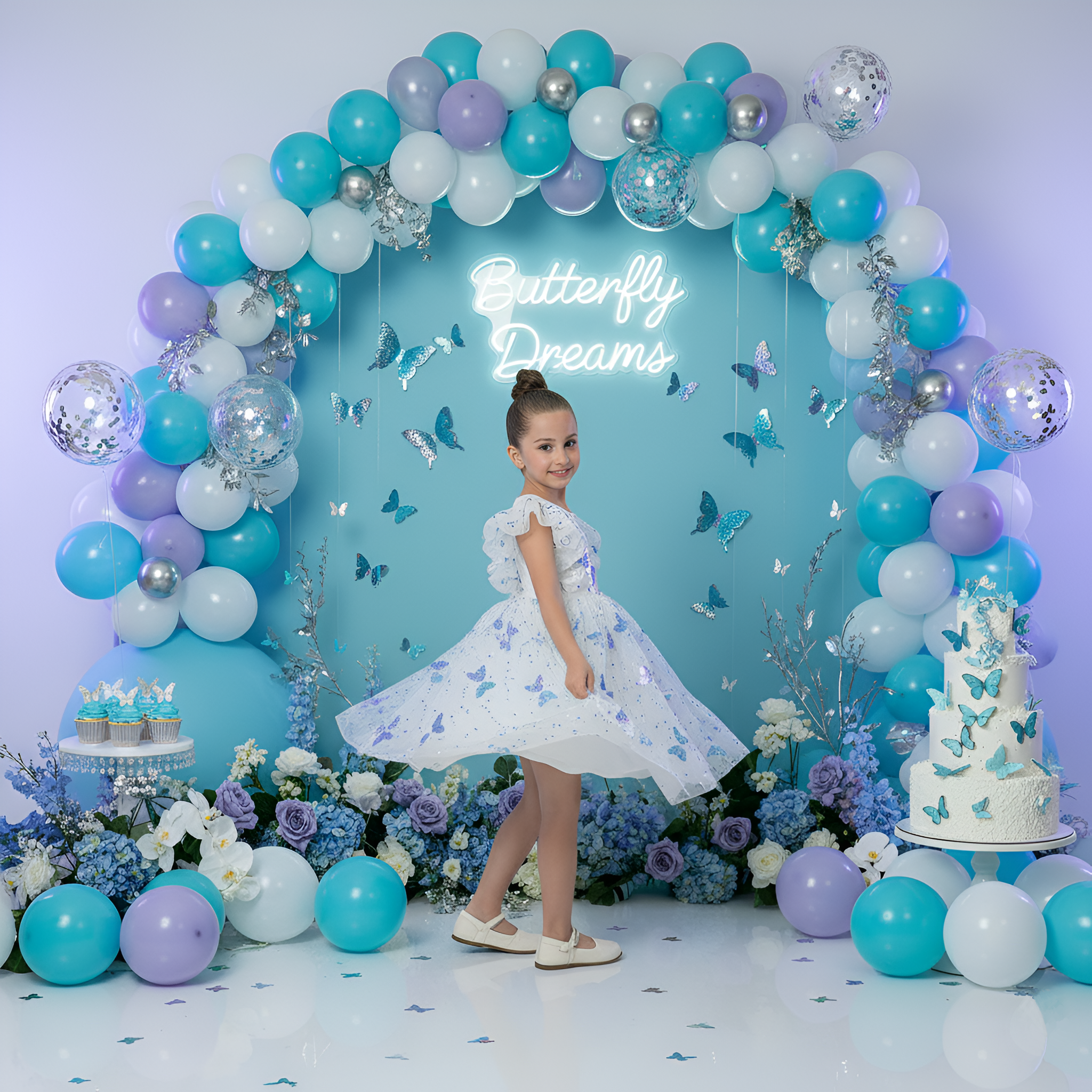 2Bunnies Girls Sparkly Sequin Butterfly Embellishment Tulle Birthday Party Dress