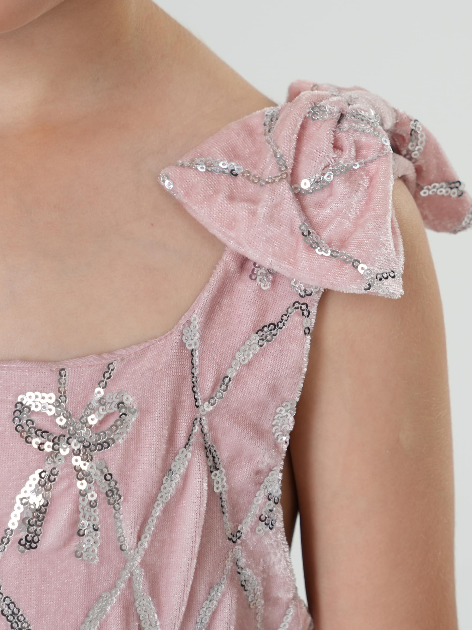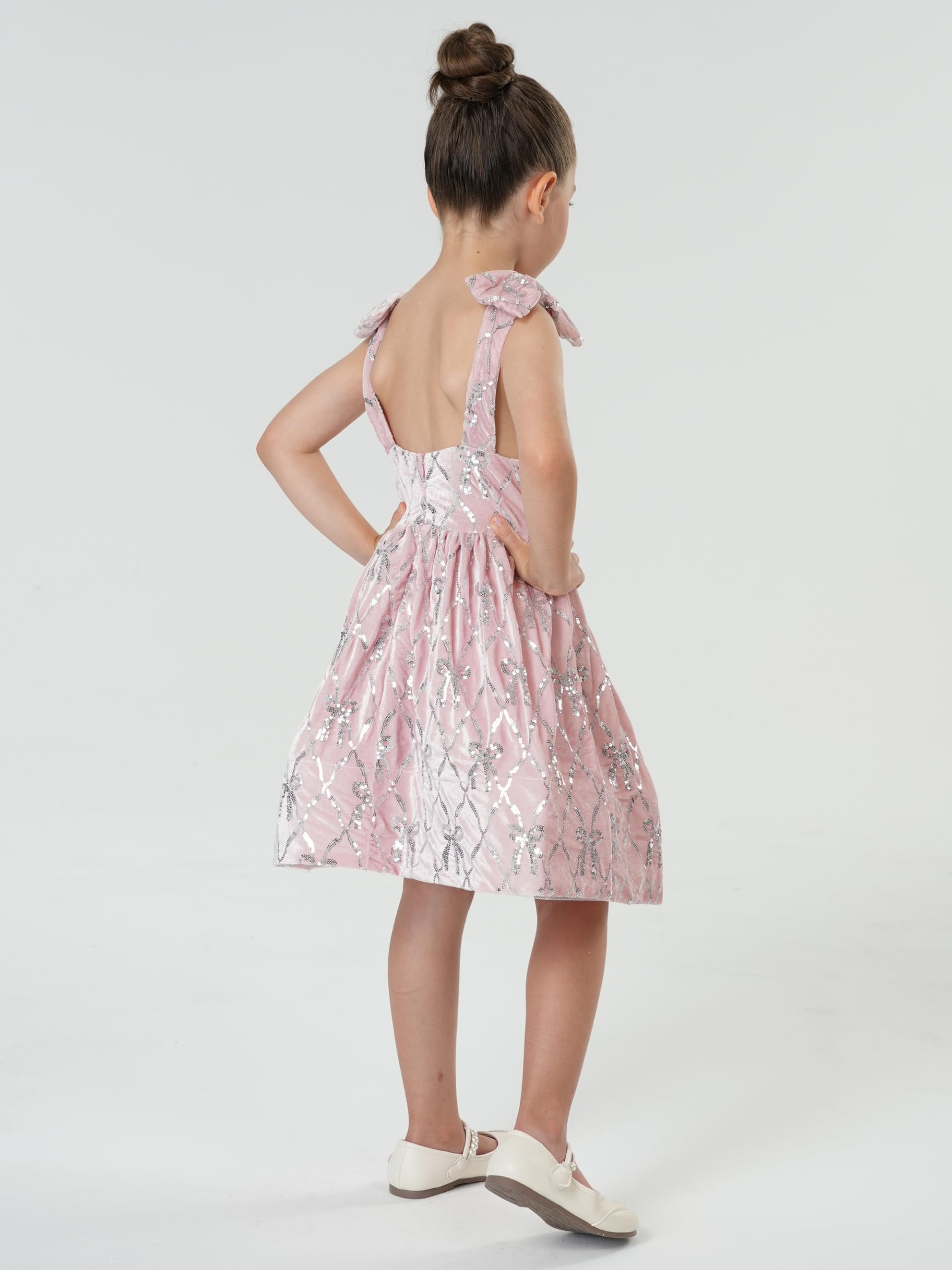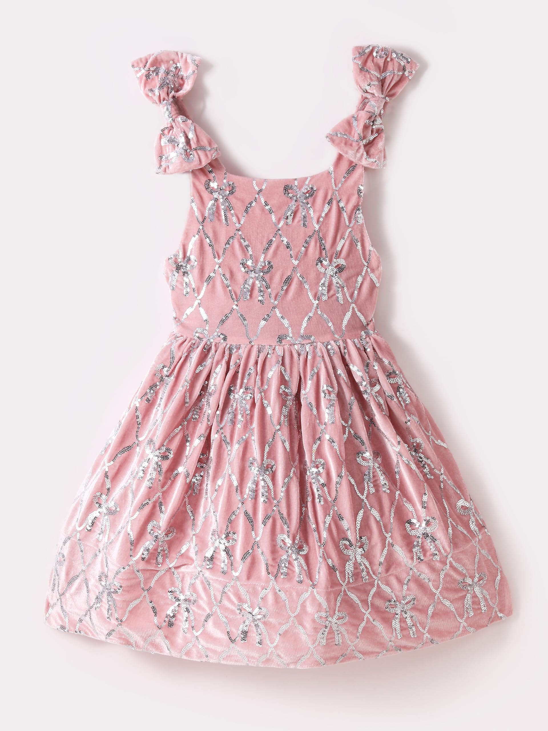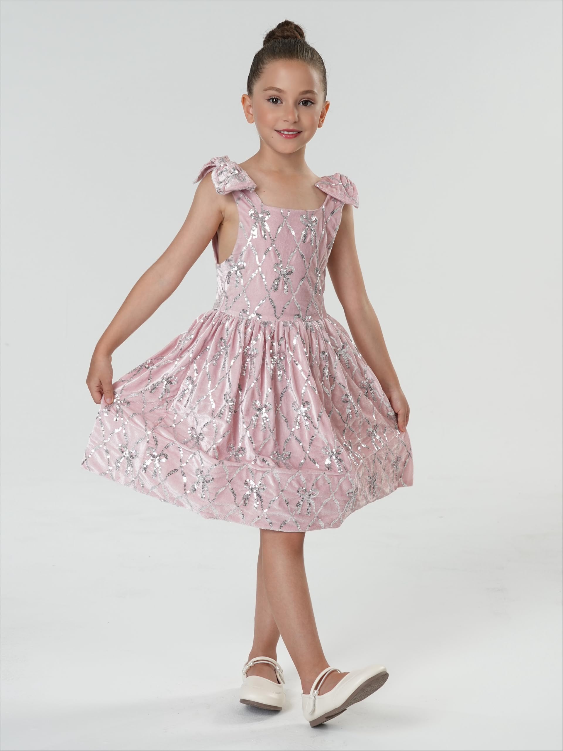 2Bunnies Girls' Christmas New Year Holiday Party Velvet Sequin Bow Dress