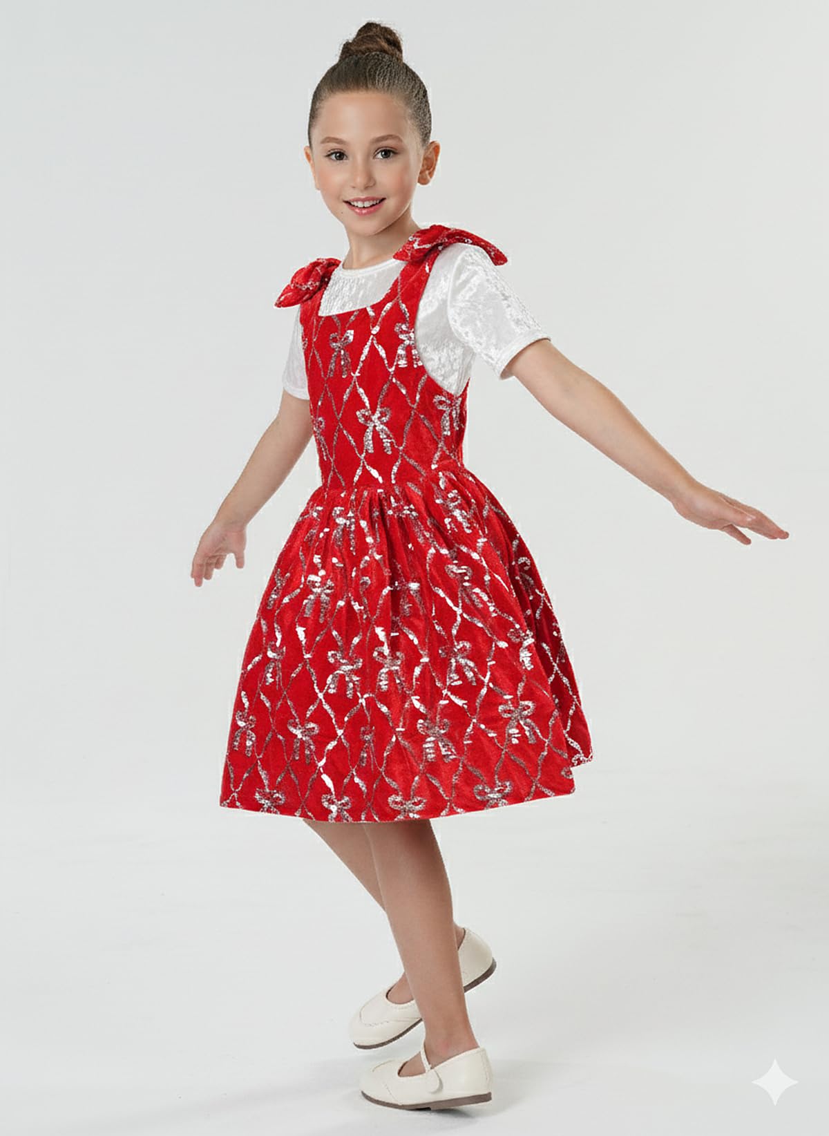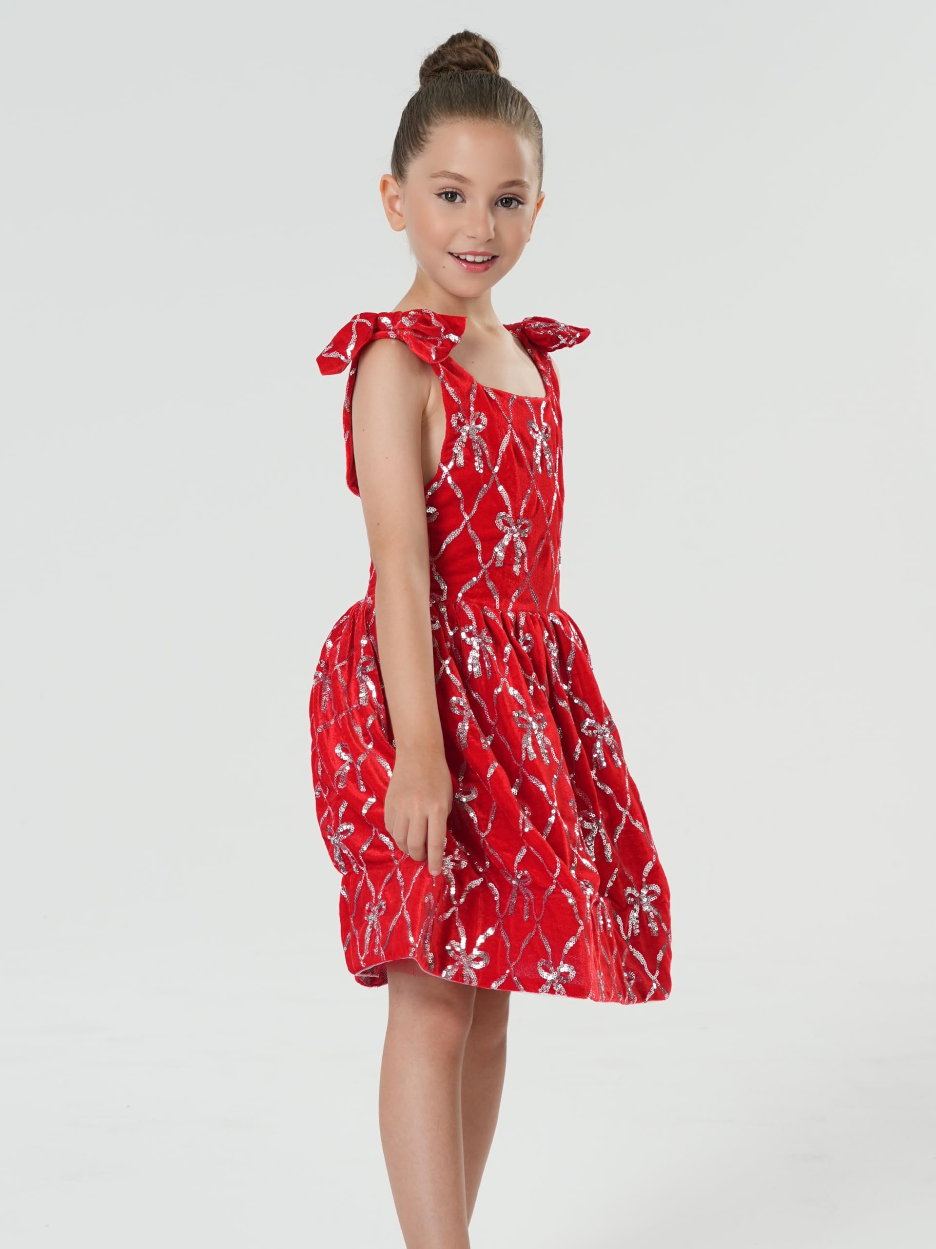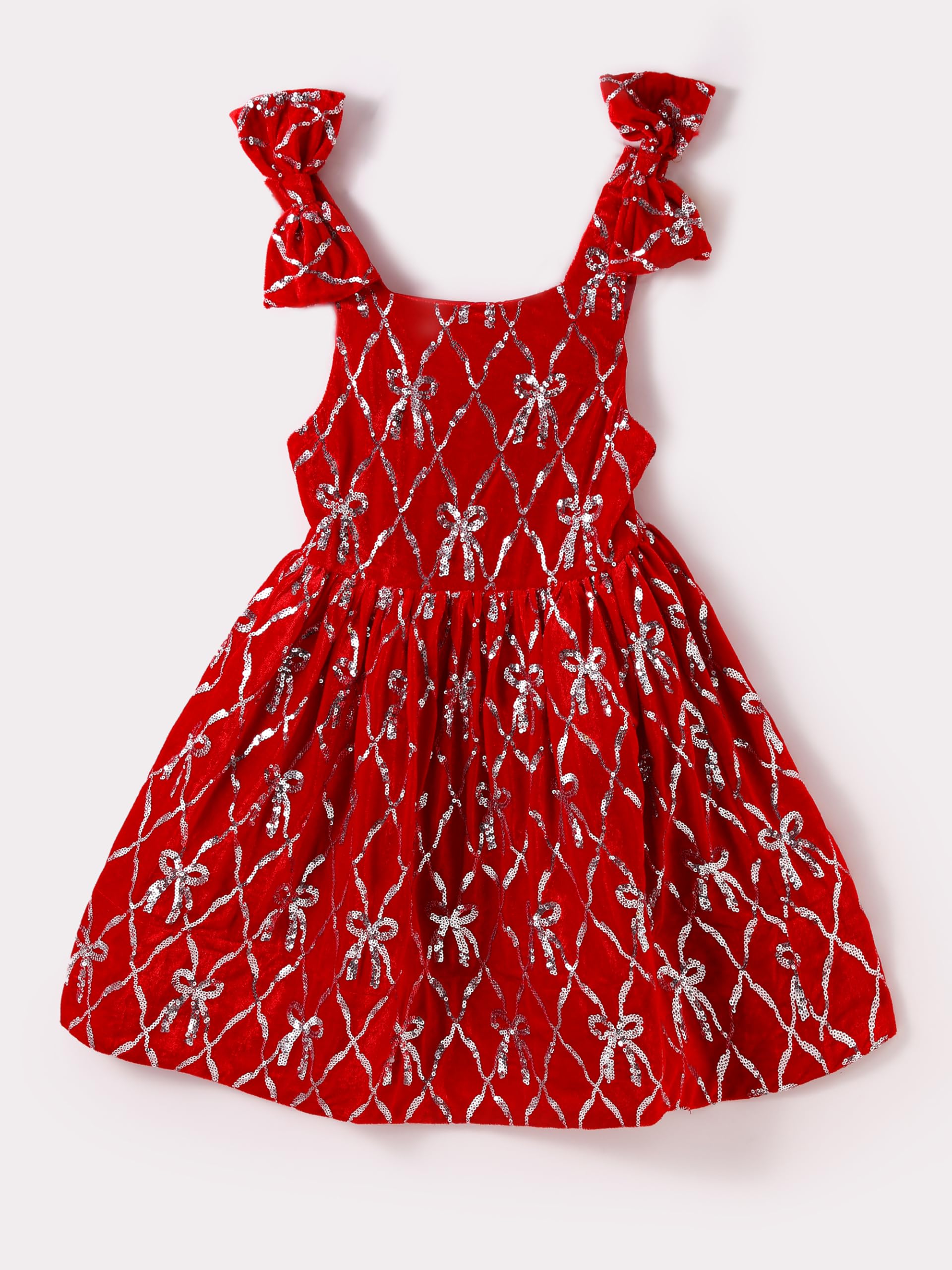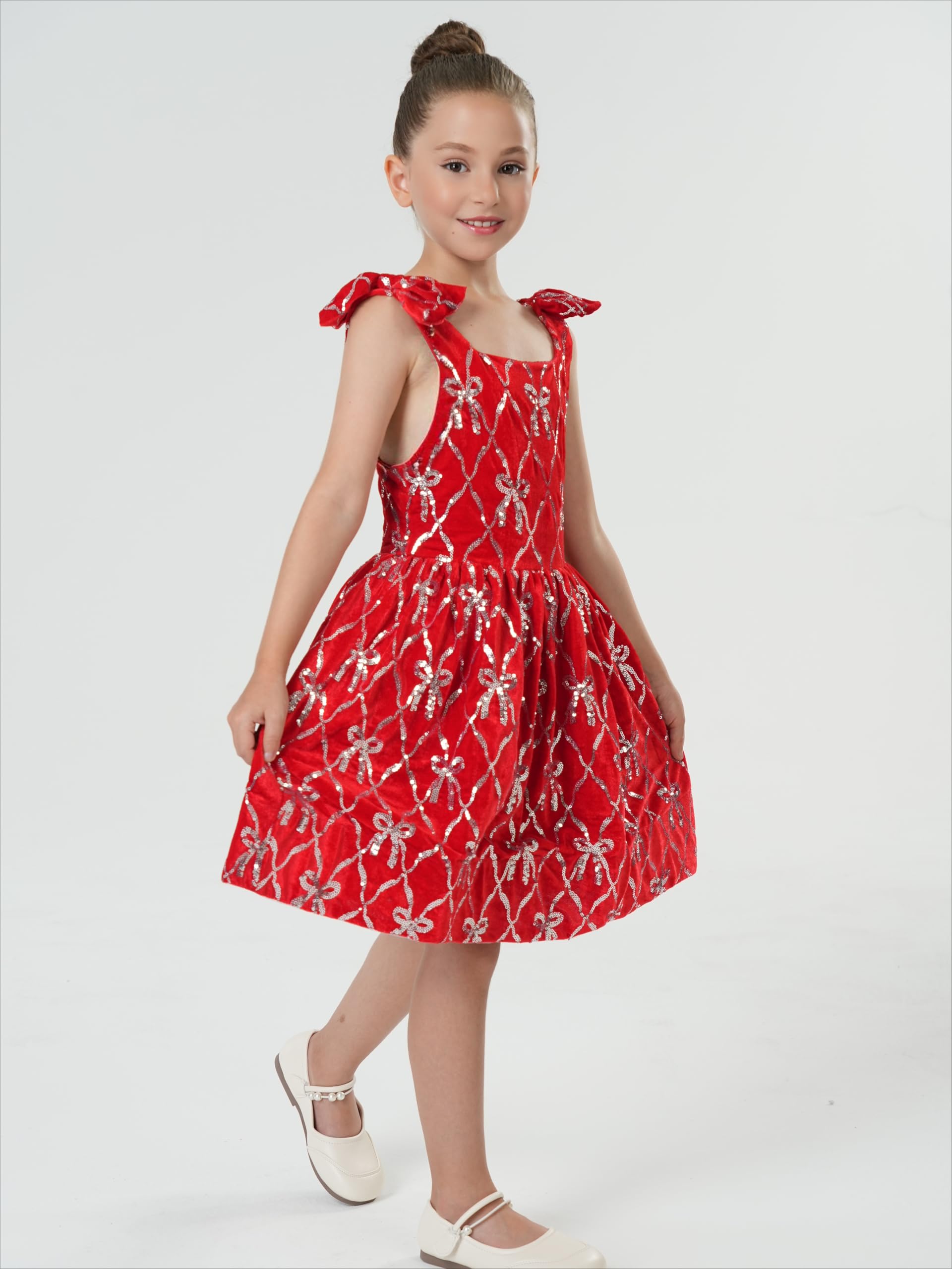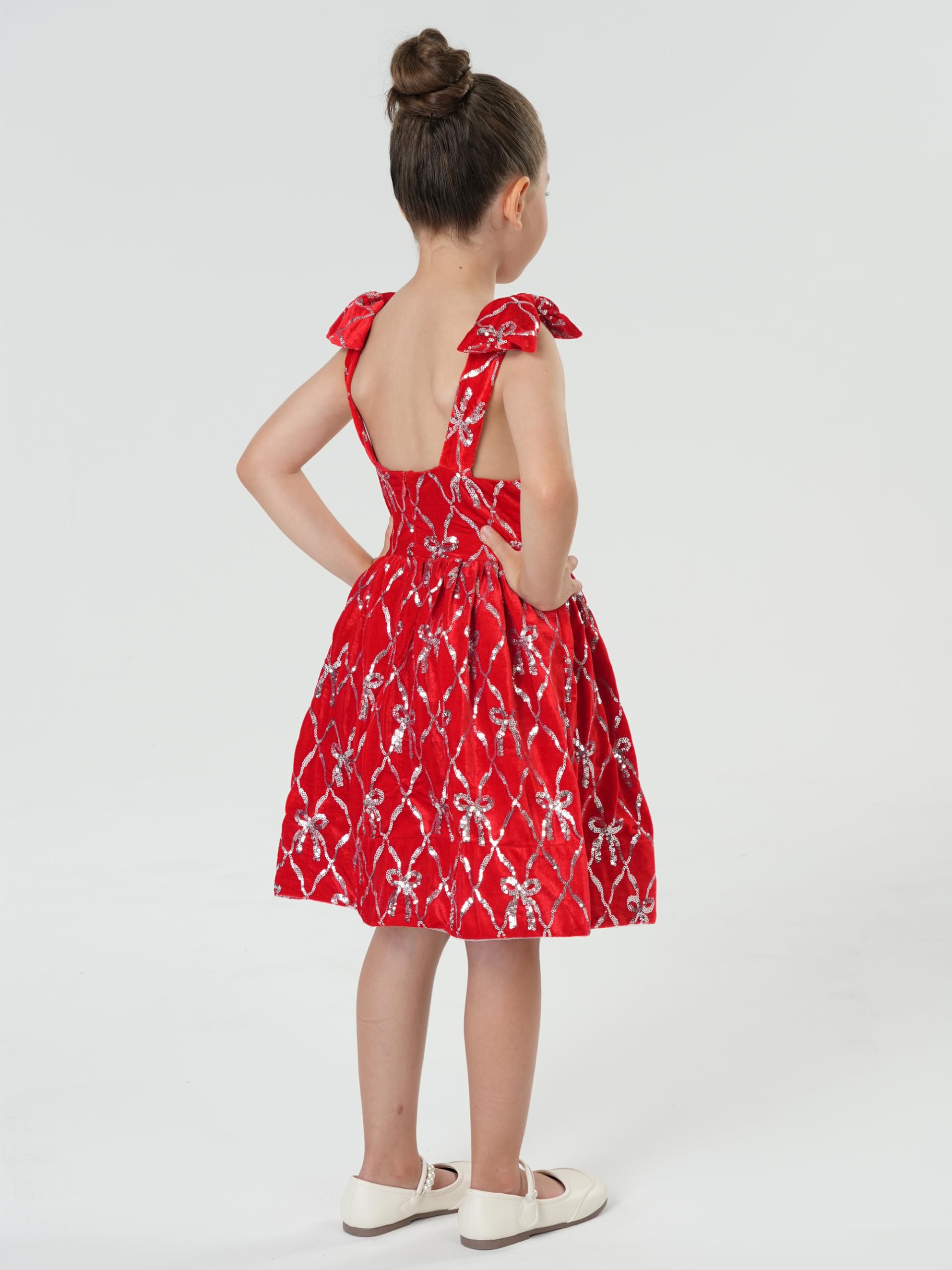 2Bunnies Girls' Christmas New Year Holiday Party Velvet Sequin Bow Dress