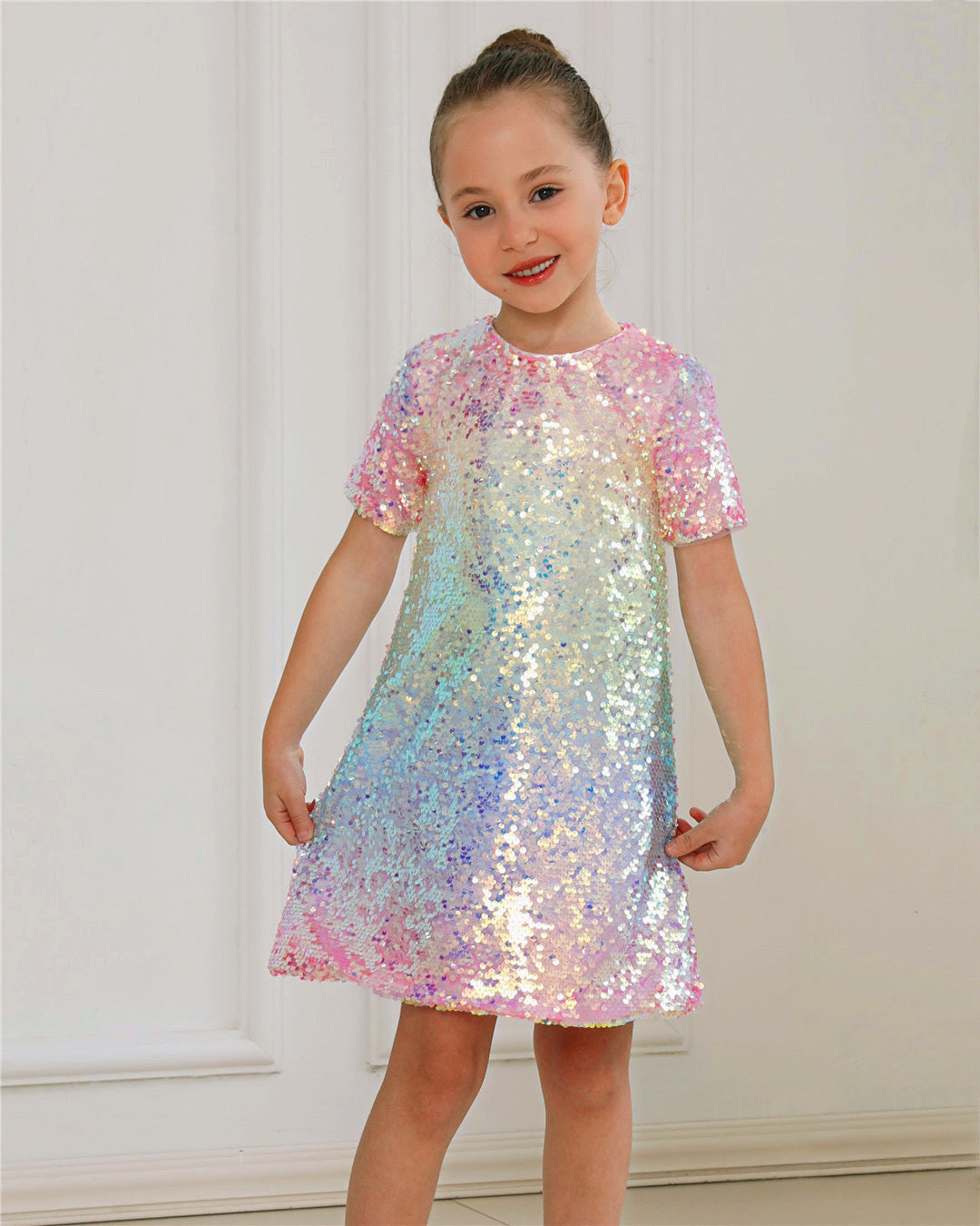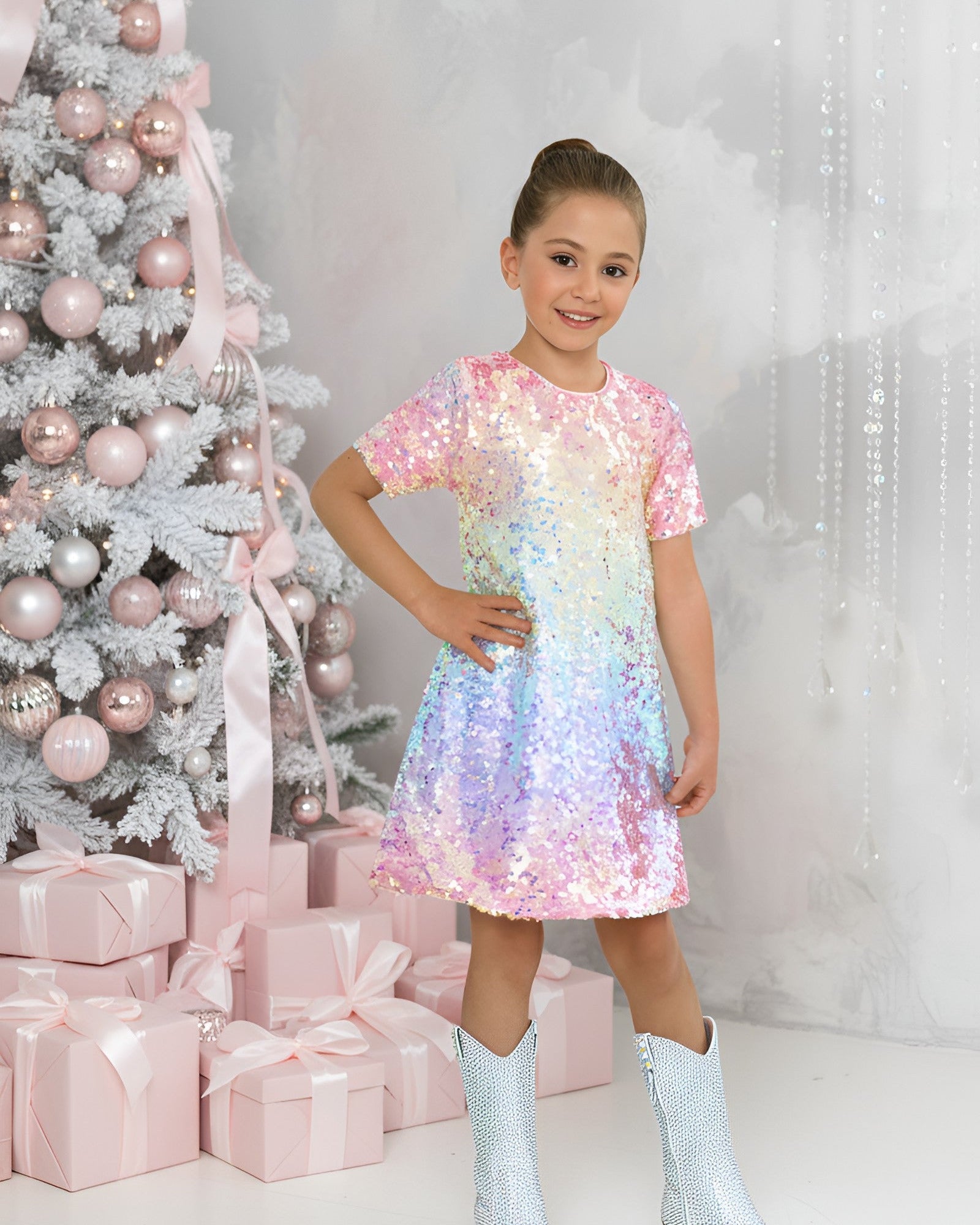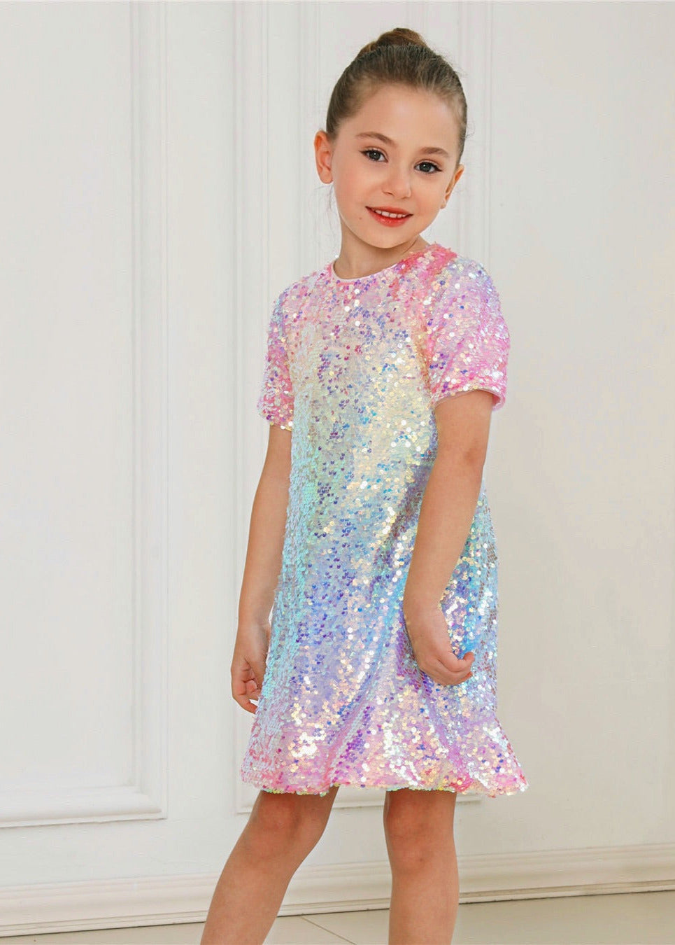 2Bunnies Girls' Ombre Sequin Short Sleeve Dress