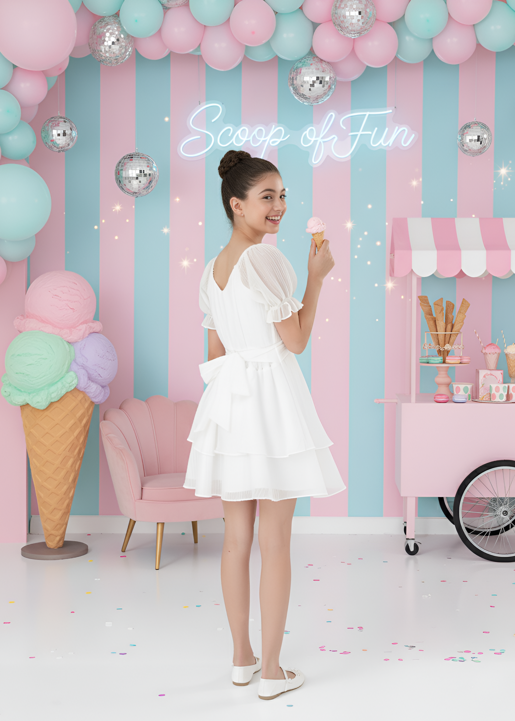 2Bunnies Girls Tween Teen Ruffle Puff Sleeve Mini Dress