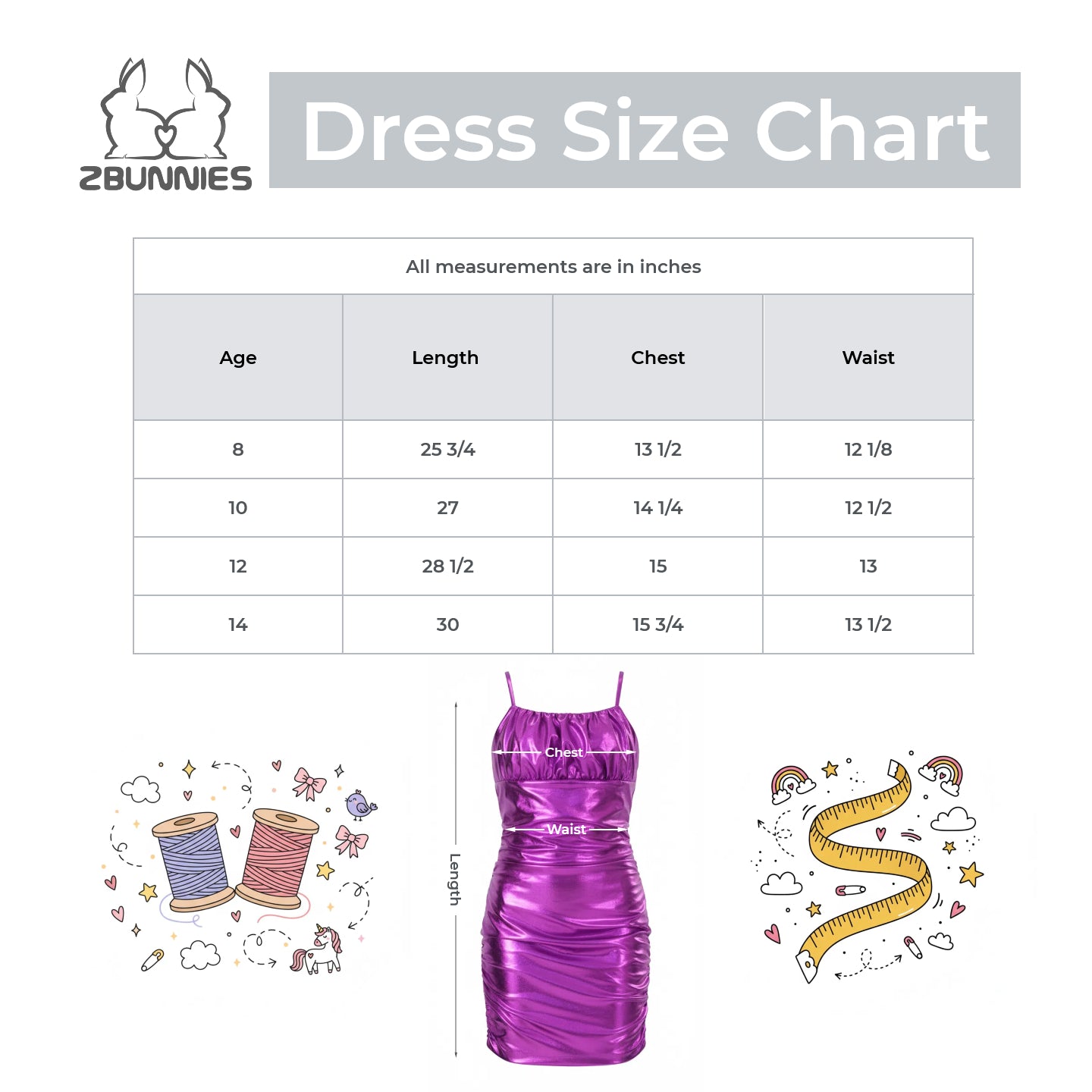 2Bunnies Girls' 8-14Y Tween Teen Bodycon Spaghetti Strap Party Dance Metallic Mini Dress