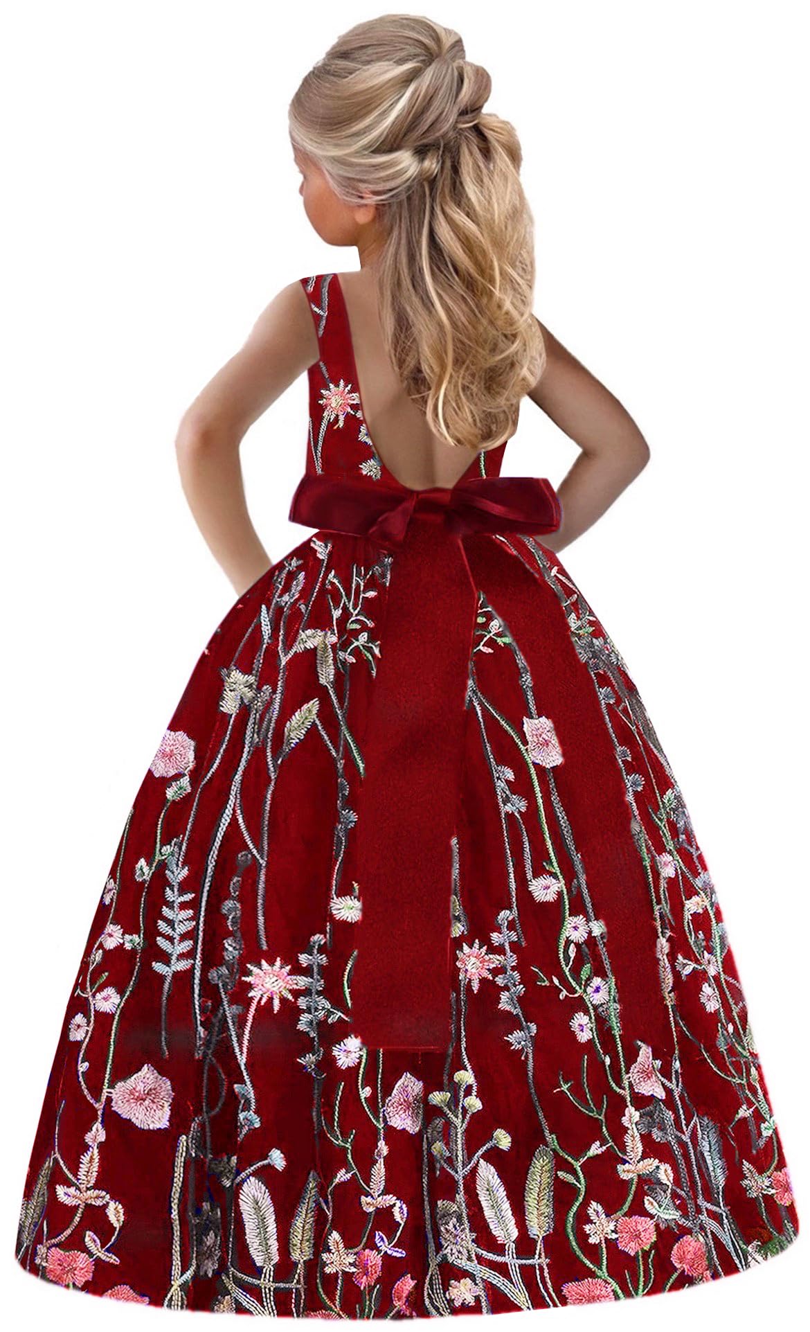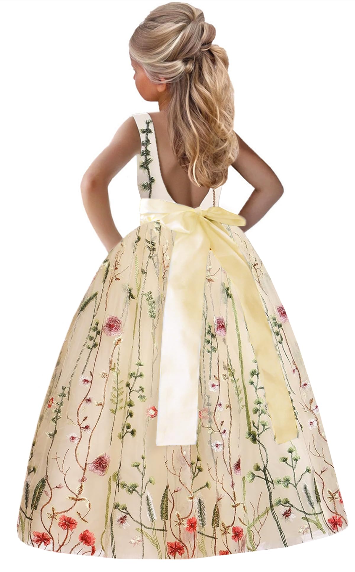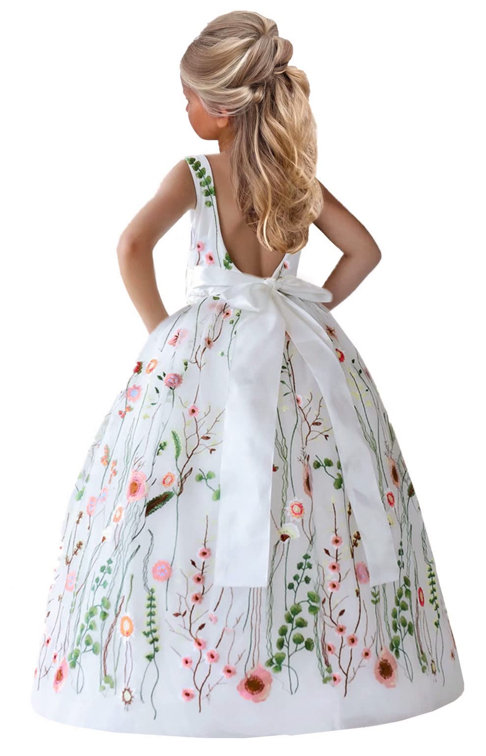 2Bunnies Girls 12M-12yr Garden Wildflower Floral Embroidered Tulle Satin Girl Dress