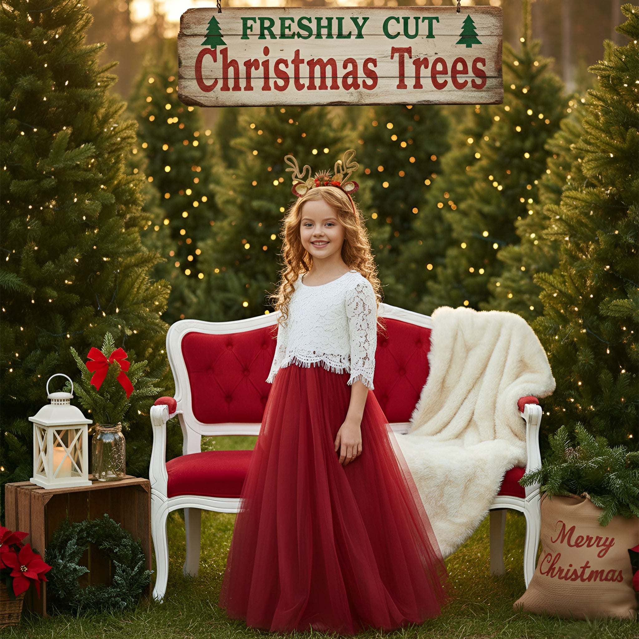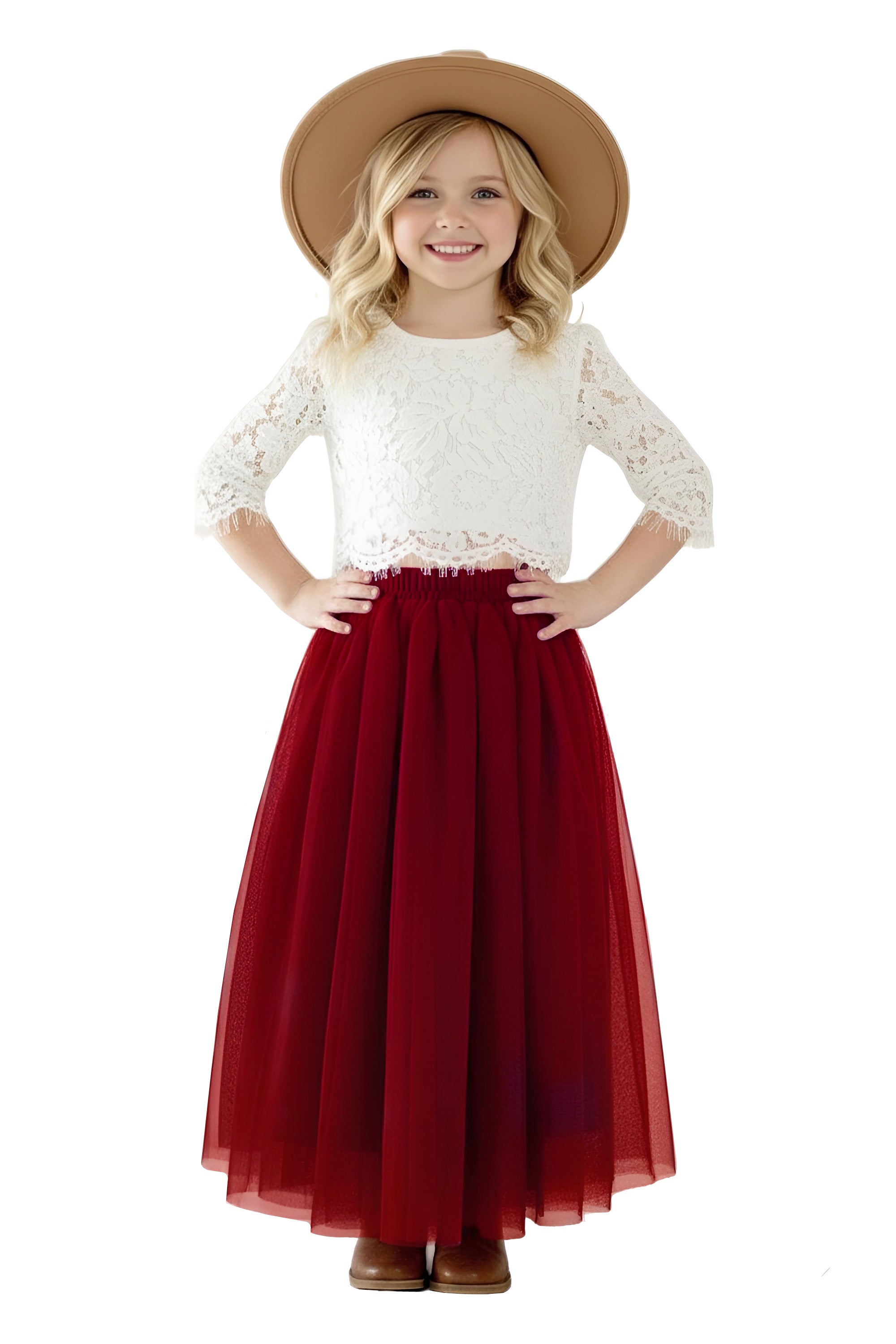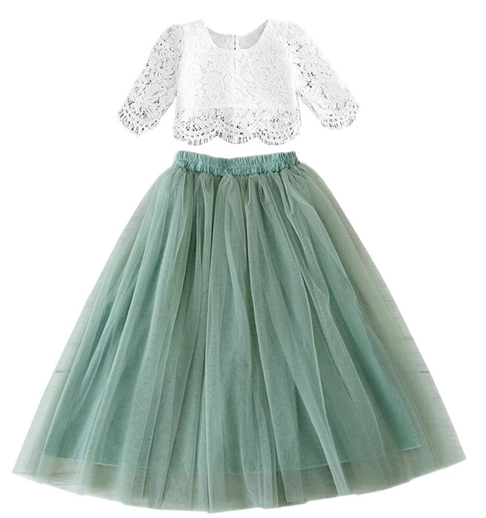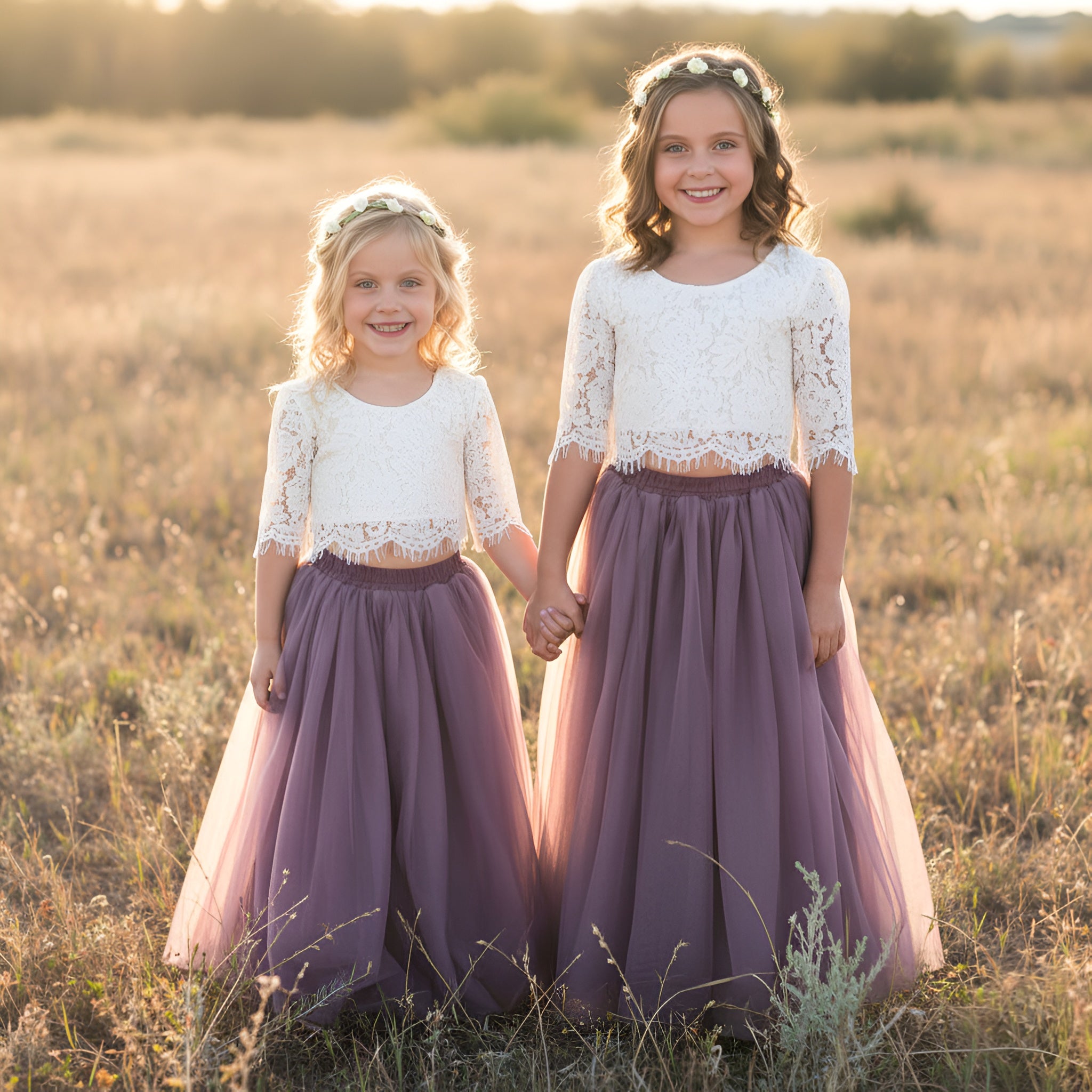 2Bunnies 2 Piece Lace Top Tulle Skirt Boho Rustic Flower Girl Dress Set