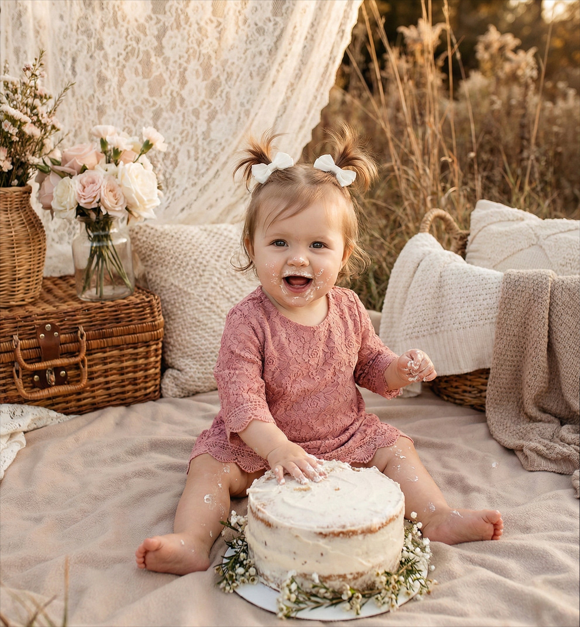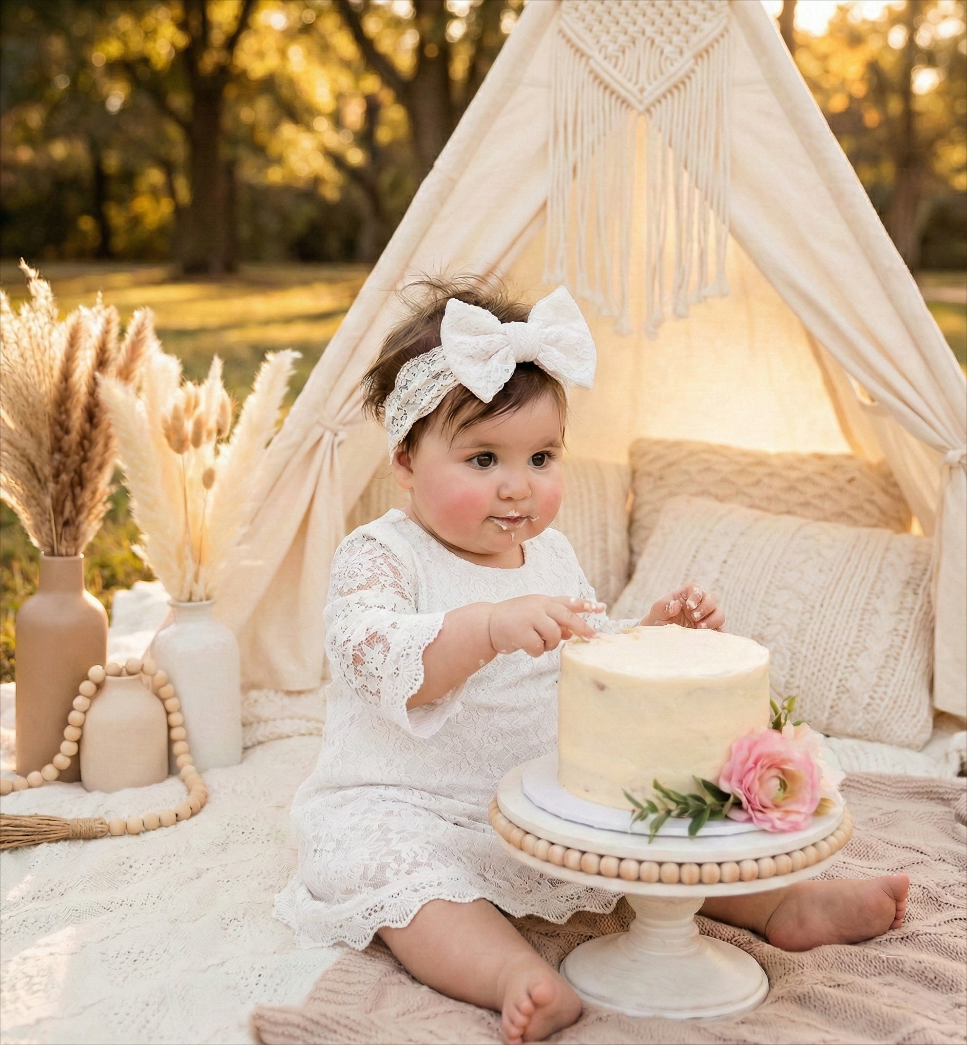 2Bunnies Baby Toddler Girls' 12M-3T Boho Rustic Garden Lace Flower Girl Dress