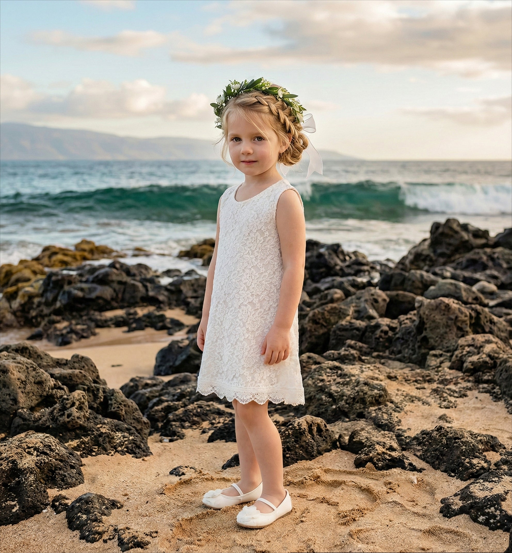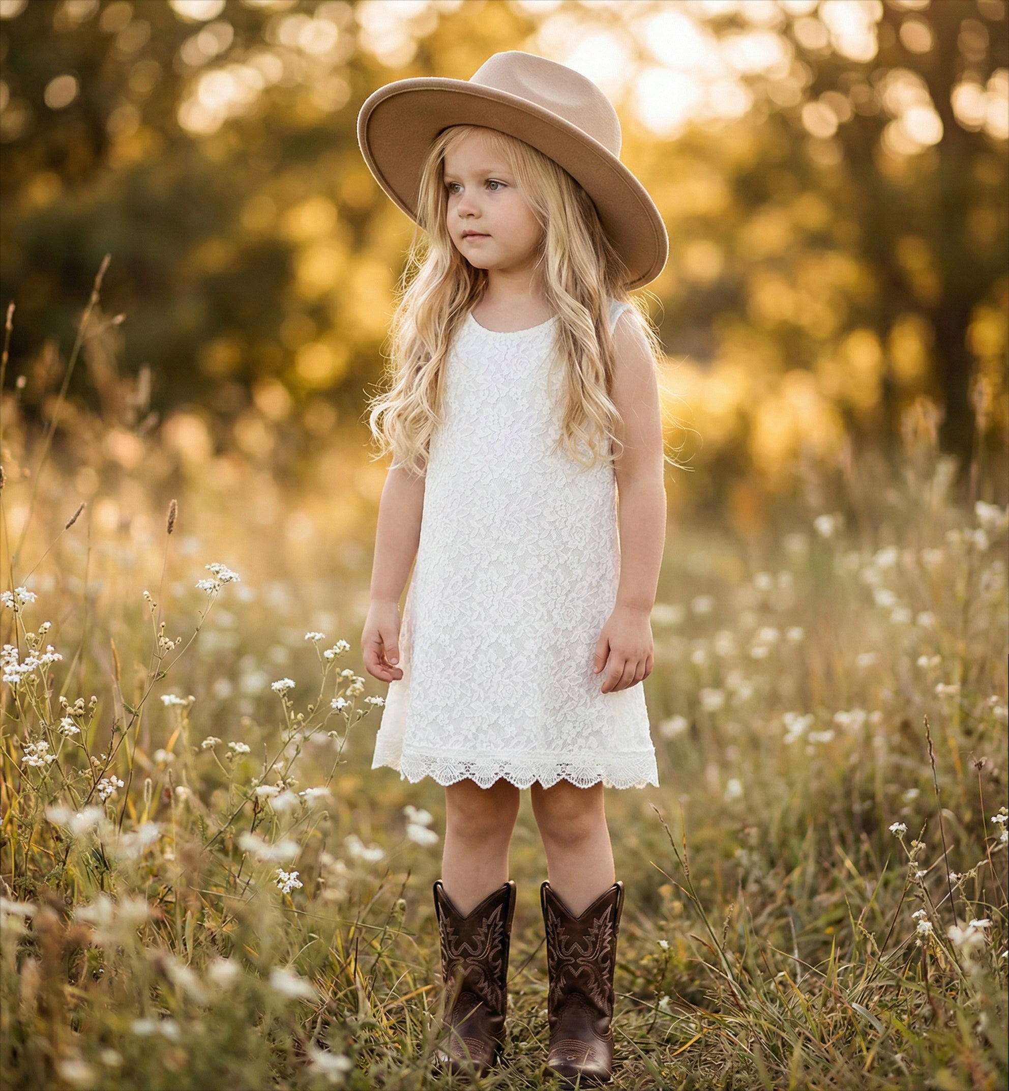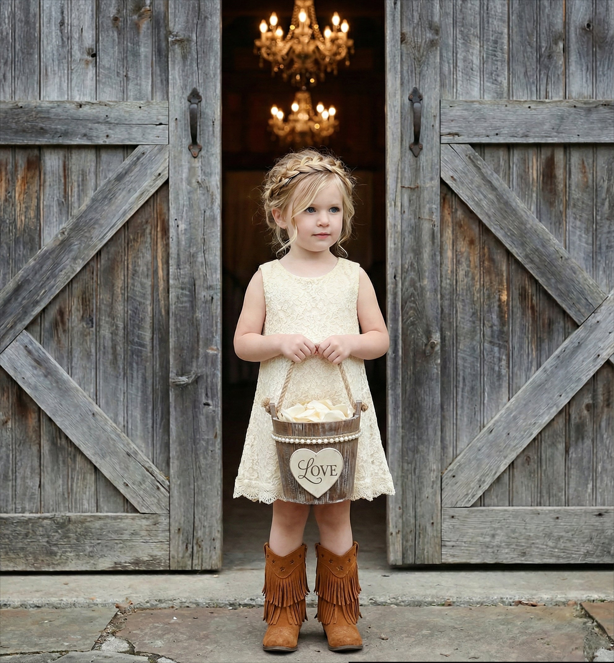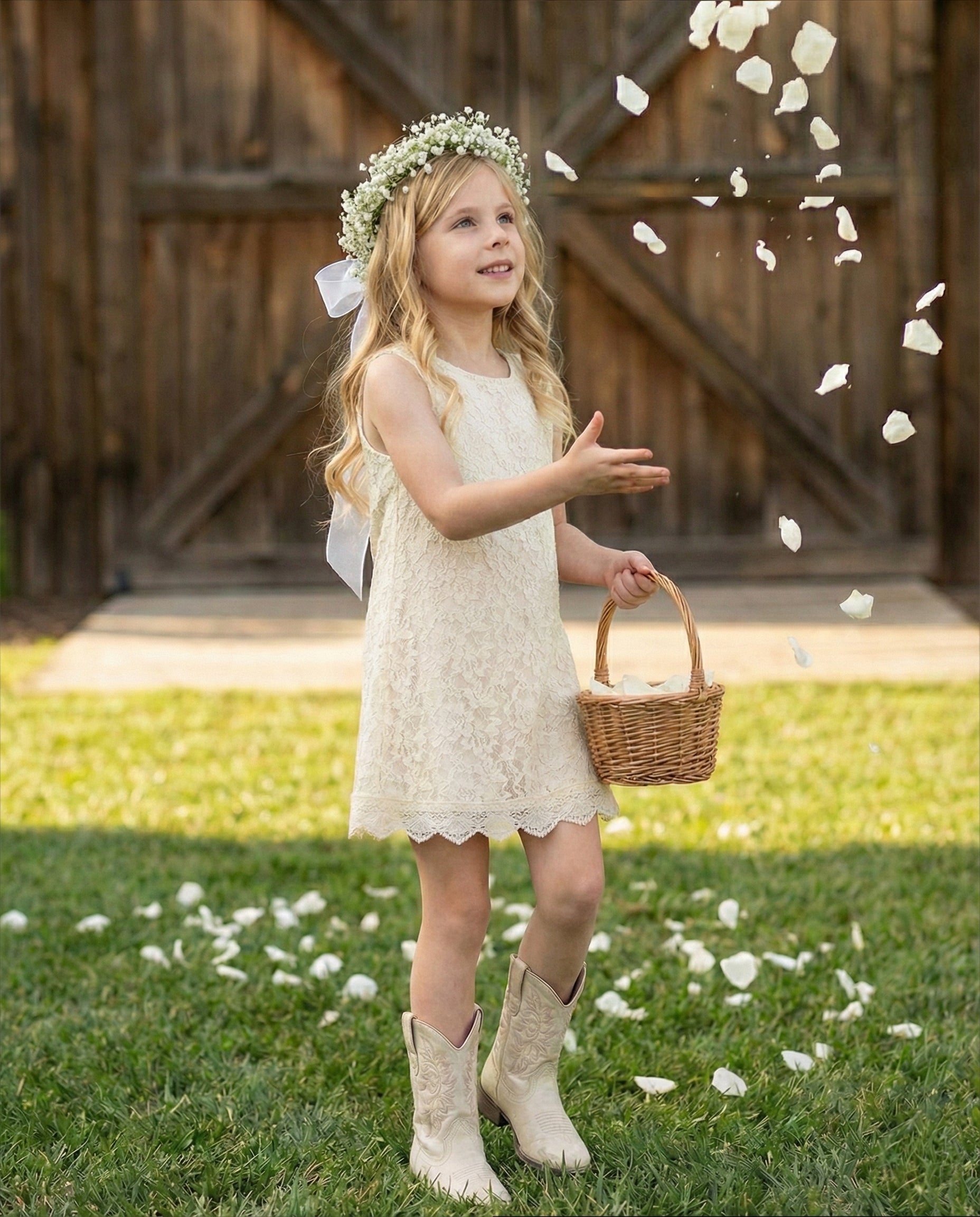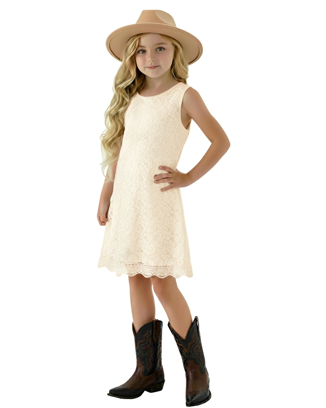 2Bunnies Girls' 12M-12yr Boho Rustic Country Garden Lace Sleeveless Flower Girl Dress
