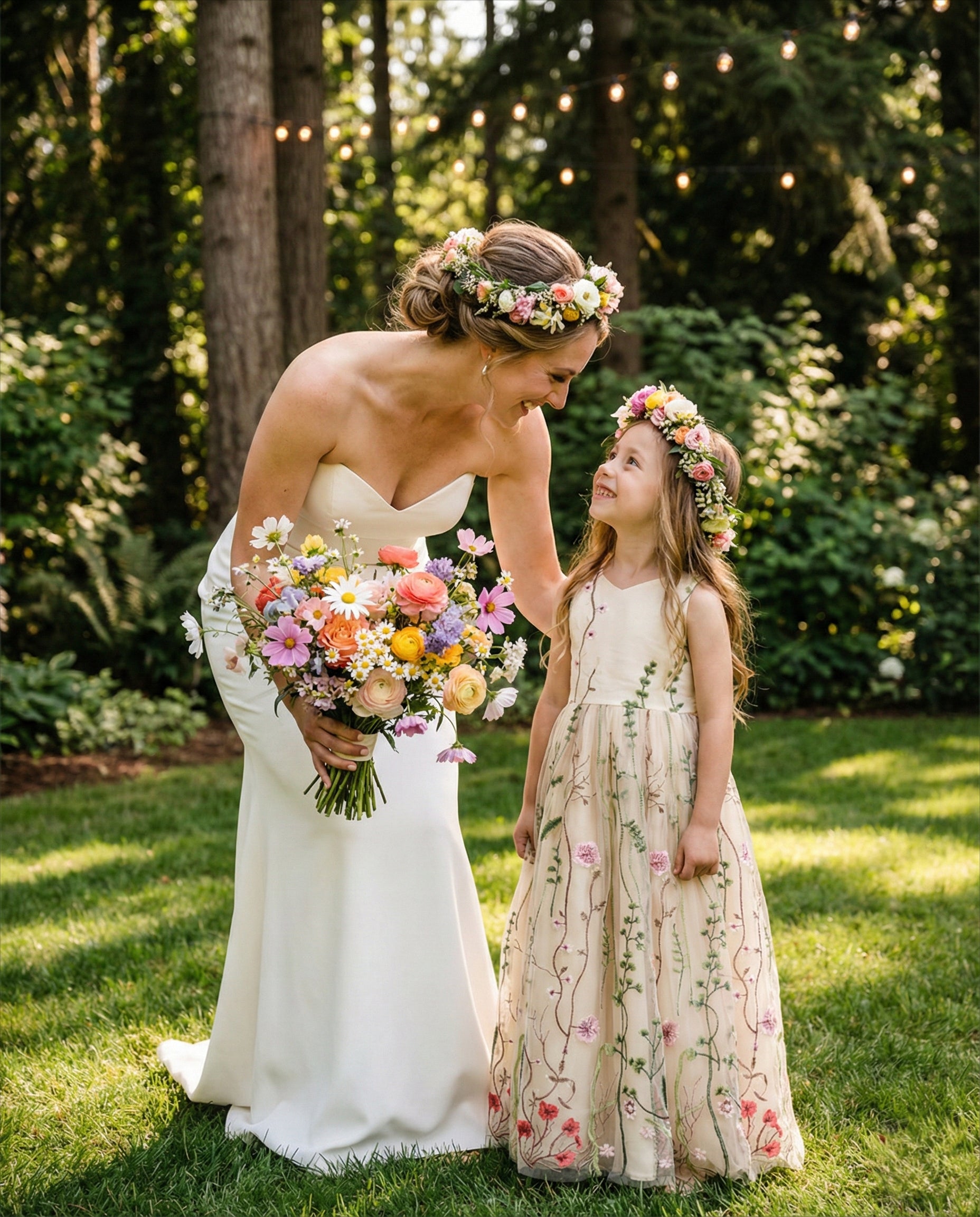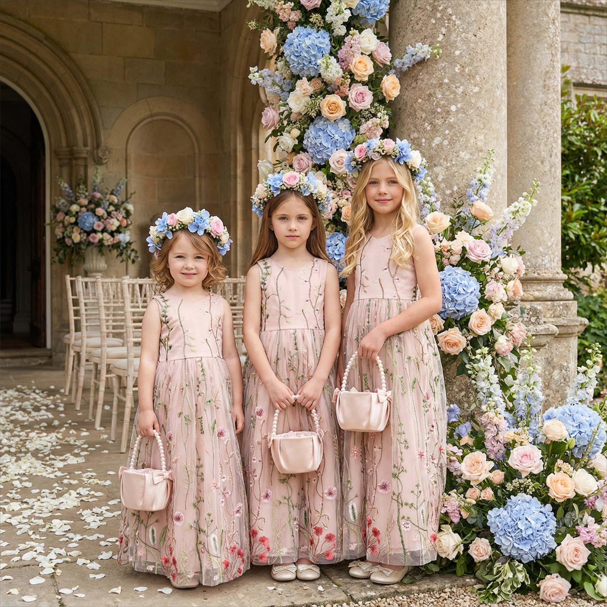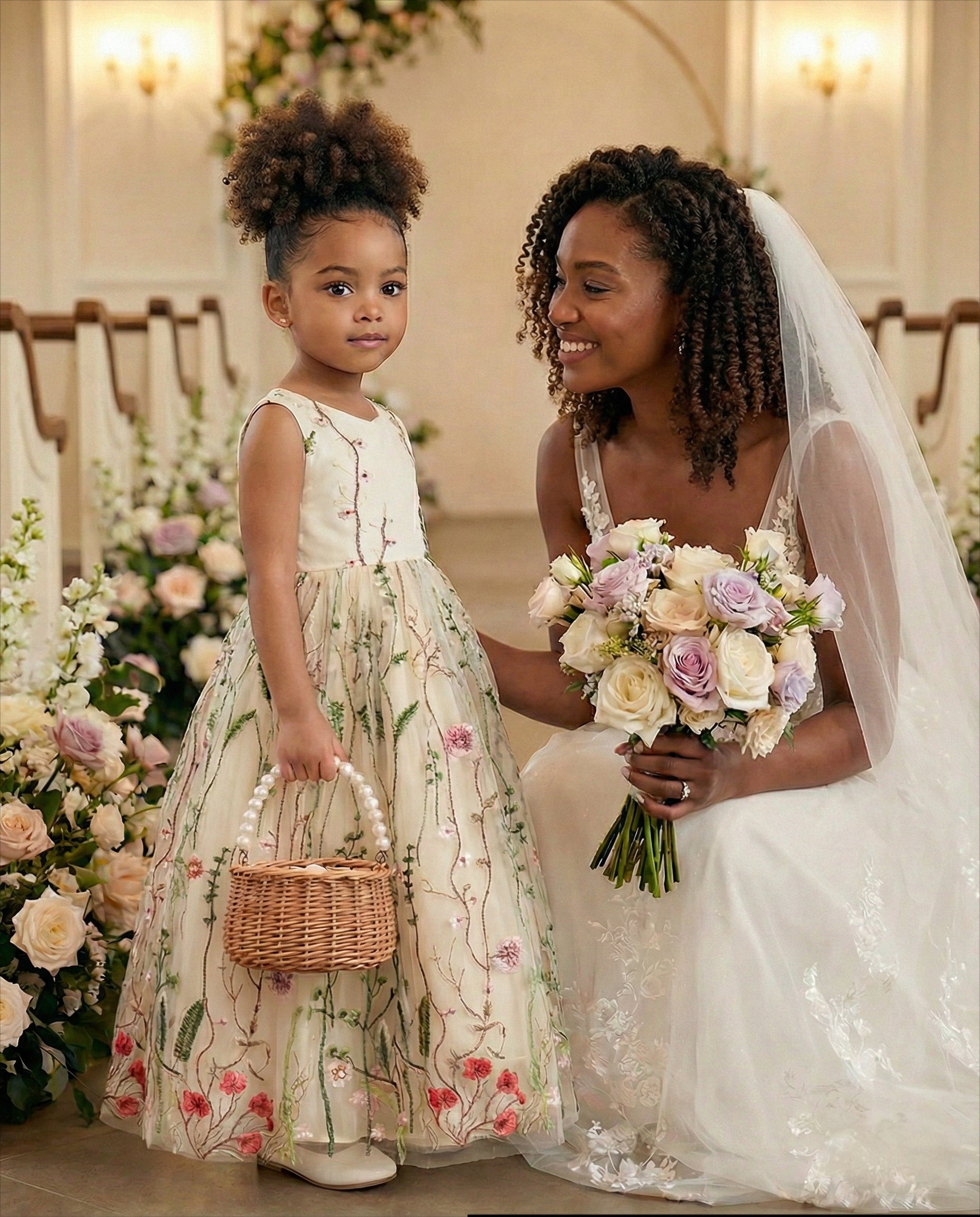 - Fabric: Garden Wildflower Embroidered Tulle & Satin layers