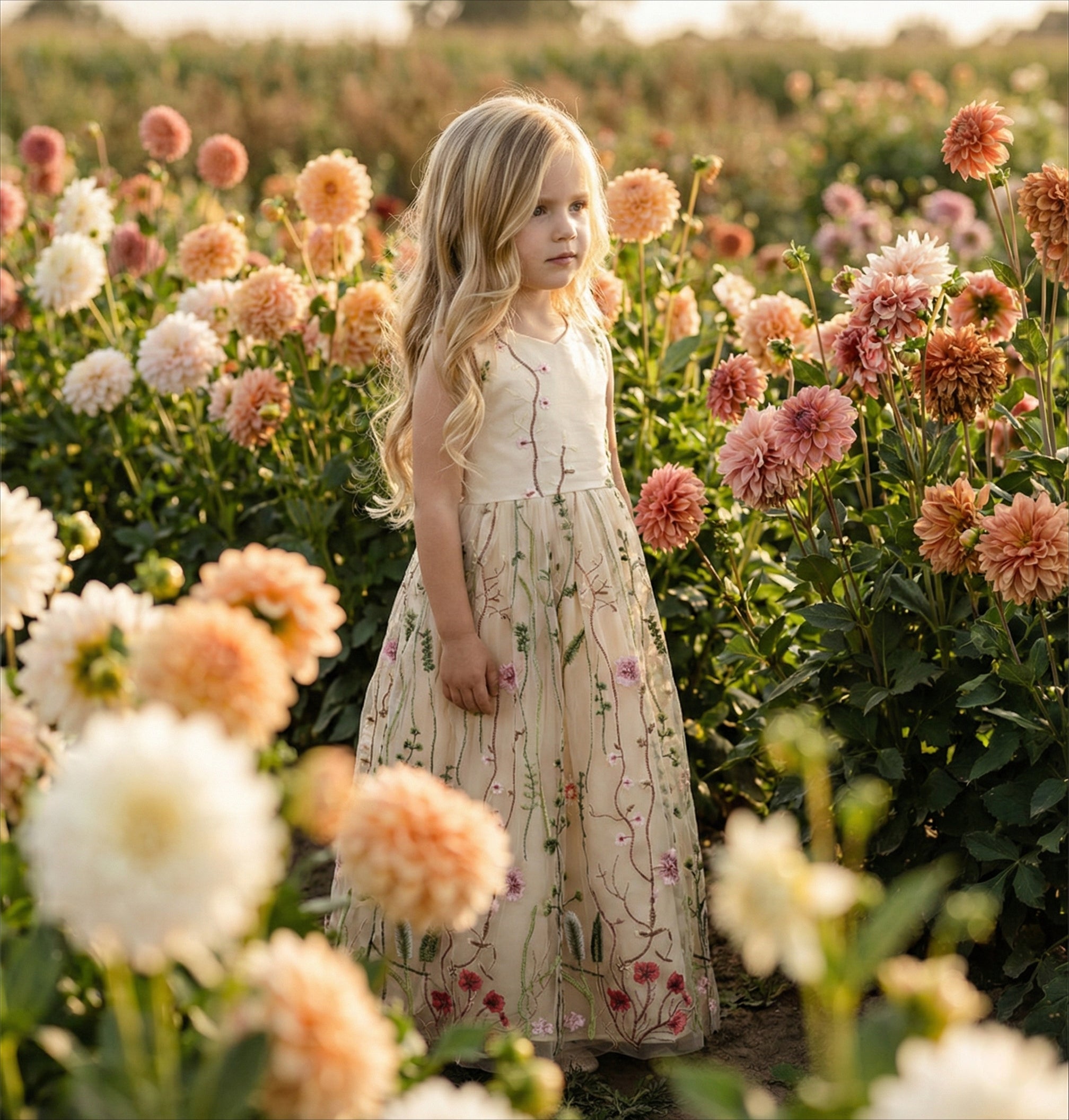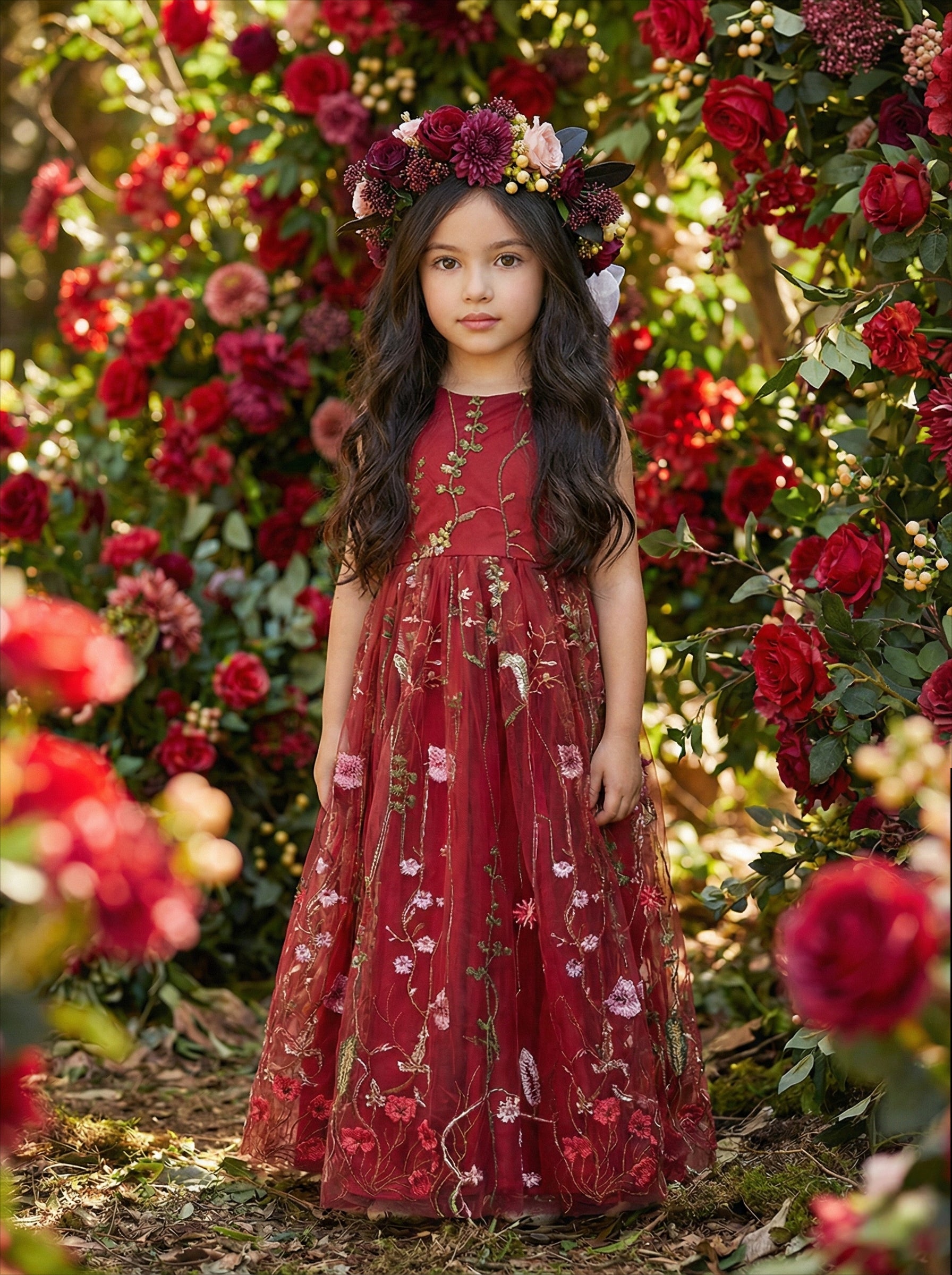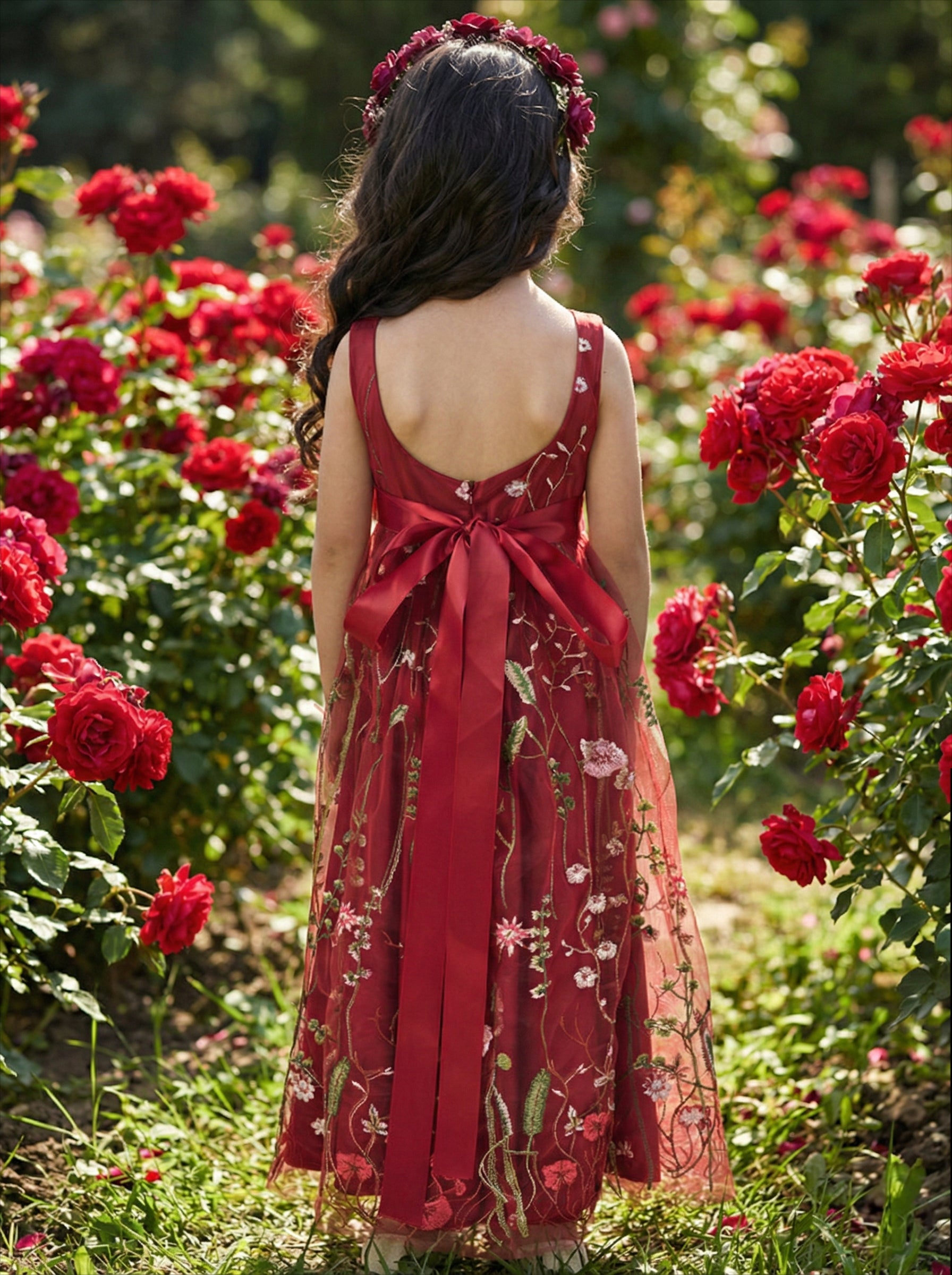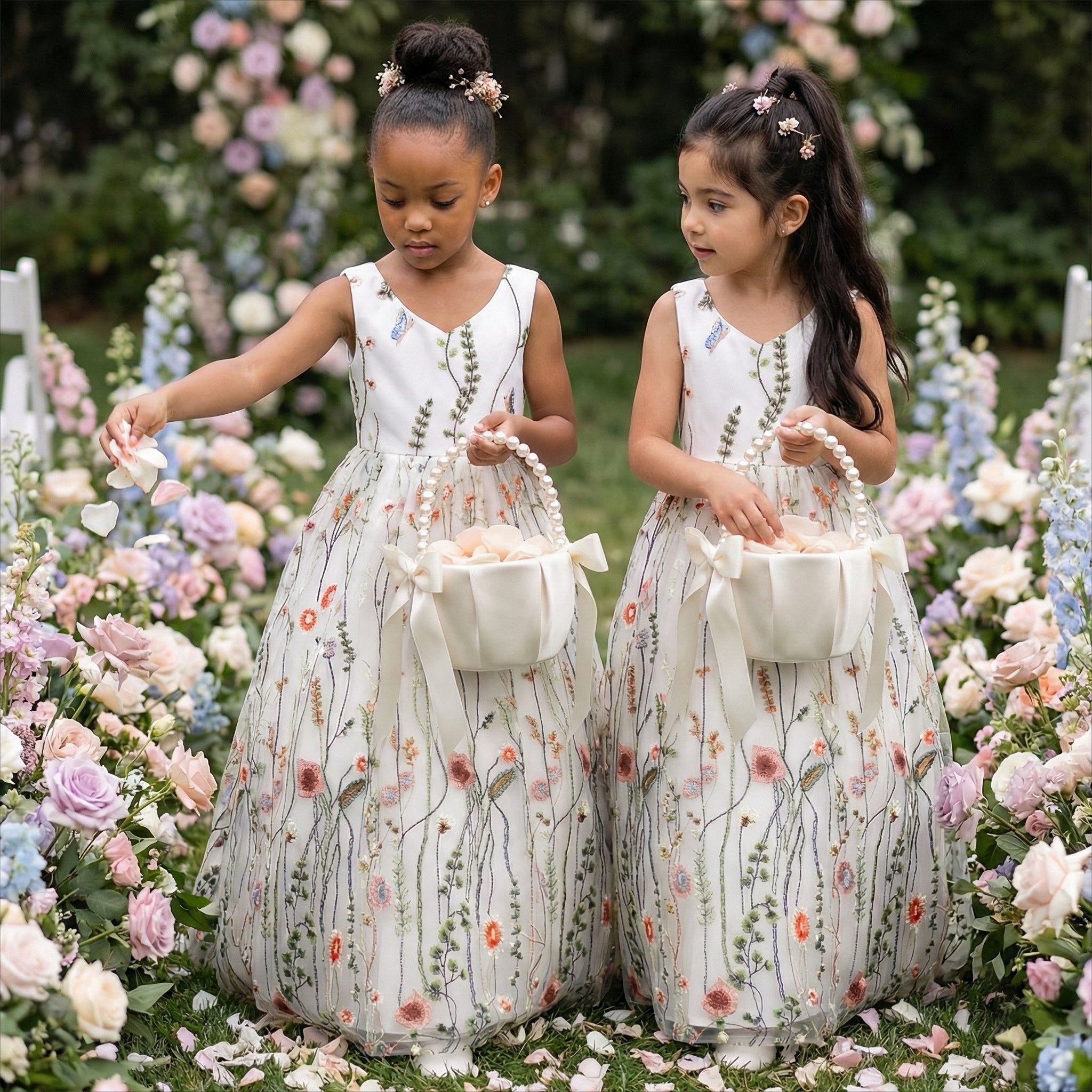 2Bunnies Girls' 12M-12yr Garden Wildflower Floral Embroidered Tulle Satin Girl Dress