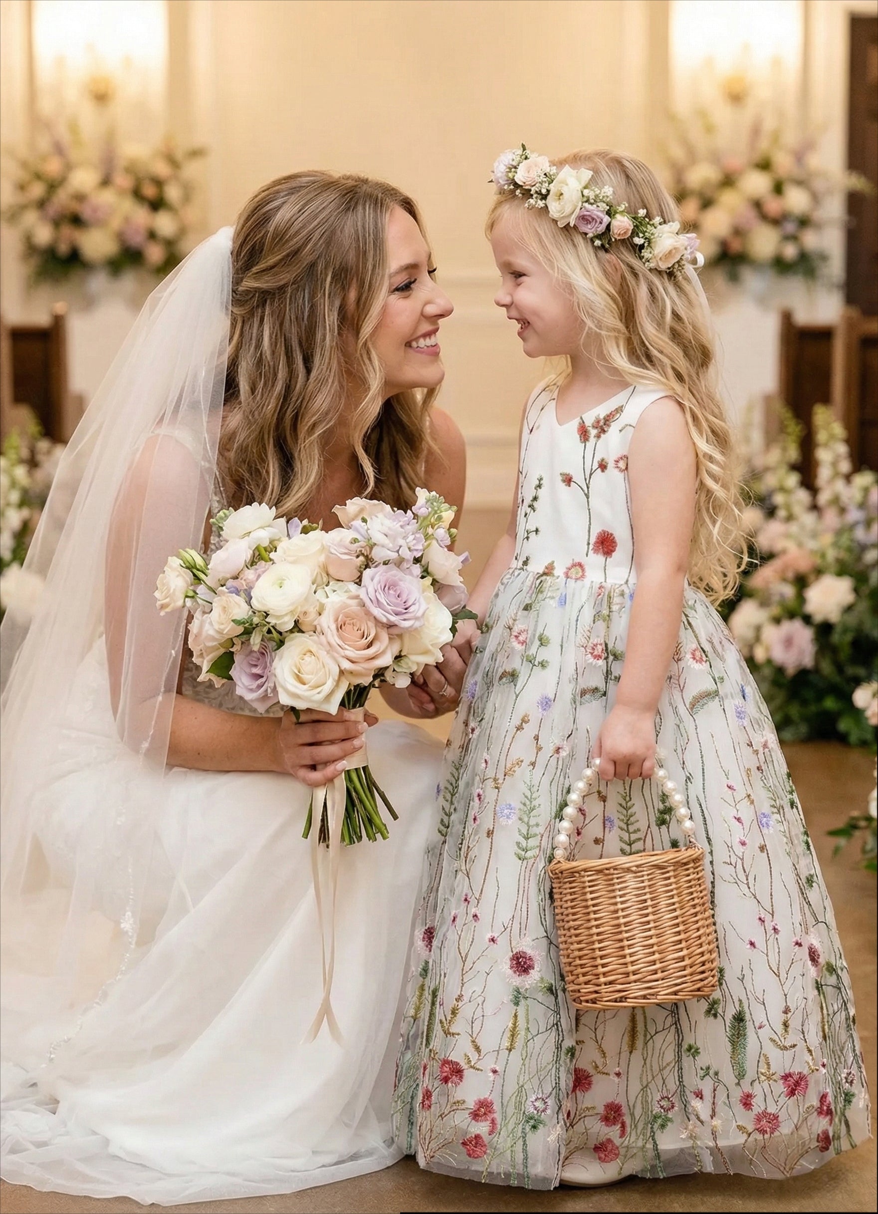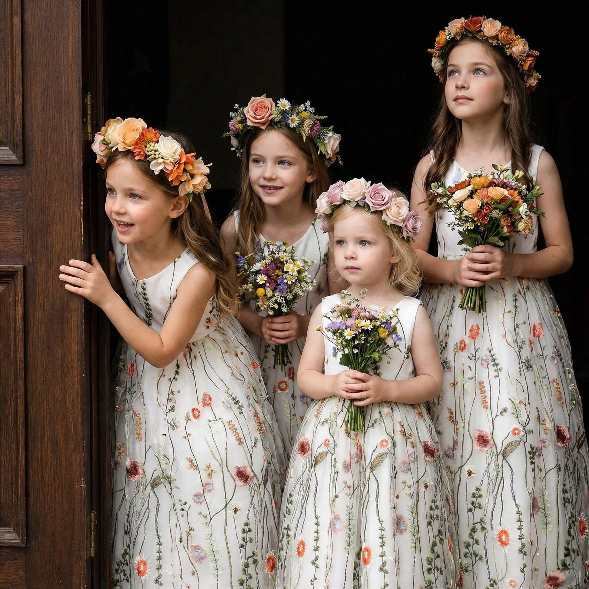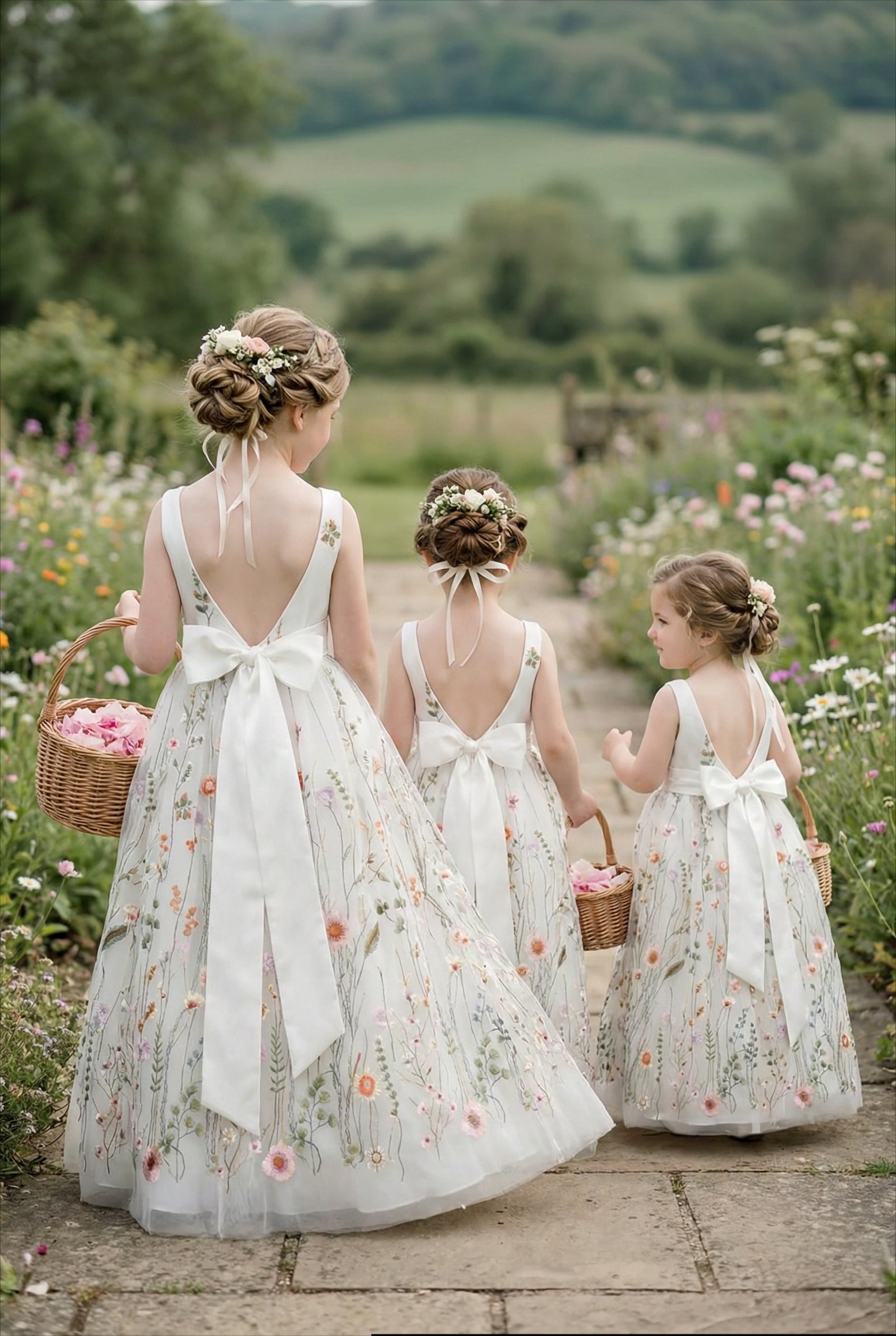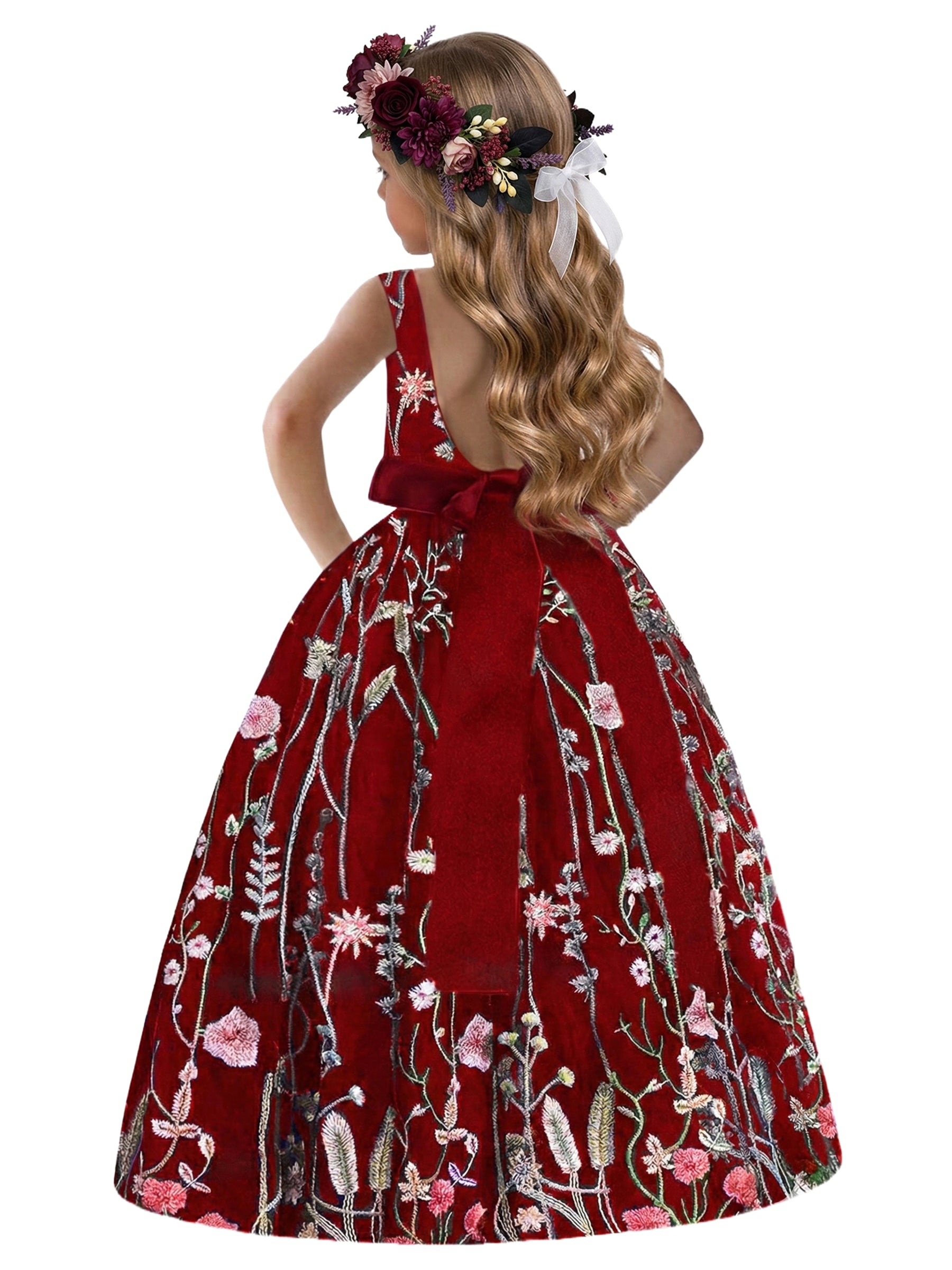 2Bunnies Girls' 12M-12yr Garden Wildflower Floral Embroidered Tulle Satin Girl Dress