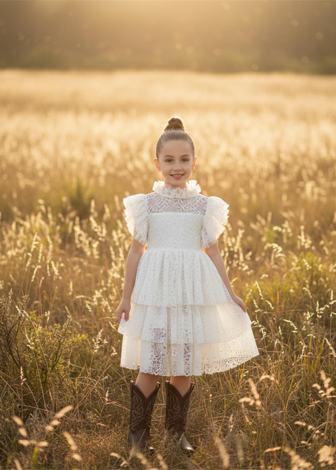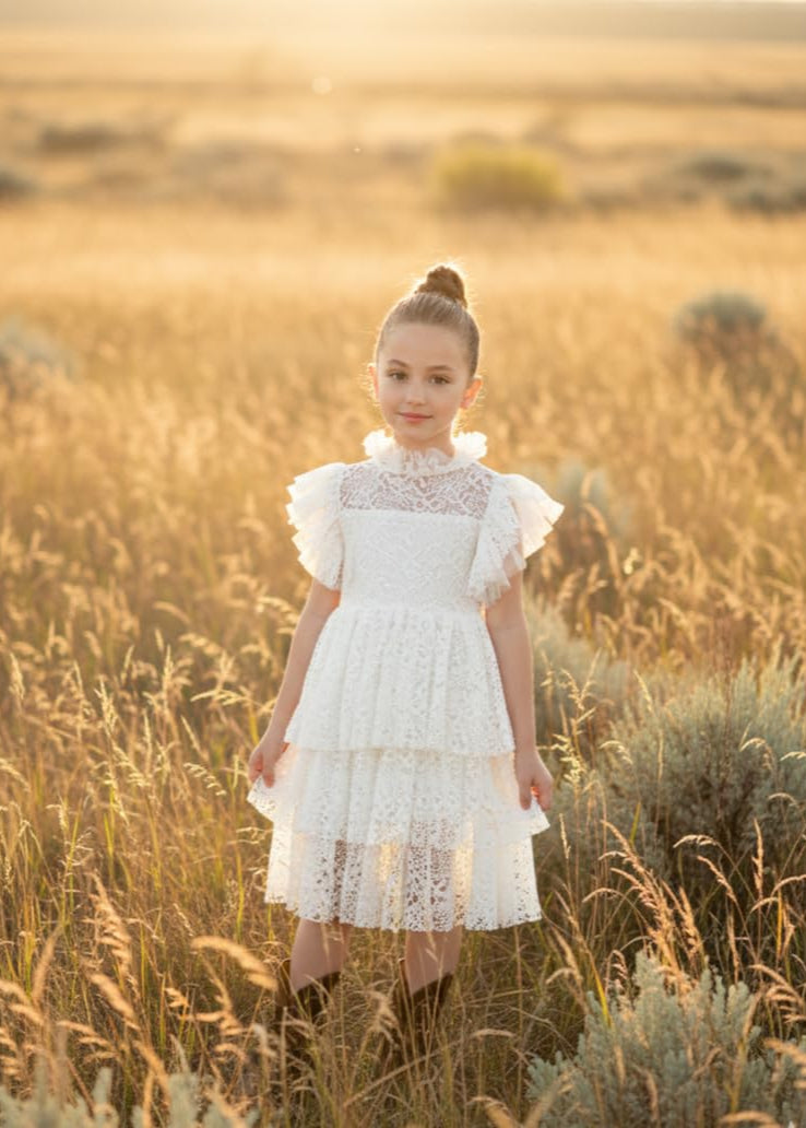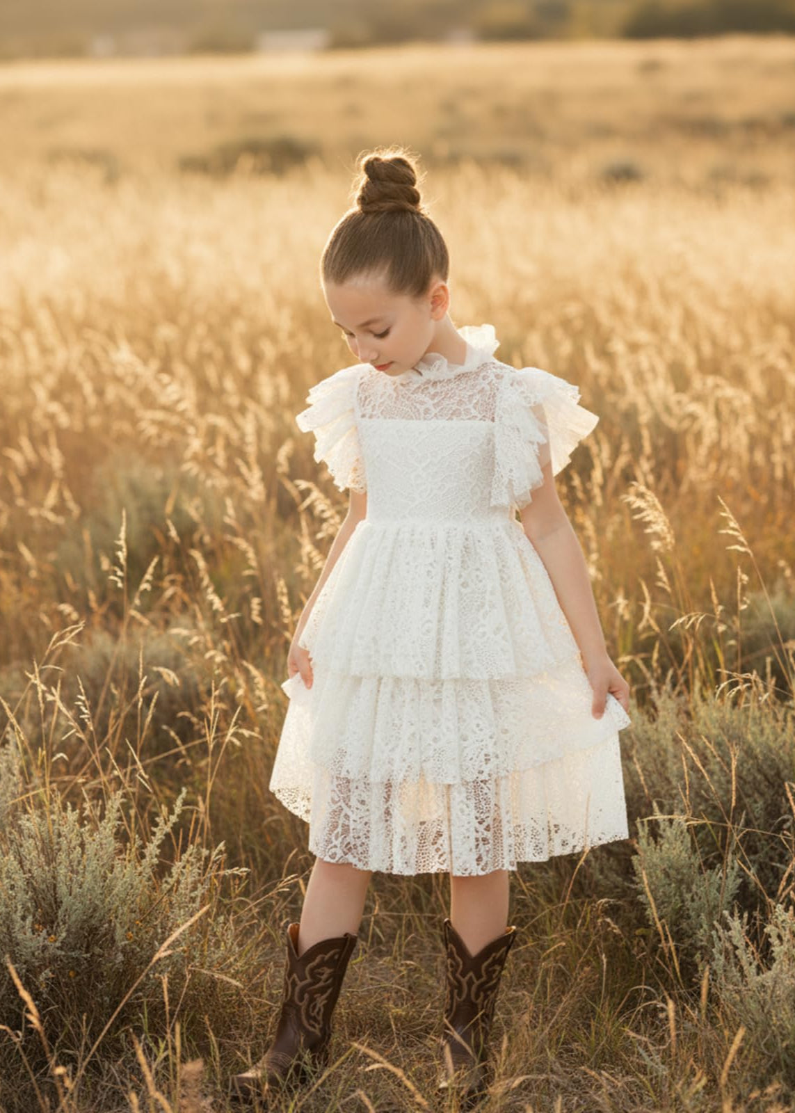 2Bunnies Girl Iris Floral All Lace Boho Flower Girl Dress