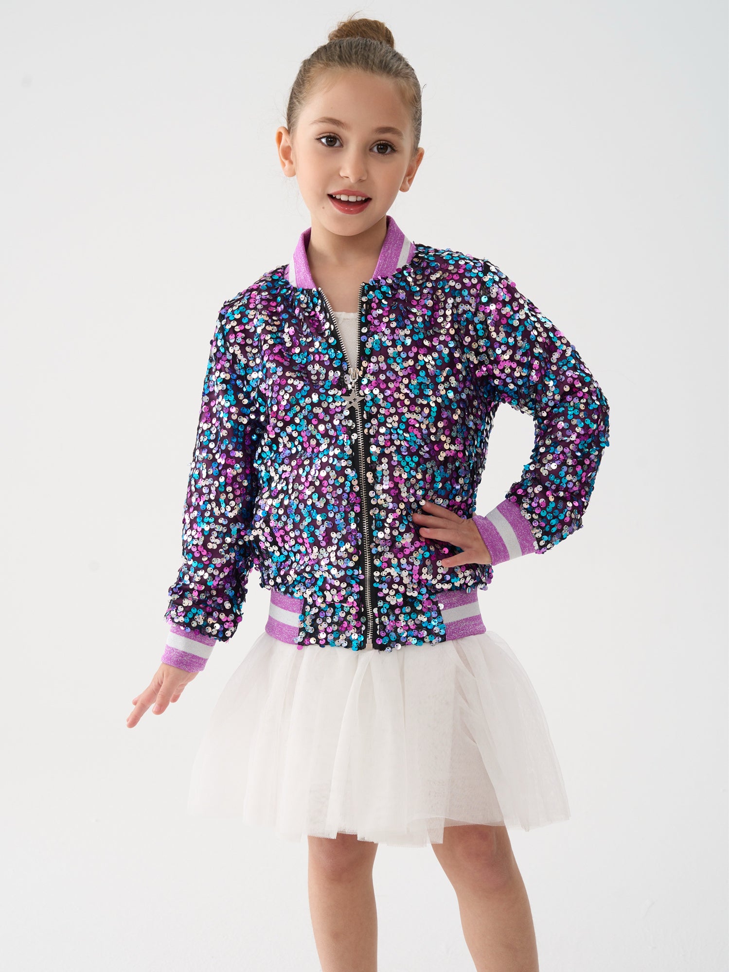 - Elevate your child's wardrobe with our dazzling Girl Ombre Sequin Bomber Jacket! This eye-catching bomber jacket features a stunning ombre design that transitions from a rich, vibrant color to a softer hue, all adorned with shimmering sequins that sparkle with every move. The classic bomber silhouette is updated with a touch of glamour, making it a standout piece for any casual or special occasion. Crafted from soft, comfortable fabric, this jacket offers both style and warmth, perfect for layering over any outfit
