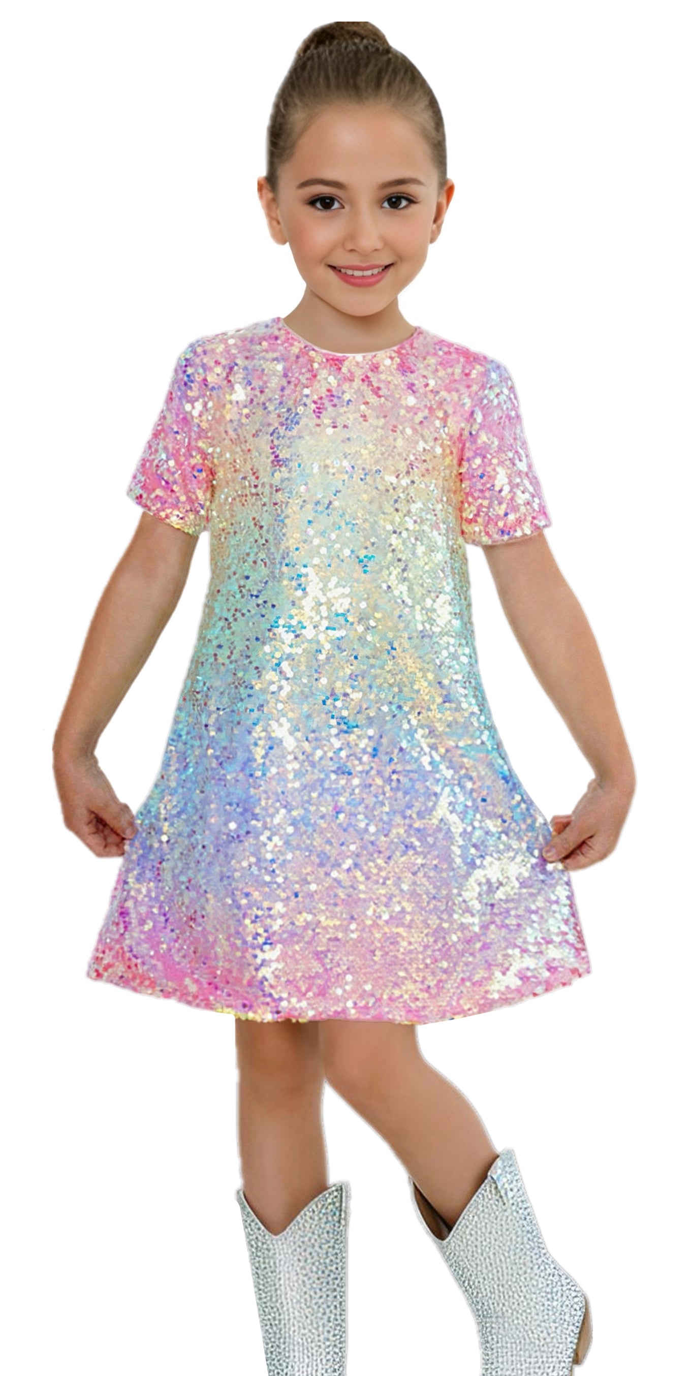 2Bunnies Girls' Ombre Sequin Short Sleeve Dress