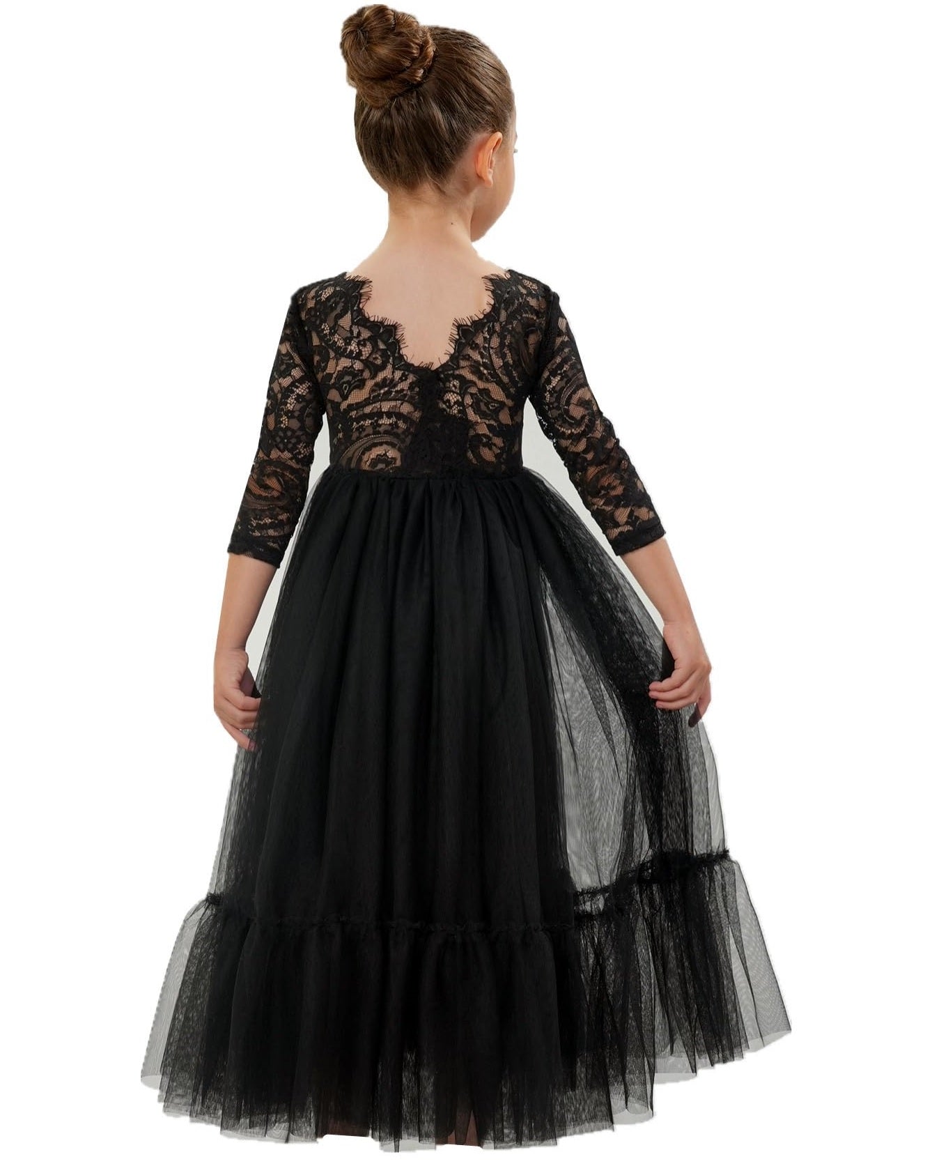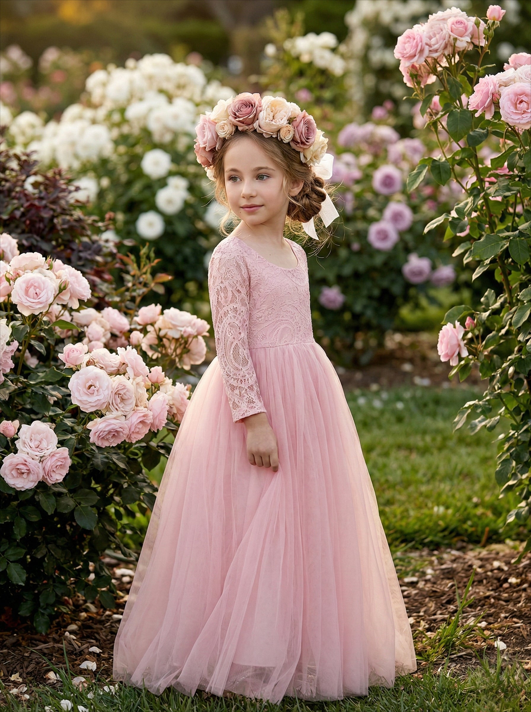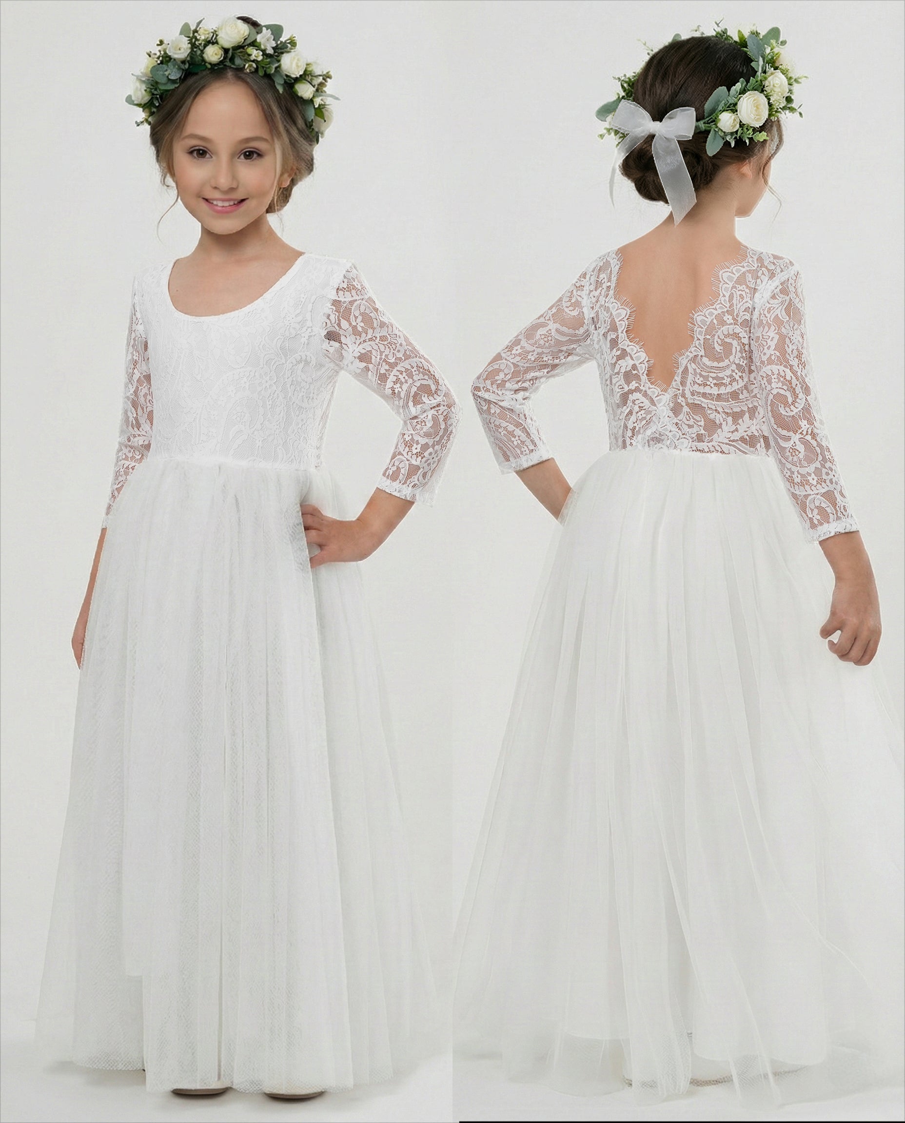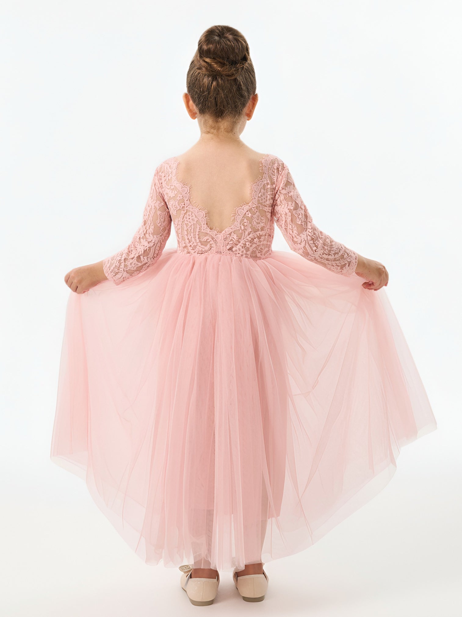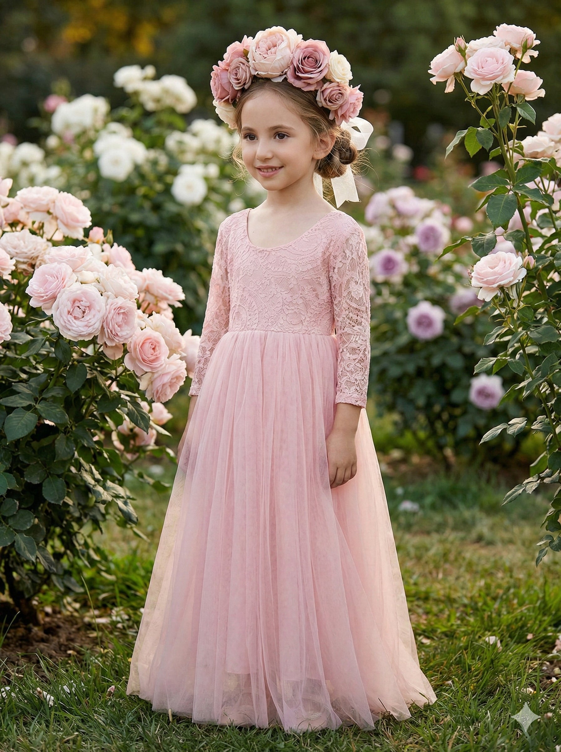 2Bunnies Girls' 12M-12yr Paisley Lace Tulle Long Sleeve Maxi Flower Girl Dress