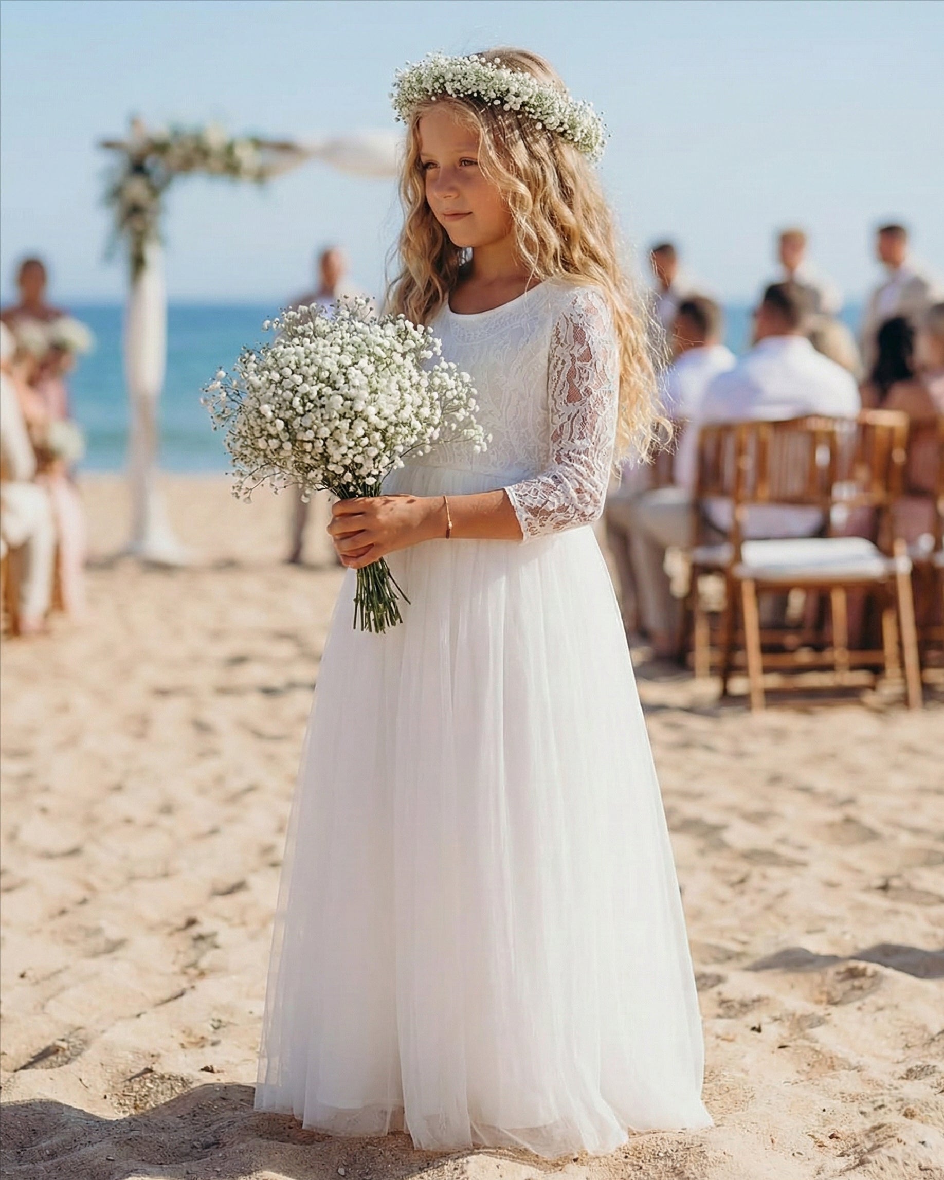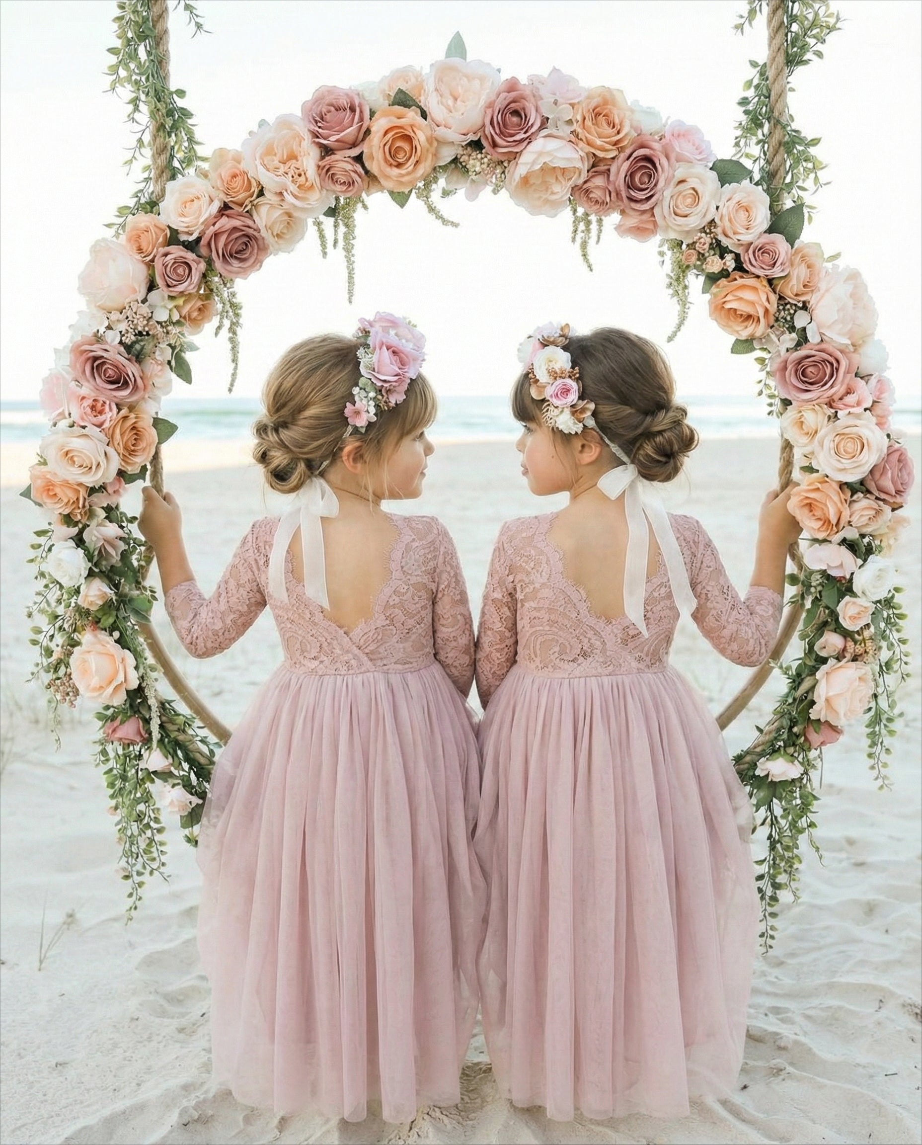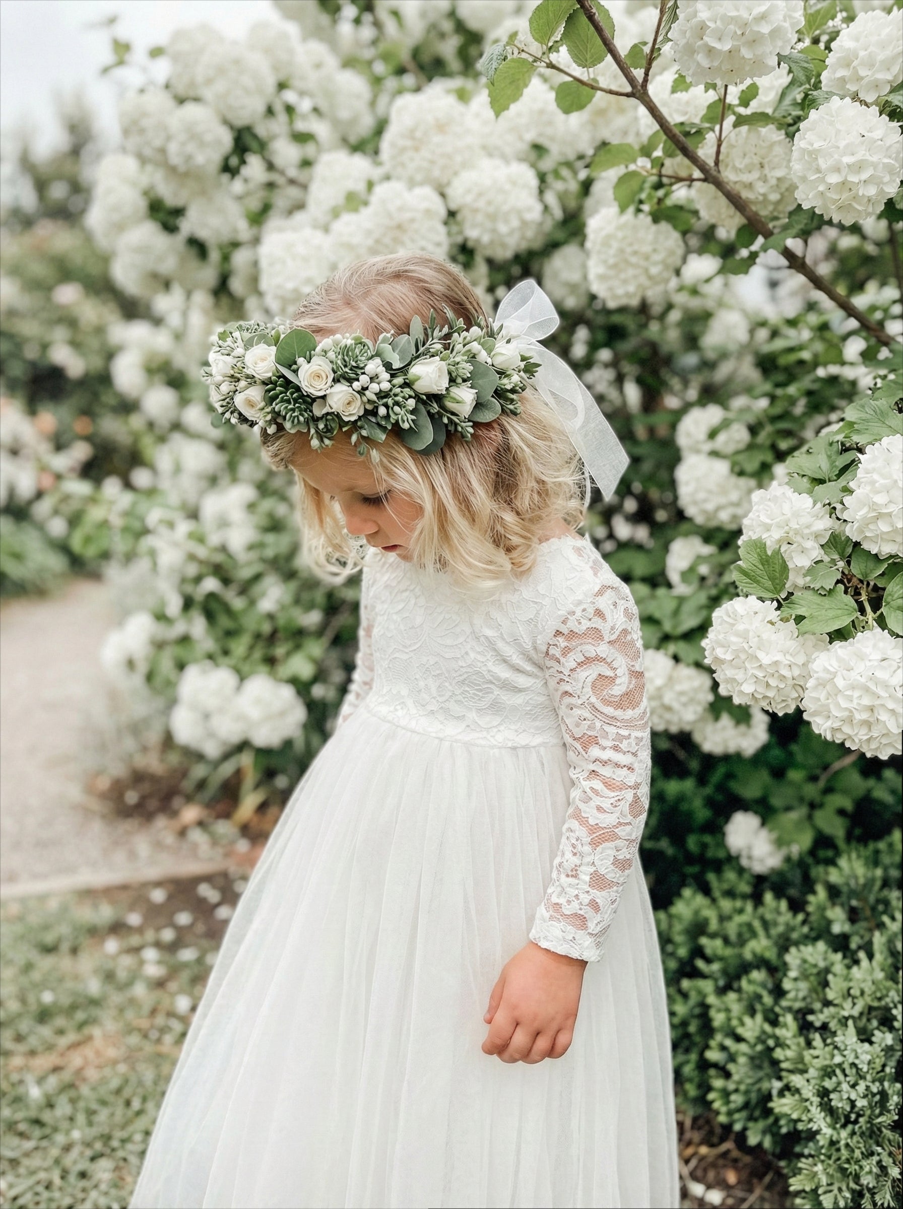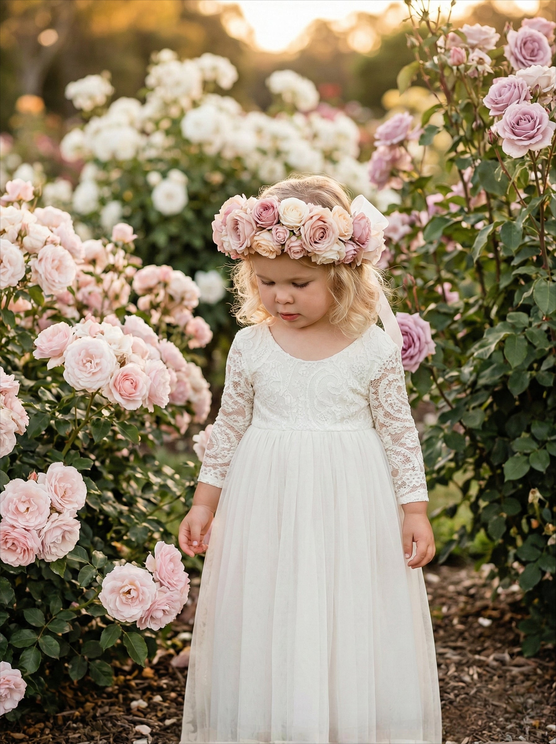 2Bunnies Girls' 12M-12yr Paisley Lace Tulle Long Sleeve Maxi Flower Girl Dress