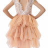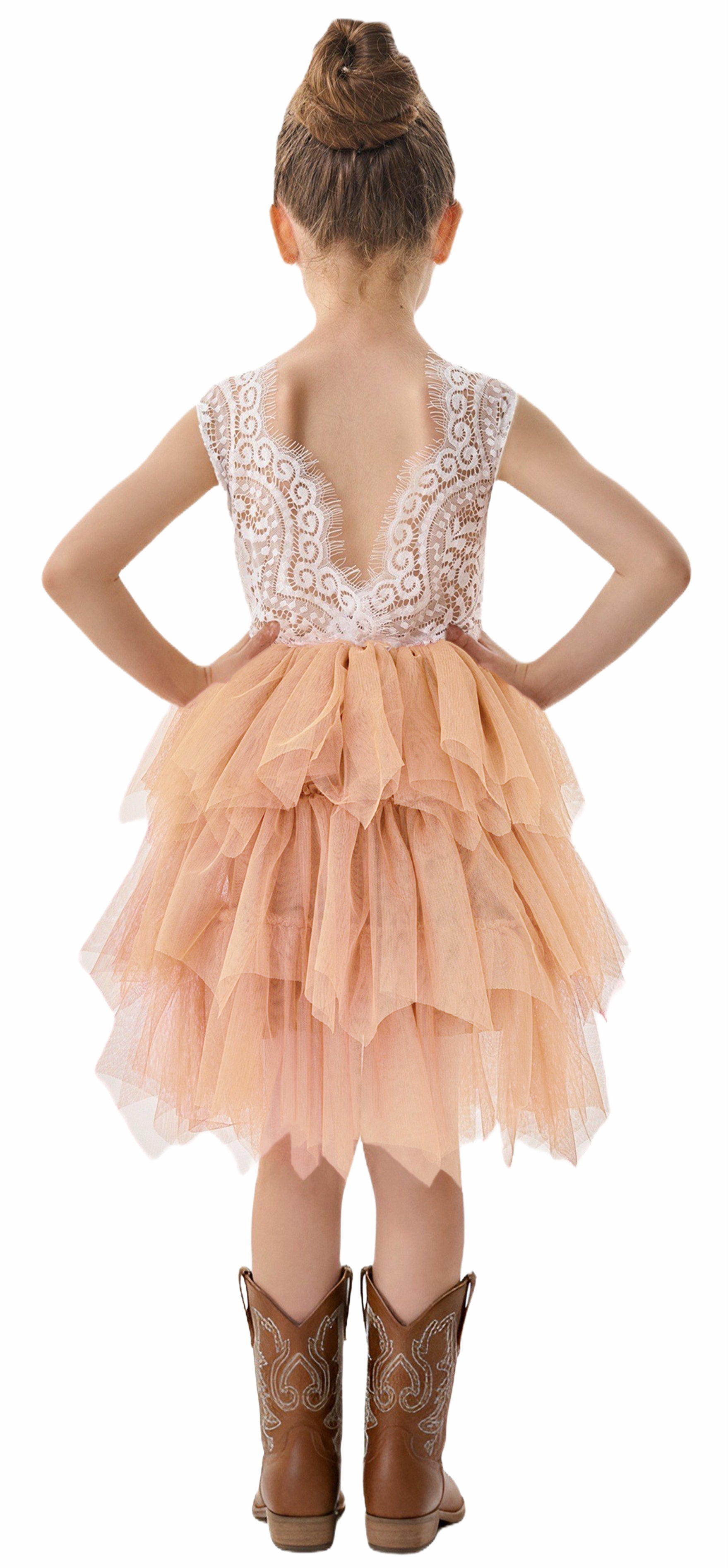 2Bunnies Girls' Peony Lace Tiered Sleeveless Knee Flower Girl Dress in Champagne