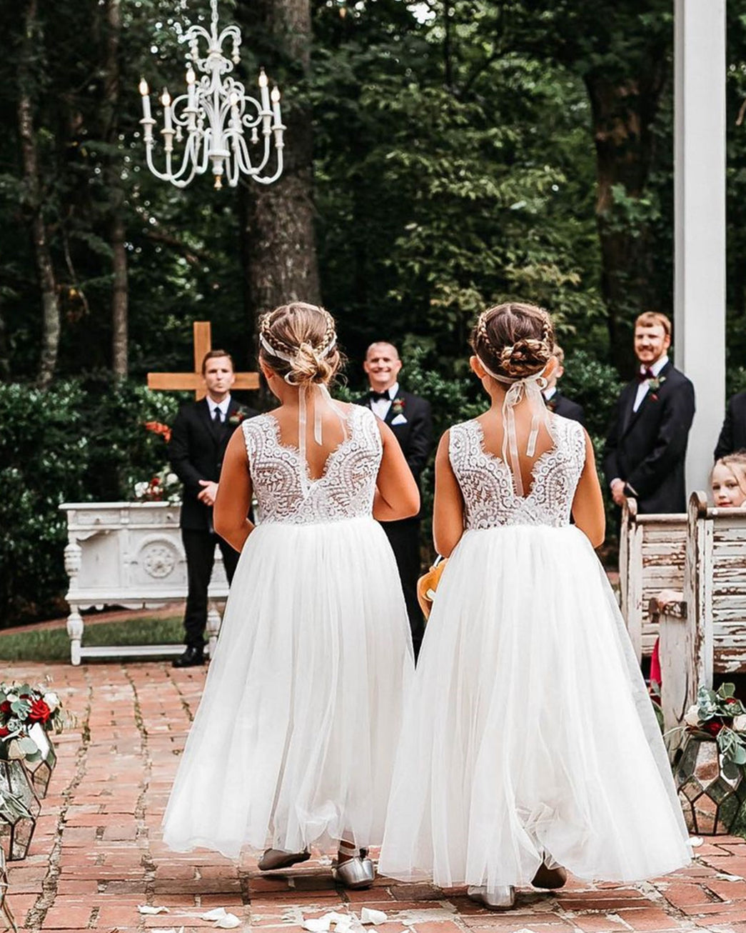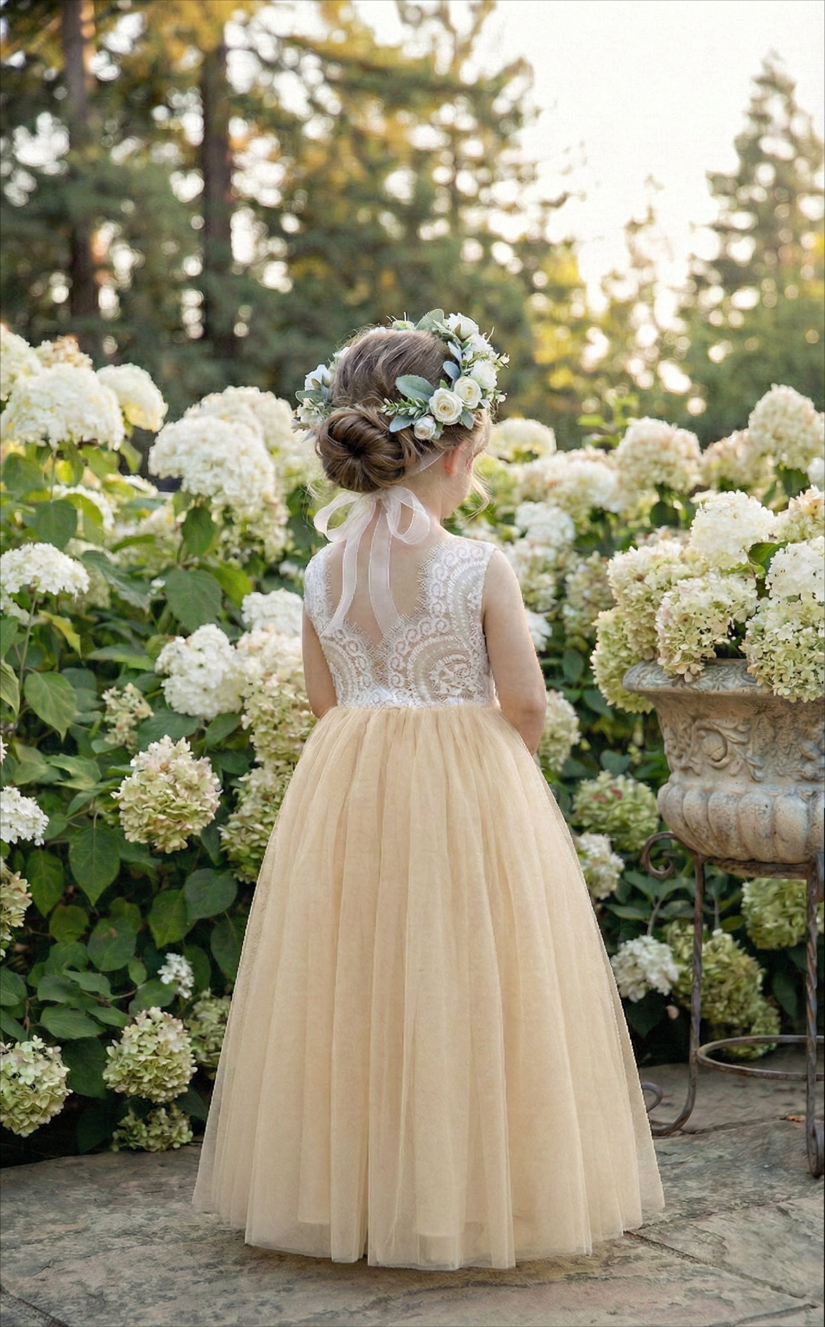 2Bunnies Girls' 12M-12yr Peony Lace Sleeveless Maxi Flower Girl Dress